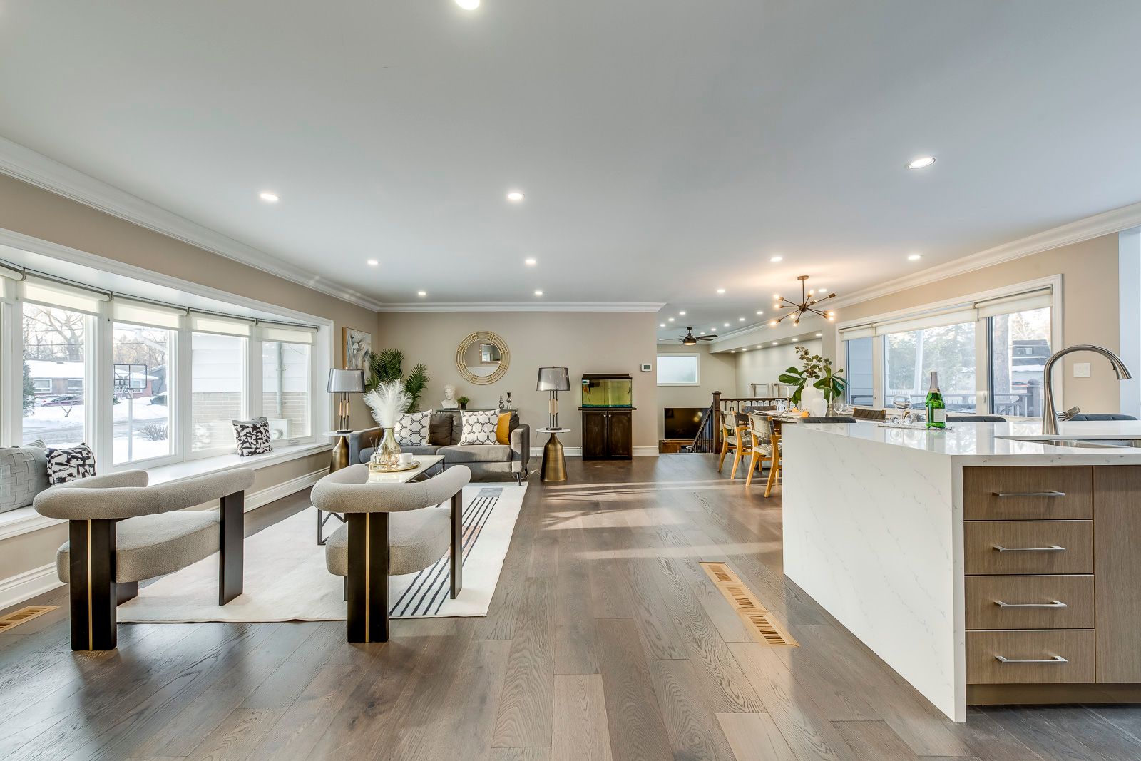 5 elite picks! Here are 5 reasons to make this home your own: 1. Stunning open concept main level living space boasting modern kitchen (updated '21) with impressive waterfall island with breakfast bar, quartz countertops, stainless steel appliances, wall-to-wall garden windows & w/o to deck & backyard, open to dining room & spacious living room with fireplace & bow window! 2. 3 good-sized bedrooms & 3 full baths on main level - with 2nd bedroom featuring its own private 3pc ensuite (updated '21). 3. Spectacular oversized primary bedroom suite boasting vaulted ceiling, many windows, w/o to deck, his & hers w/i closets & double-sided fireplace to huge 6pc ensuite with skylight, double vanity, soaker/jet tub, separate shower & private water closet with sink! 4. Beautifully finished basement featuring spacious rec room & gym/games area with oversized/above-ground windows, plus large laundry room & private guest suite with full eat-in kitchen & 4th bedroom with large window & 3pc bath! 5. Oversized 90' x 167' lot boasting lovely private backyard with huge deck (updated '22) & mature trees... With plenty of room for entertaining and/or play!! All this & more!! Modern 3pc main bath with large shower (updated '21). Spacious family room on ground level with 12' ceiling, oversized window, patio door w/o to backyard & access to garage. Nearly 4,000 sq. Ft. Of finished living space. Updates include new heat pump '24, new main level hdwd flooring '21, new front door '21, some new windows & patio doors '18, new furnace '16. Fabulous location in beautiful lorne park neighbourhood just minutes from jack darling park & rattray conservation (plus many other parks & trails!), mississauga golf & country club, schools, public transit, qew access, shopping, restaurants & many more amenities!
