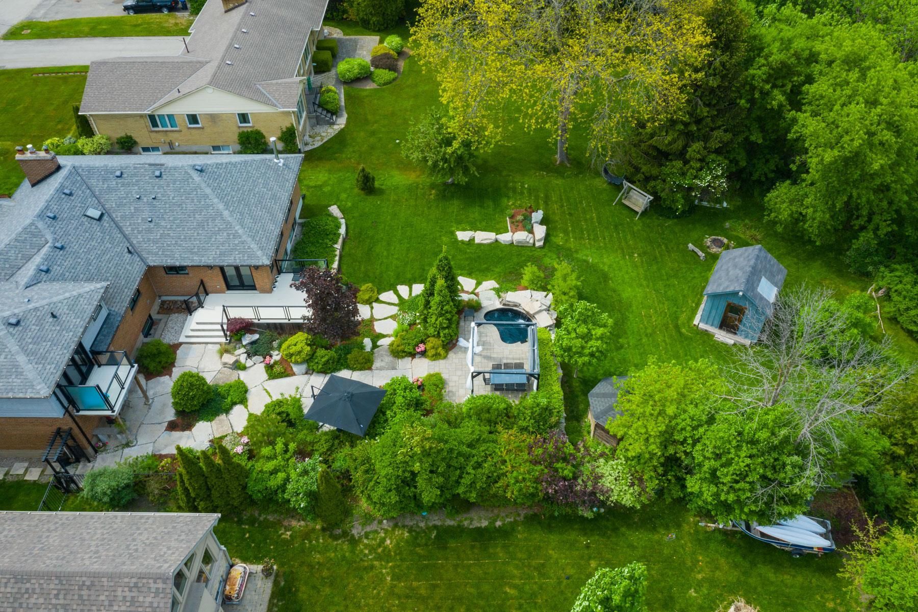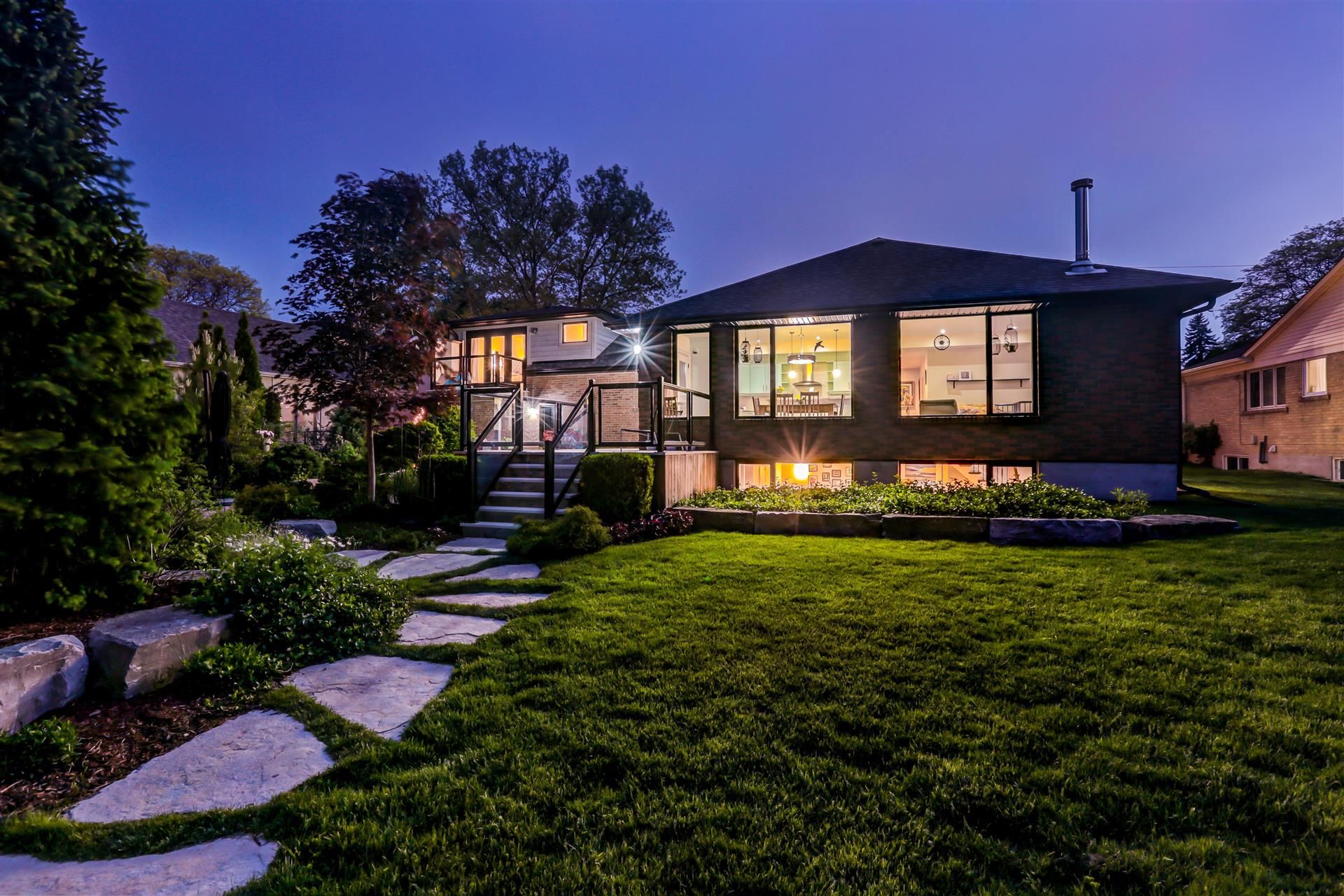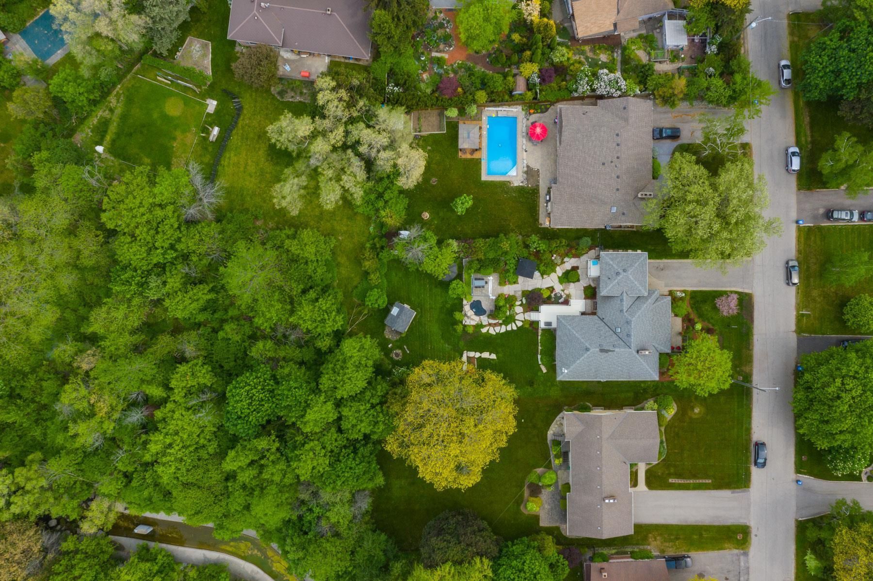 One of the most spectacular properties in mineola. 80' x 177' lot backing onto greenspace. Approx. 4200 sf of completely renovated living space. Open concept custom kitchen by "pearl" with designer appliances, granite counters, breakfast bar and walk-out to large entertainment deck that overlooks professionally landscaped grounds. Stunning primary retreat with vaulted 10' ceiling, 5-pc ensuite, walk-in closet & balcony. 5 fireplaces. Complete reno in '10 including roof, windows, doors, floors, furnace. A/c 2019. Professionally landscaped gardens w/armourstone paths, natural stone patio (2016), outdoor artist's studio, garage has 220v plug for electric cars