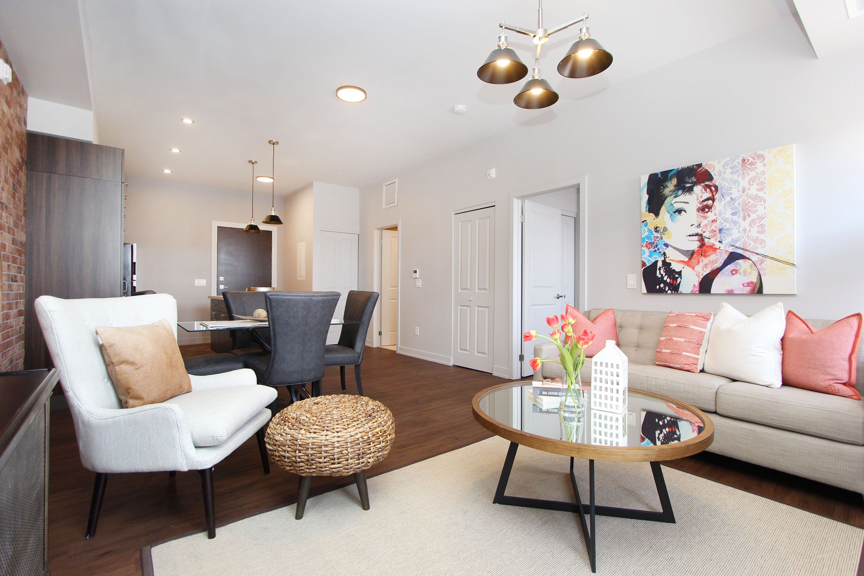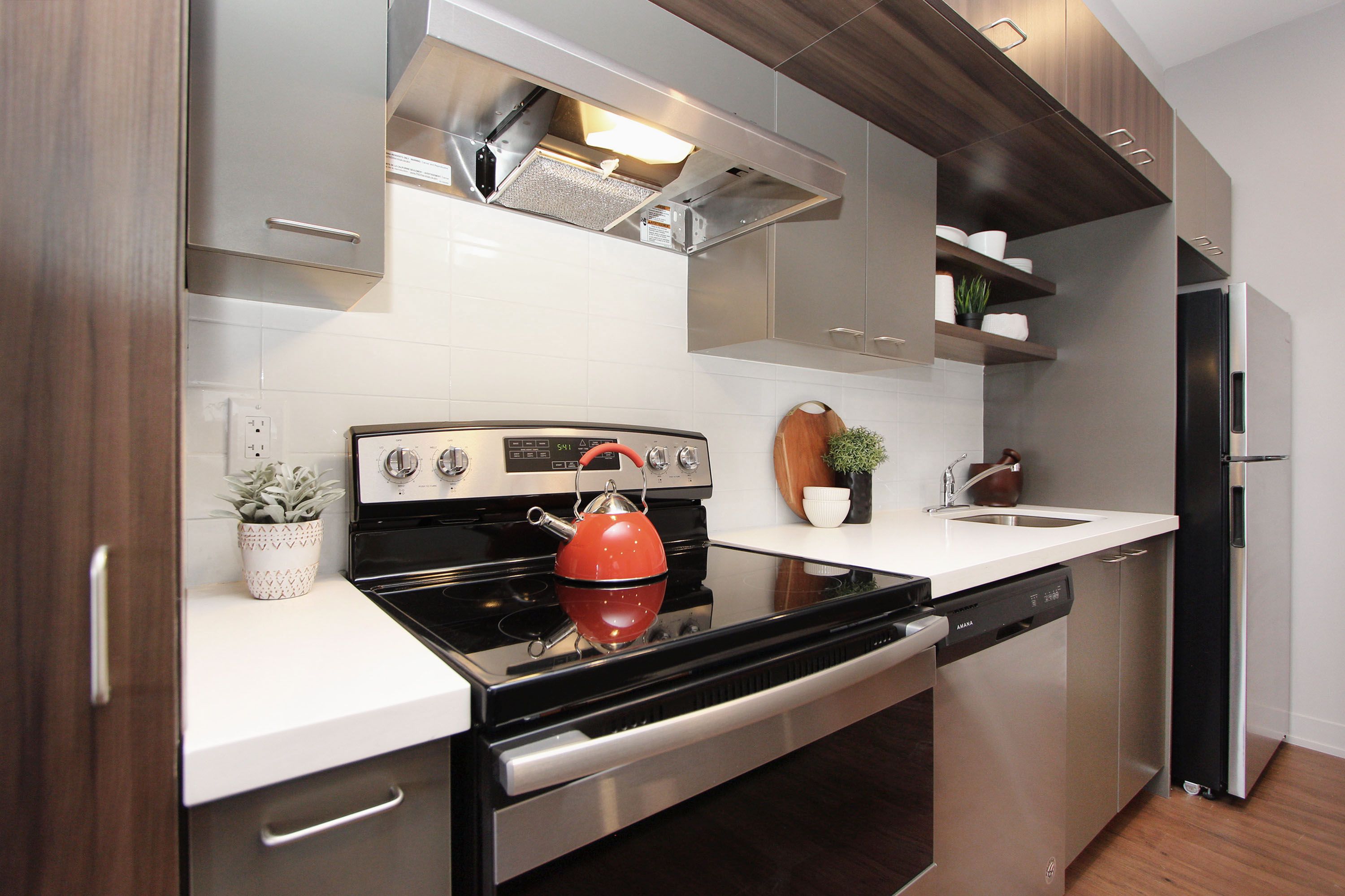 • Modern 689 sqft 1 bedroom flat with in-suite laundry.