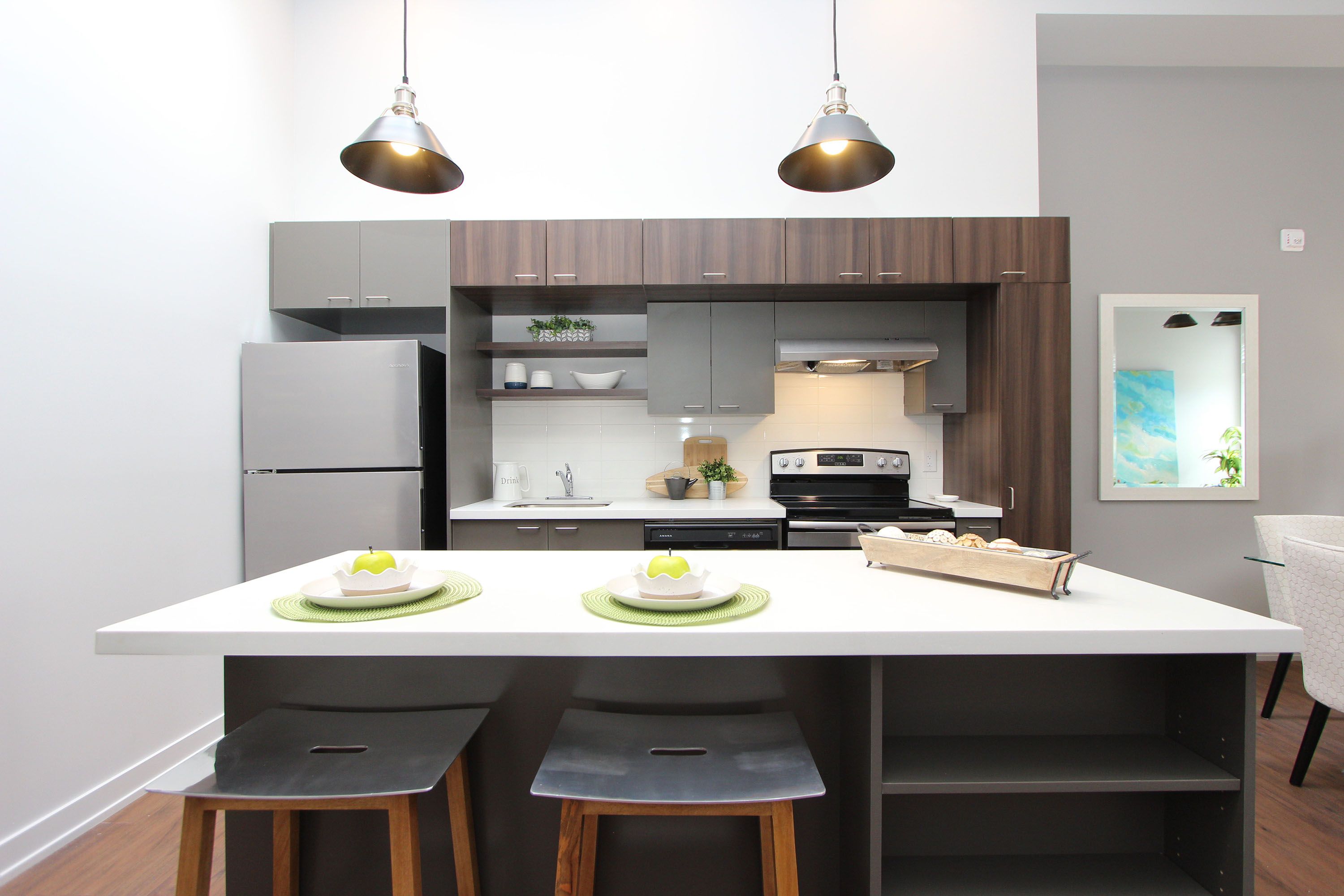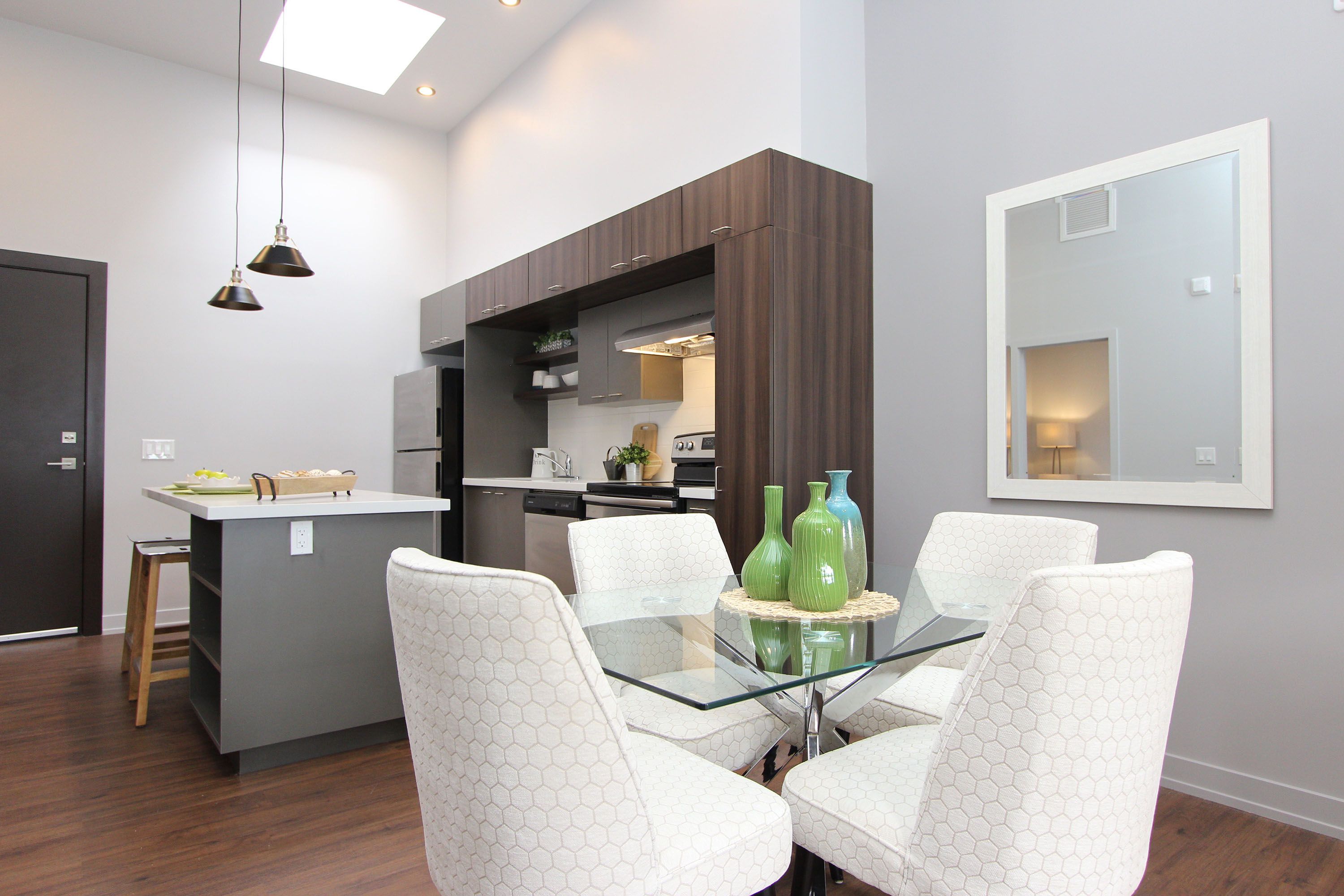 • Open concept layout with included appliances and one parking space.