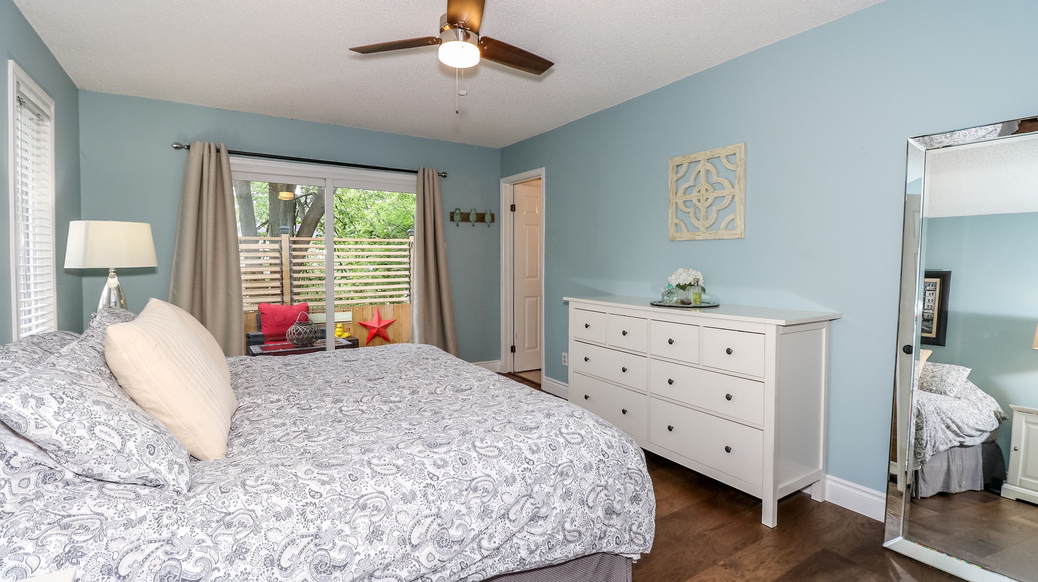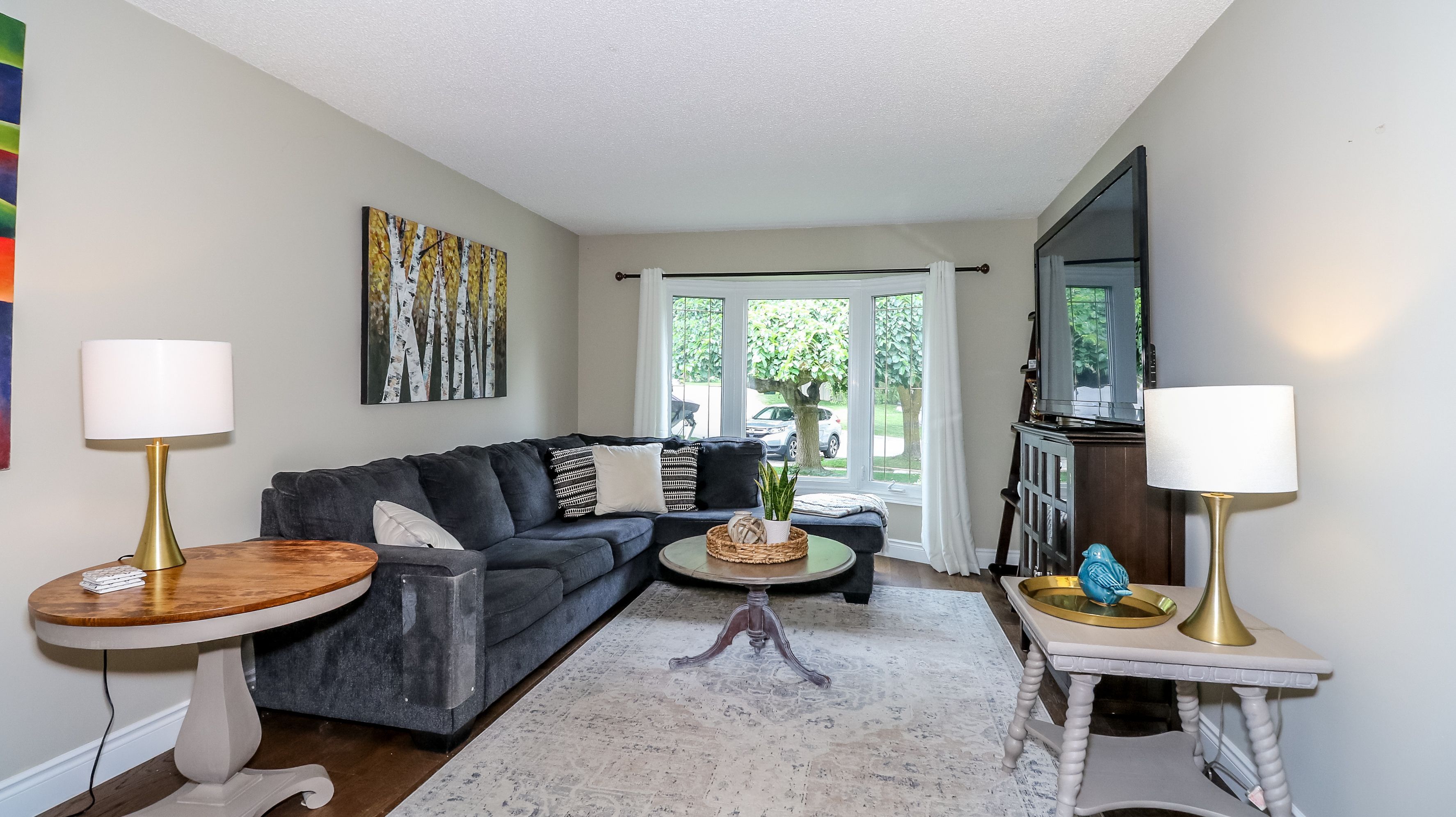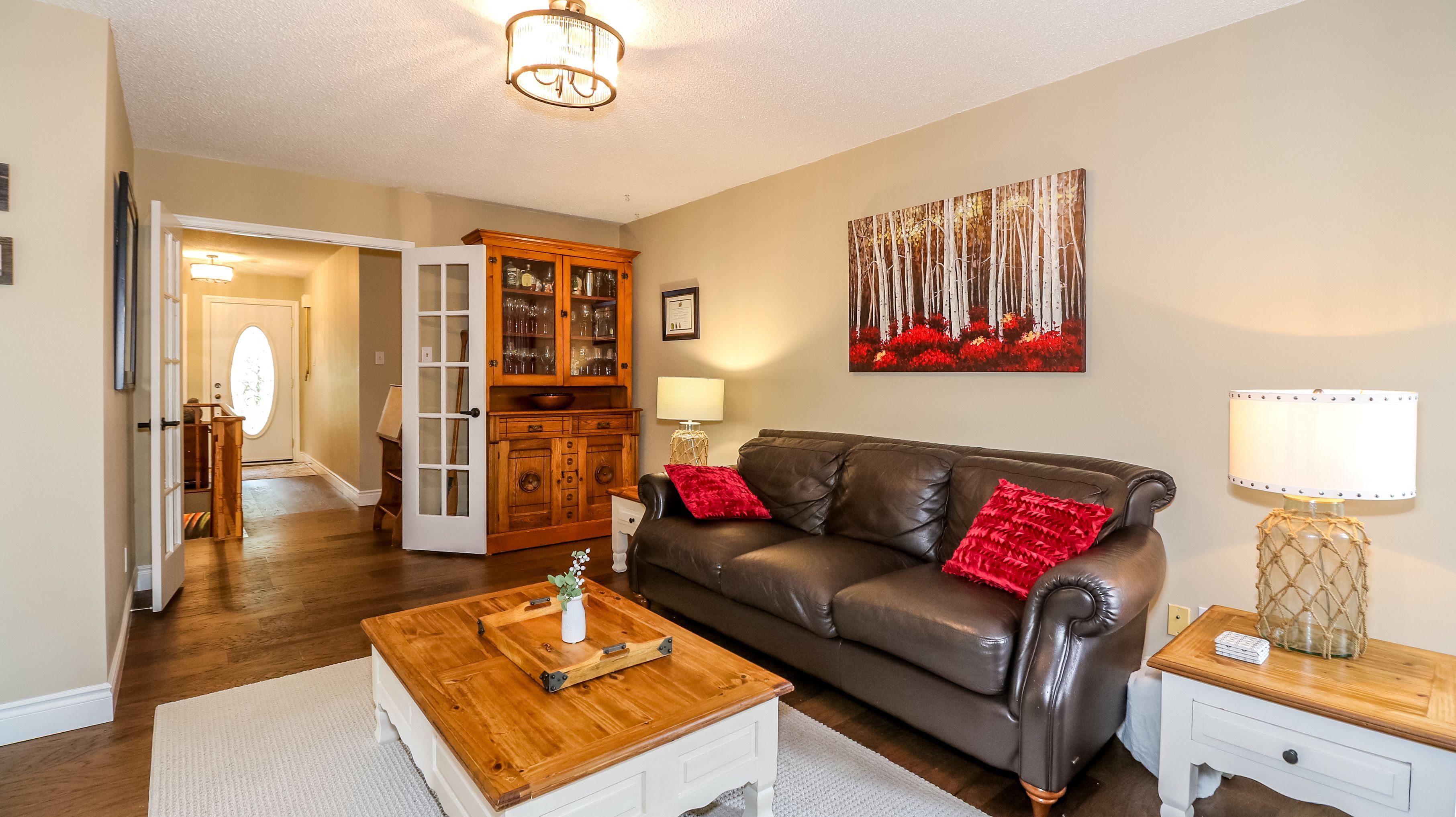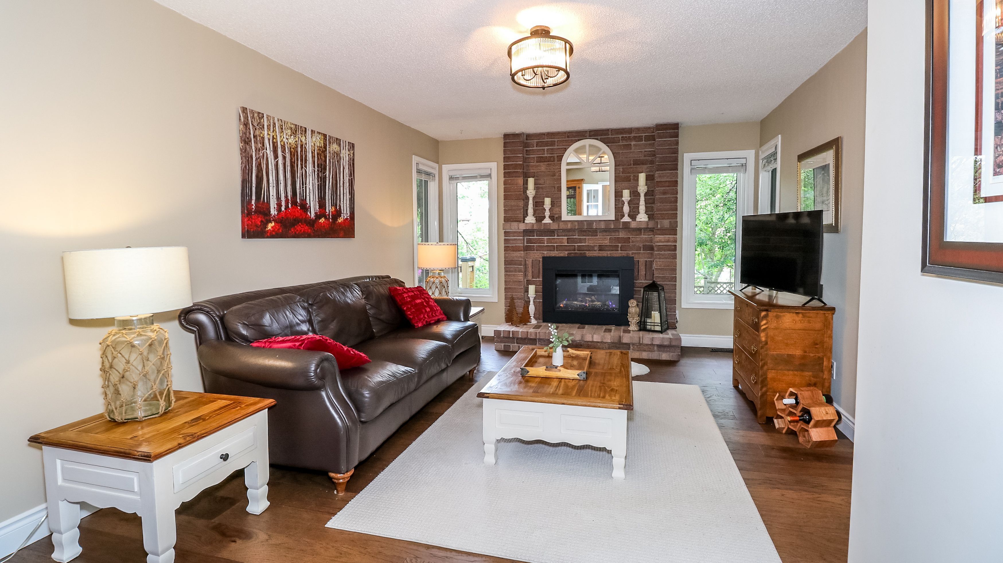 • Three spacious bedrooms and a family room with electric fireplace.