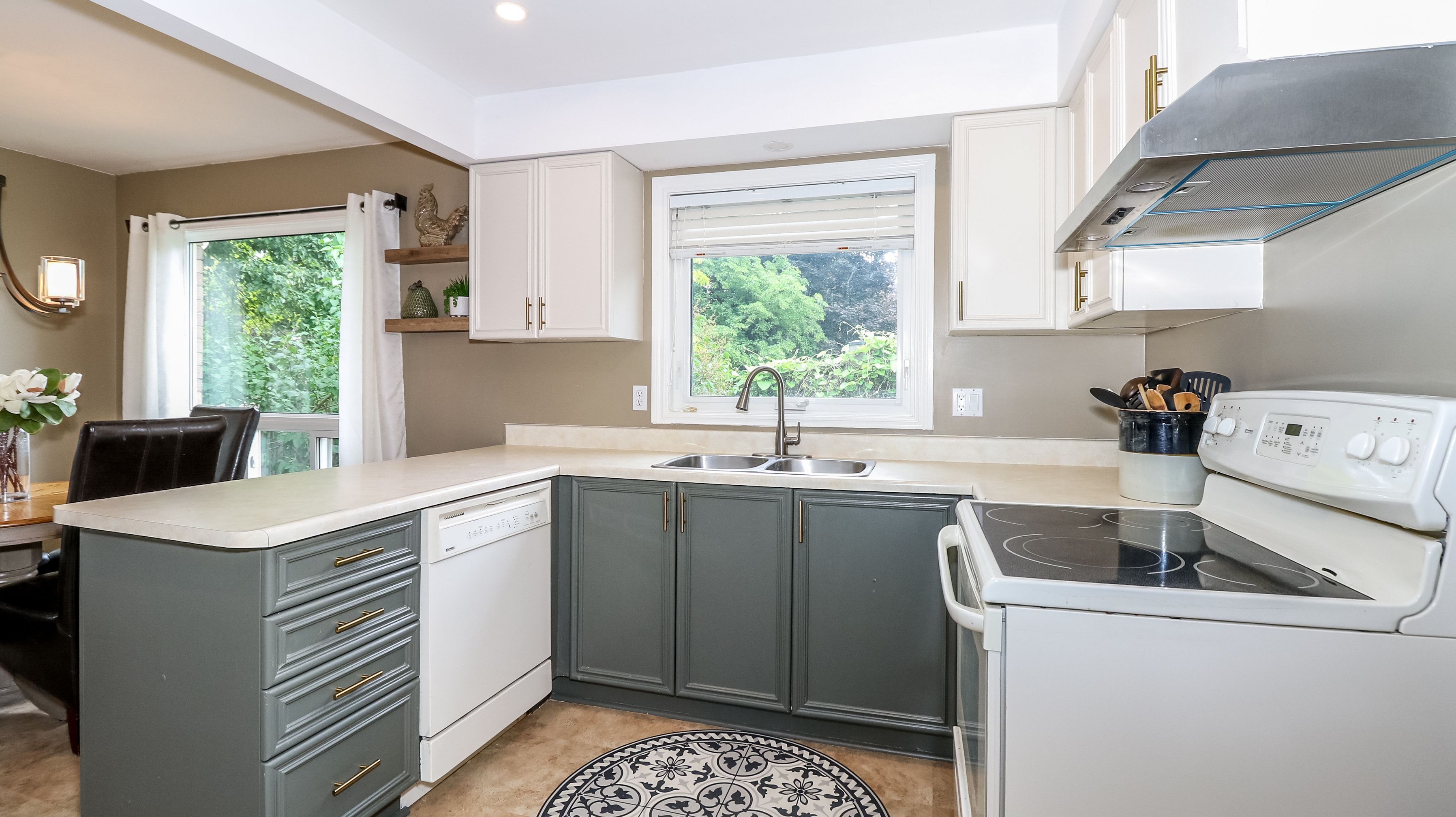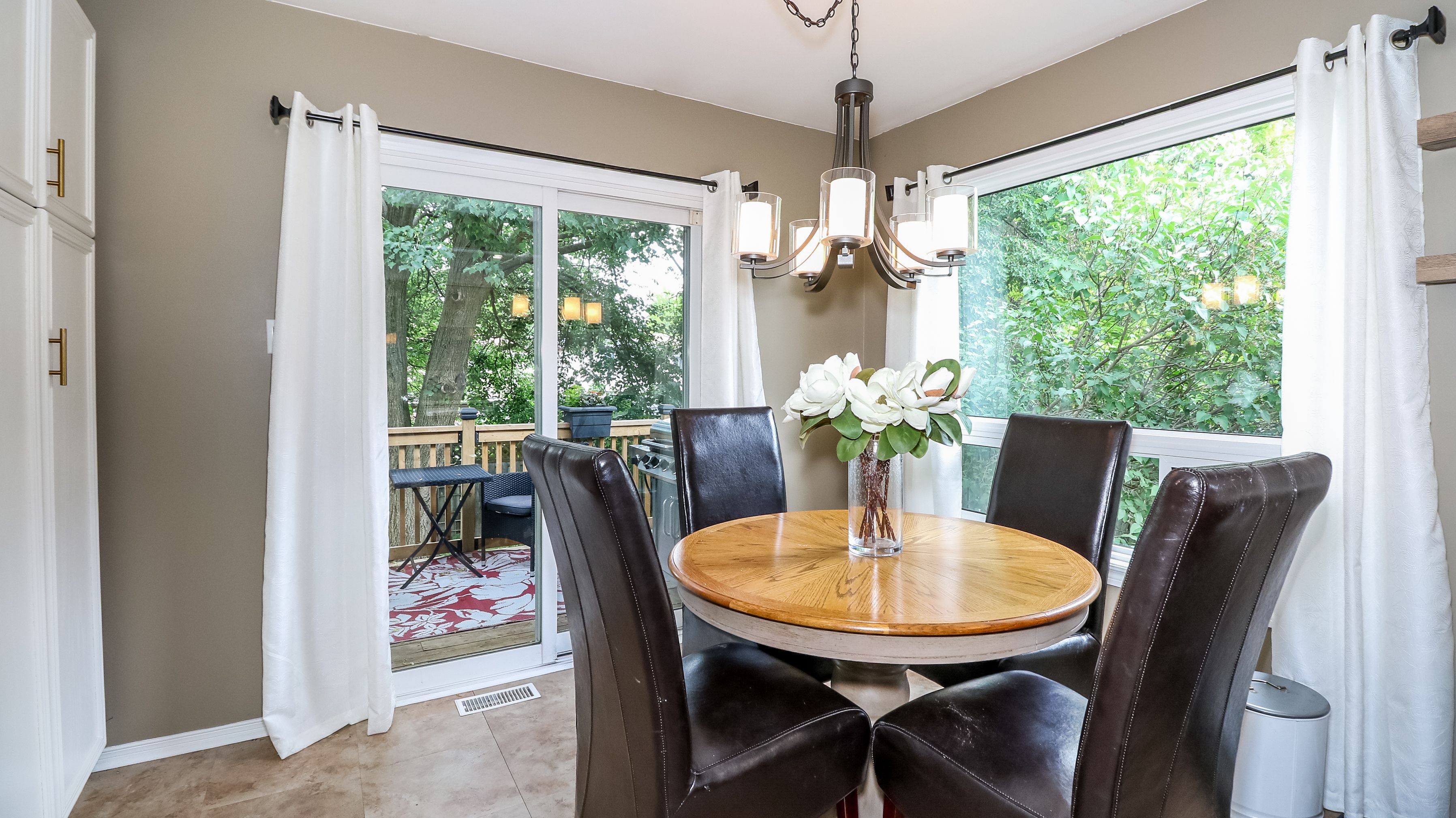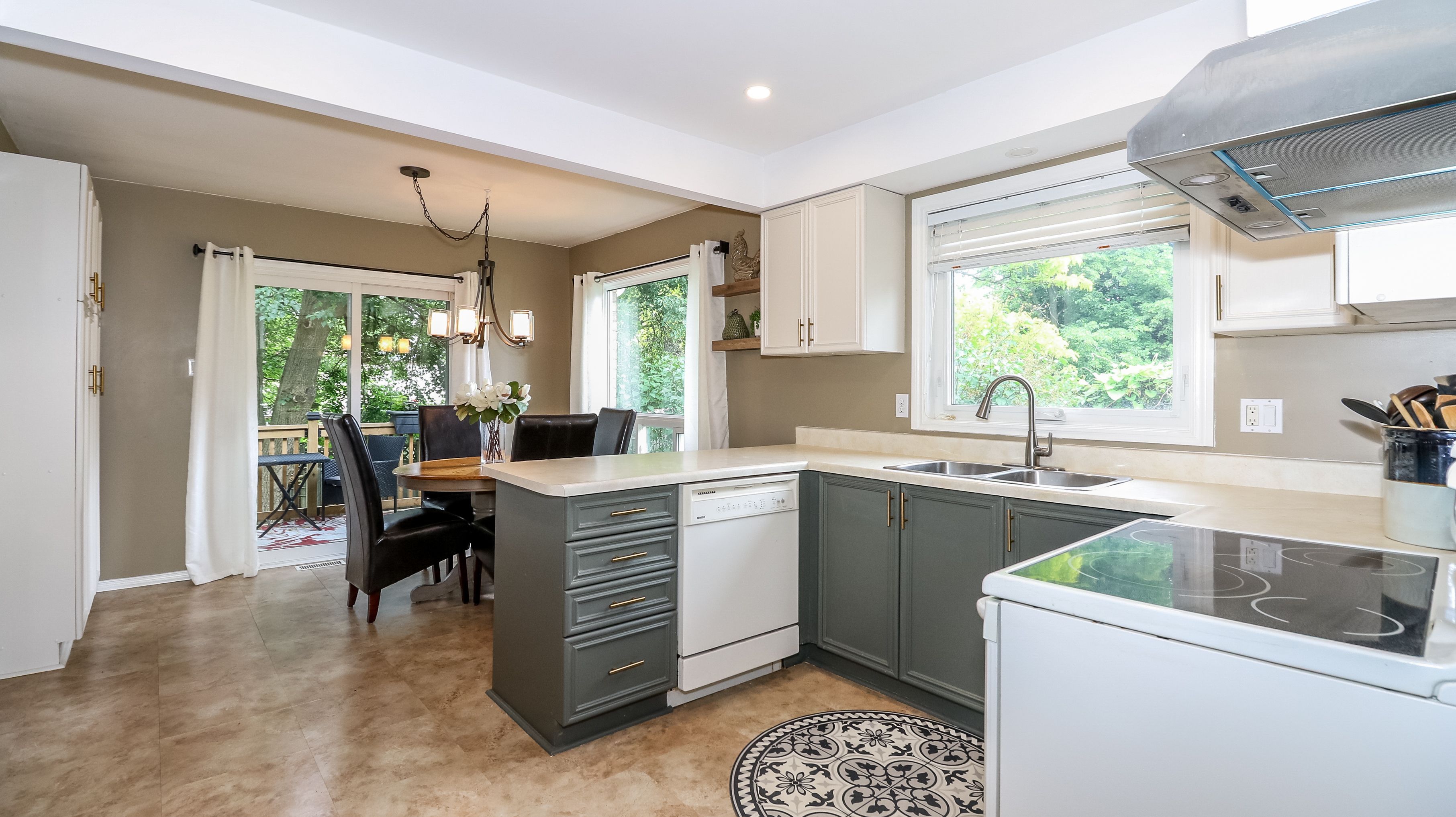 • Large eat-in kitchen with modern updates and walk-outs to deck.