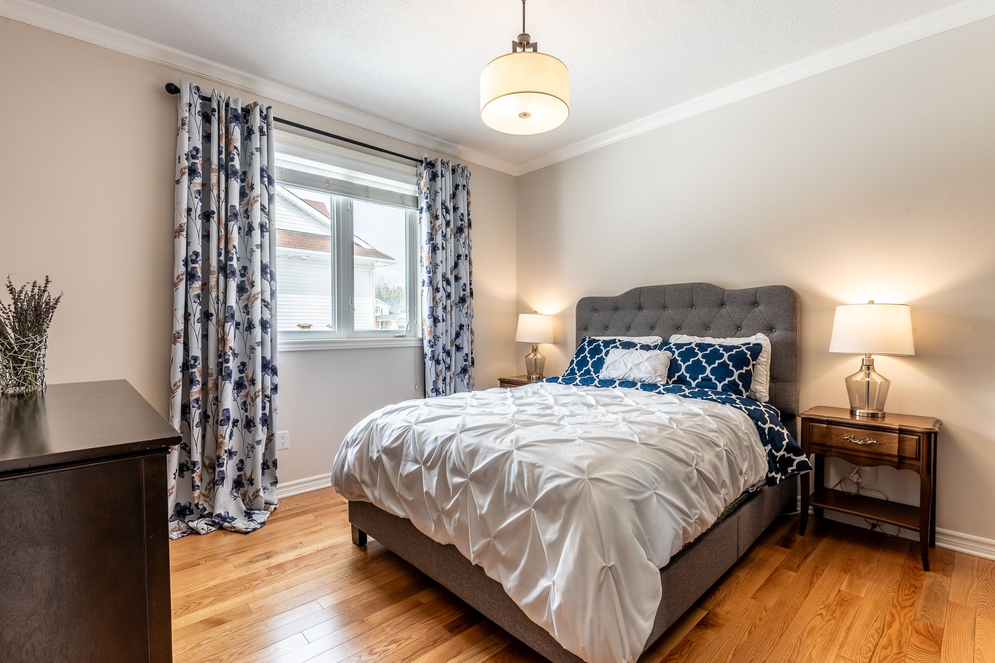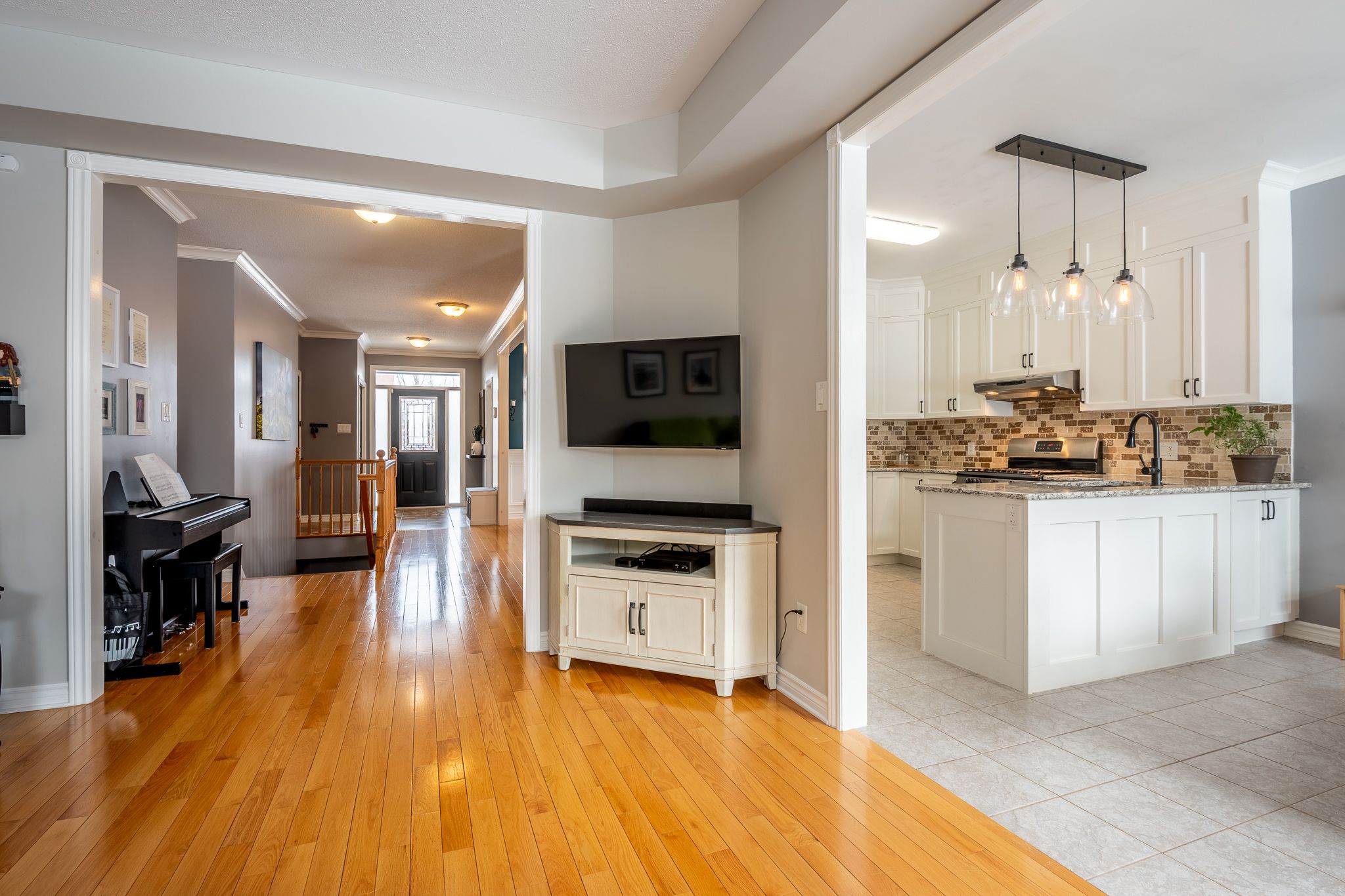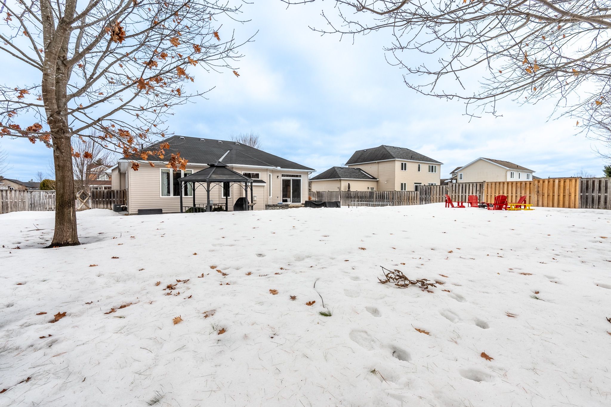 Set on one of petawawa's most sought-after lots, this impressive family home blends space, privacy, and everyday walkability in a way that's hard to find. The expansive fenced rear yard enjoys coveted south-western exposure-perfect for sunset evenings under the gazebo, relaxed dinners on the interlock patio, and memorable campfires with friends-while mature trees at the back create a peaceful sense of retreat right in the heart of town. From here, it's an easy stroll to parks, schools, the library, restaurants, and more. Inside, over 1700 sq ft of thoughtfully designed main-level living begins with soaring 9-foot ceilings and rich hardwood flooring flowing through the principal rooms and bedrooms. A separate formal dining room adds elegance for special occasions, while the generous eat-in kitchen offers an exceptional amount of beautiful quartz counter space and to-ceiling-cabinetry, a 2019 update ideal for busy family routines and effortless entertaining. Recent renovation to hallway pantry brings organization to another level. The kitchen connects seamlessly to the bright living room anchored by a welcoming gas fireplace. Large windows flood the space with natural light, and patio doors extend your living area effortlessly outdoors. A versatile main-floor den-previously used as a third bedroom-adds flexibility for growing families or work-from-home needs. The spacious primary suite easily accommodates a king-size bed, features south-western windows, a walk-in closet, massive wardrobes & private 4 piece ensuite bath. Designed with entertaining in mind, the fully finished lower level delivers a massive recroom ready for everything from movie nights and game tables to workout zones and celebration-sized gatherings. Two additional bedrooms, a polished third bath with glass shower, and abundant storage complete the level. Direct access from the double attached garage adds everyday convenience through every season. Lawn lushness made possible with inground sprinklers.