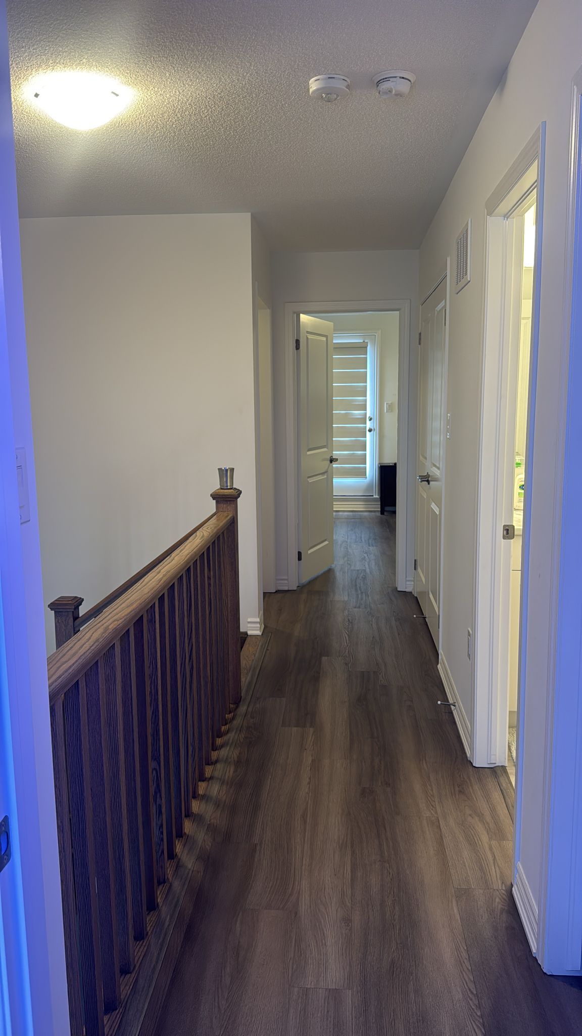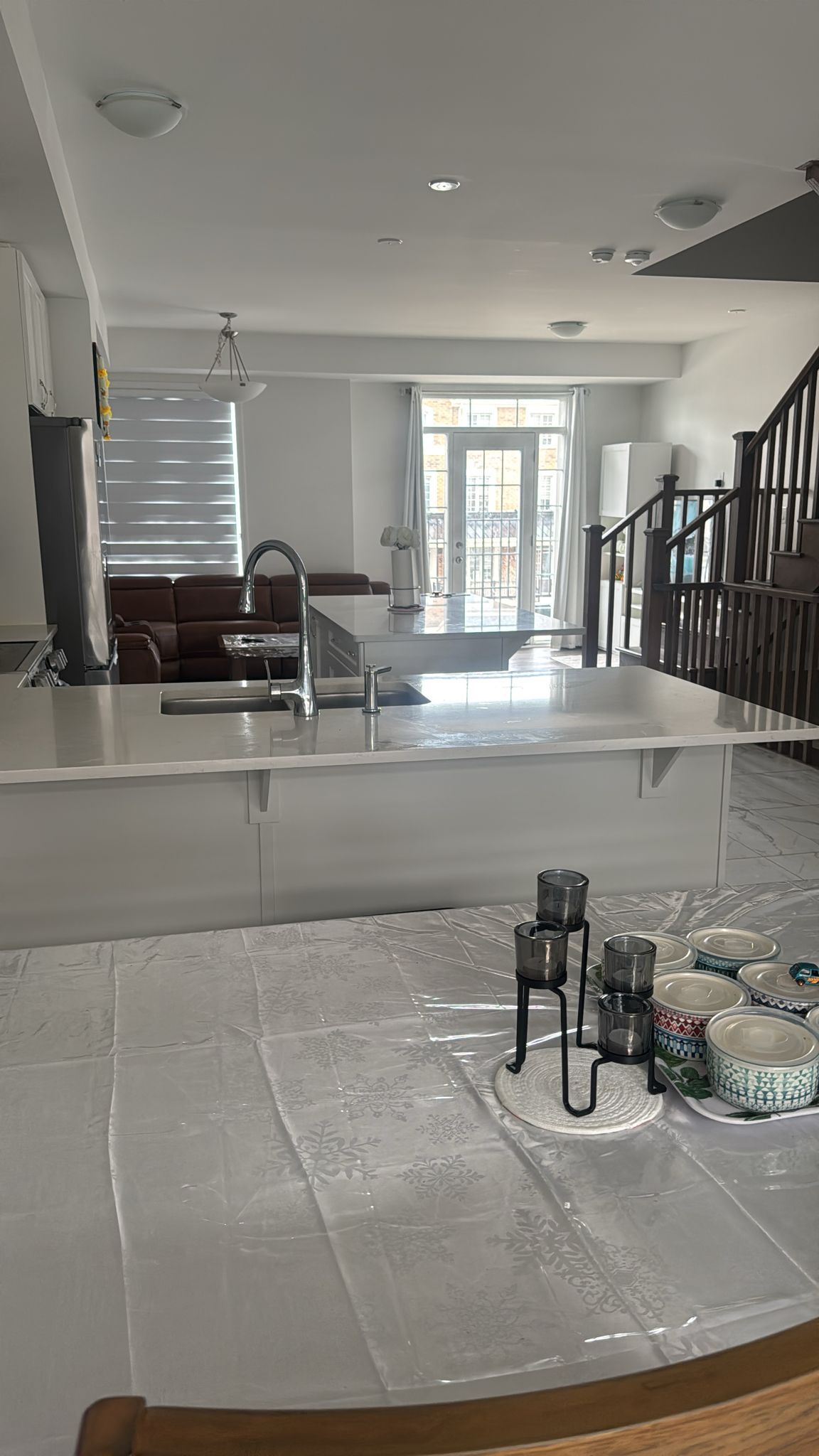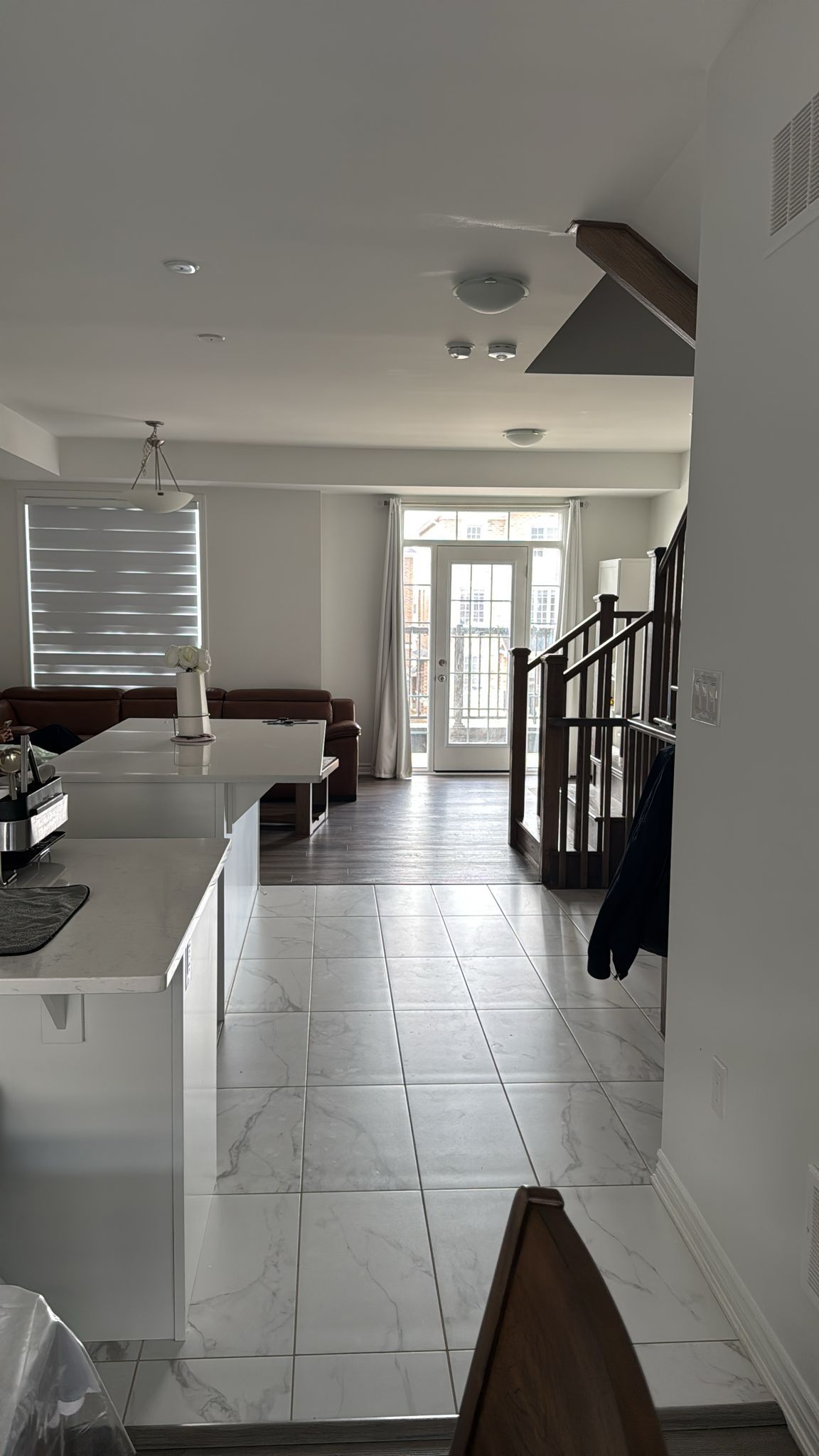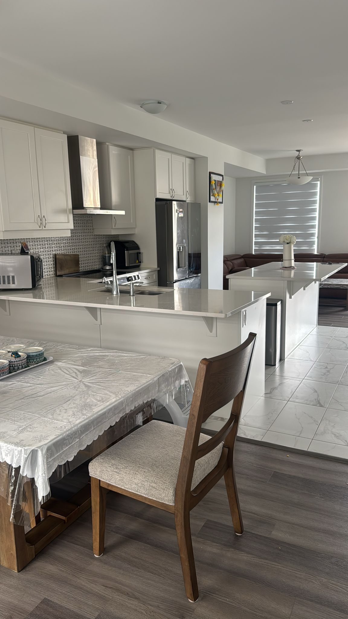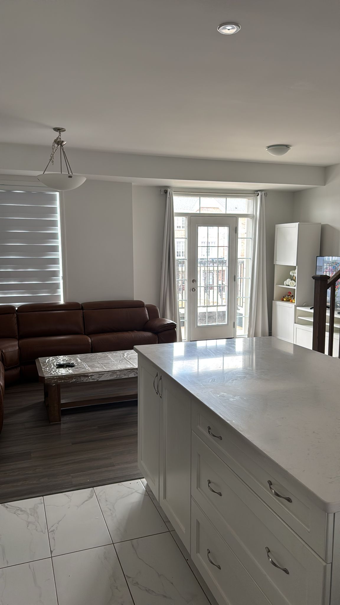 Step into modern comfort and elegance end unit in the highly desirable caledon! This spacious 2000+ sq. Ft. Freehold townhouse perfectly blends style with functionality. Featuring a ground-floor guest suite with a full ensuite, 4 generous bedrooms, 4 bathrooms, and a versatile layout, the home also includes a main-floor den, two large balconies, and a charming juliette balcony. Upgrades such as tiled floors and a custom staircase add sophistication throughout, while 9-foot ceilings on the ground and main floors enhance the open and airy feel. Ideally located just steps from major highways, shopping, restaurants, grocery stores, banks, libraries, go stations, and places of worship, this home provides easy access to everything you need. Combining contemporary design with practical living, it's a rare opportunity to enjoy comfort, style, and convenience in one of caledon's most sought-after communities.
