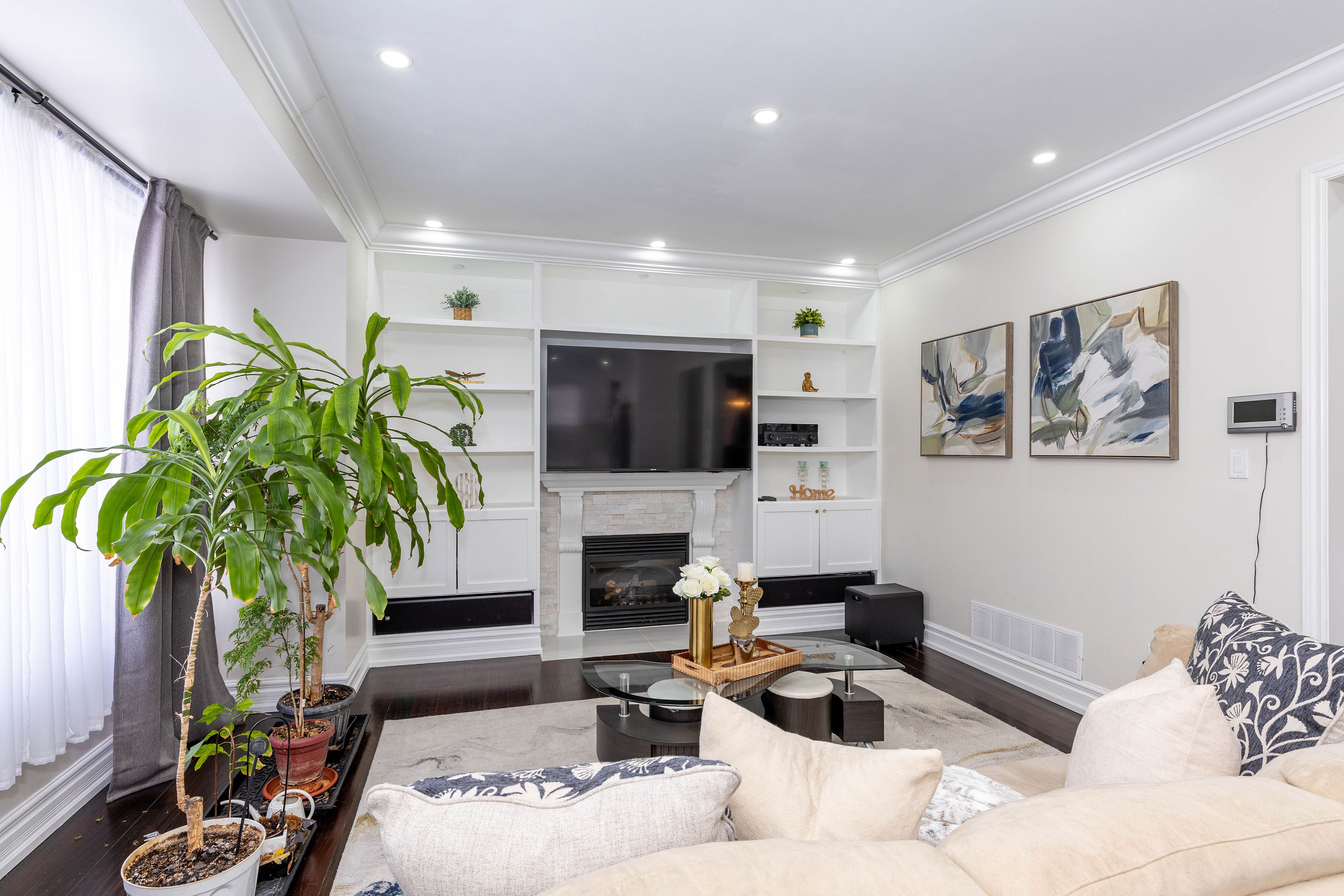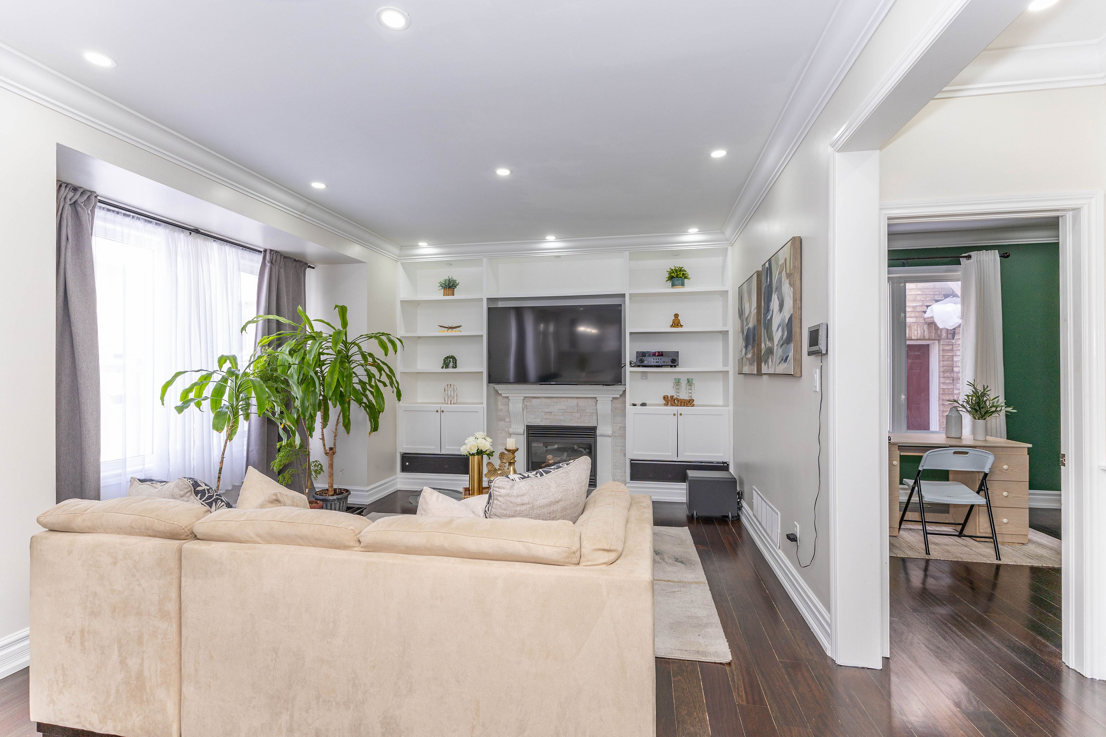 Truly a showstopper!**stunning fully detached 4 bedroom, 5 bathroom home located in a prestigious neighbourhood,**offering approximately 2,900 sq. Ft. As per mpac**double-door entry welcomes you into a bright, elegant layout featuring 9-ft ceilings on the main floor, vaulted ceilings, led pot lights, and brazilian cherry hardwood flooring** throughout-no carpet in the entire home.**the main floor includes a versatile 5th bedroom/office, perfect for work-from-home or guest use**the spacious primary bedroom boasts a luxurious upgraded 5-piece ensuite**the separate-entrance basement is exceptionally designed with two self-contained sections: one section with 2 bedrooms, full bathroom, and laundry second section is a studio with its own bathroom (alternatively, can be used as a large 3-bedroom basement)**exterior features include professionally landscaped grounds, in-ground sprinkler system**360 security cameras, and a custom-built charcoal fireplace-perfect for entertaining**a must-see property**