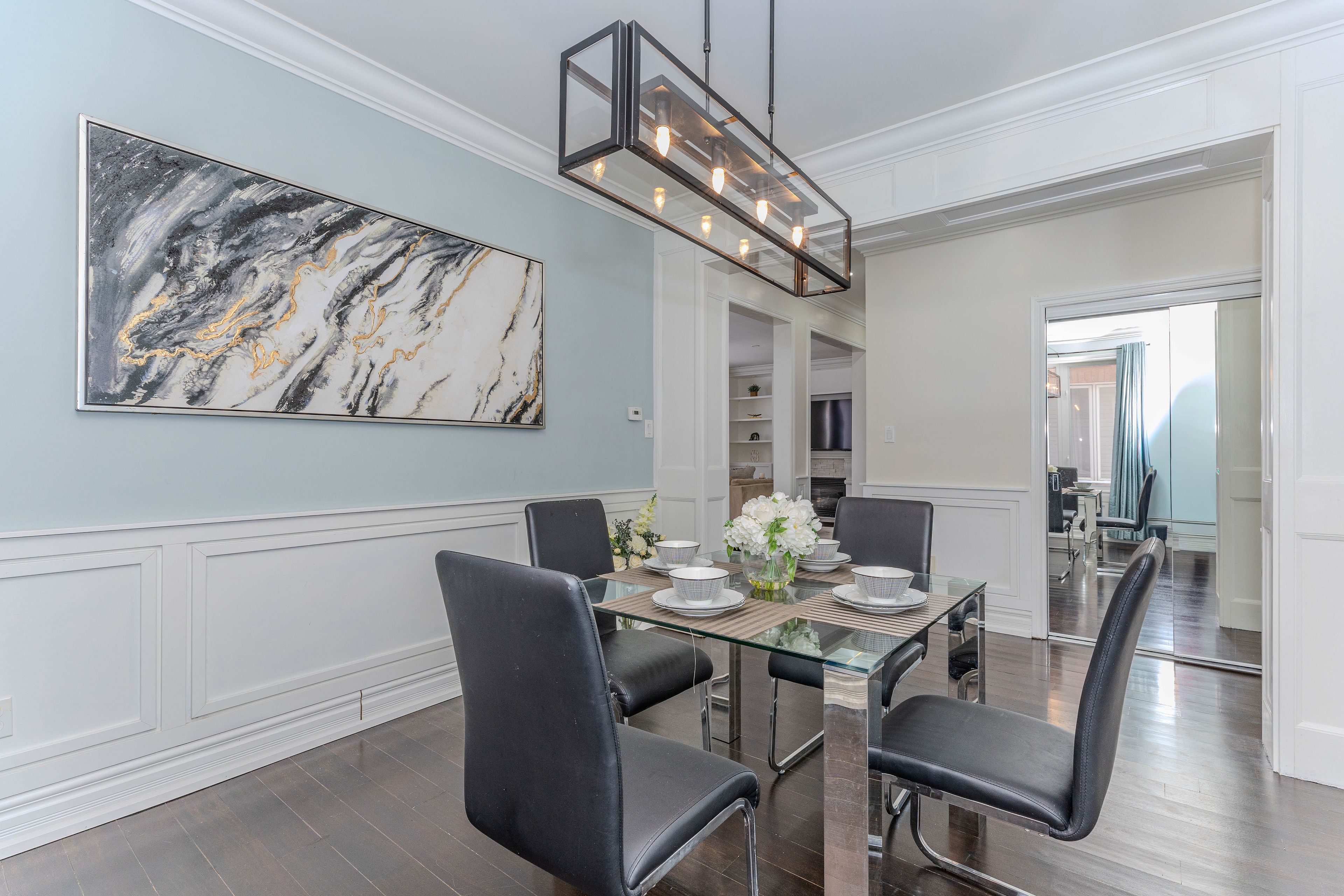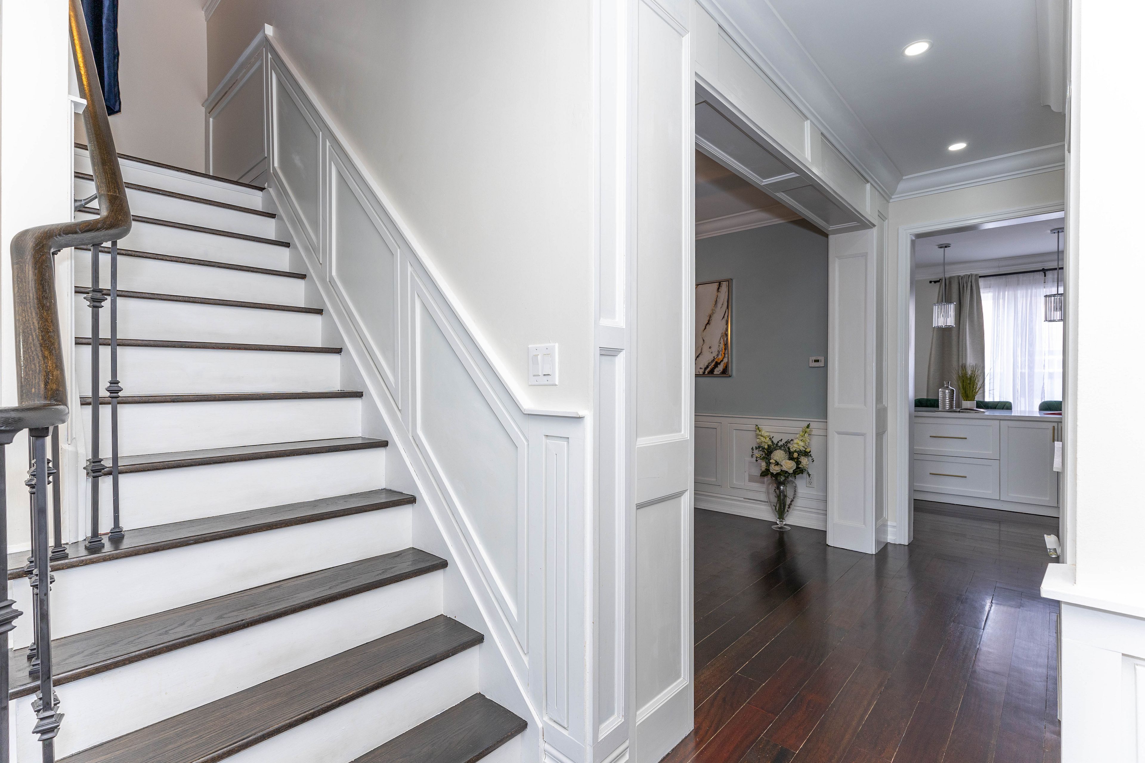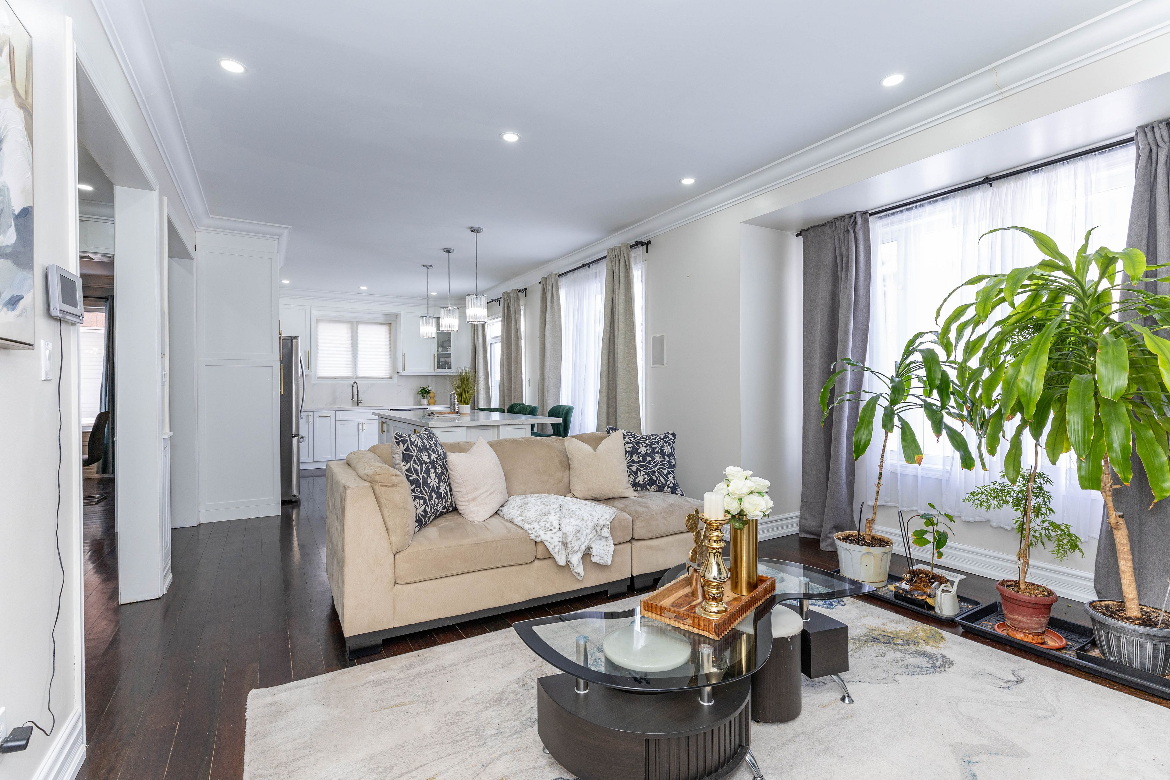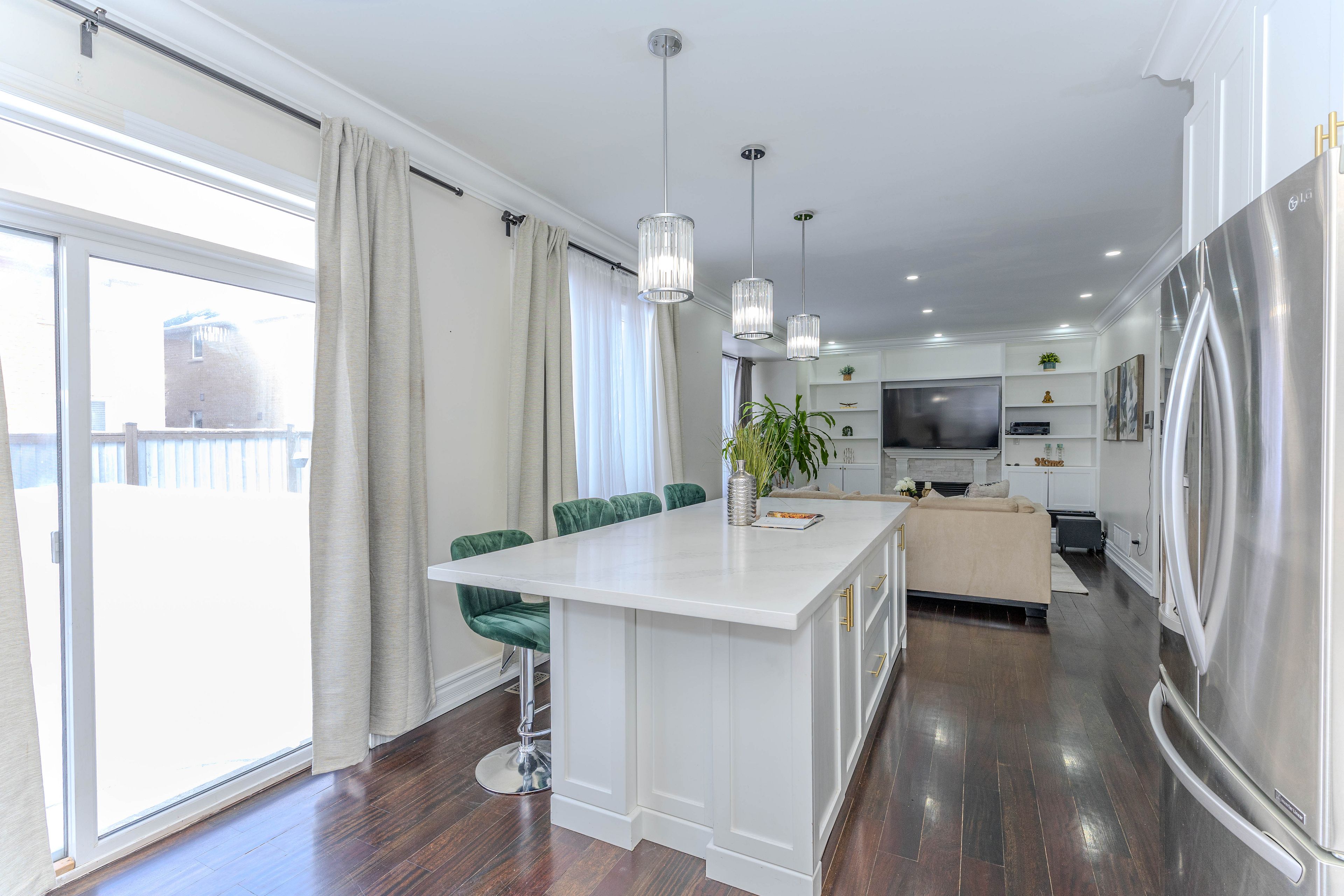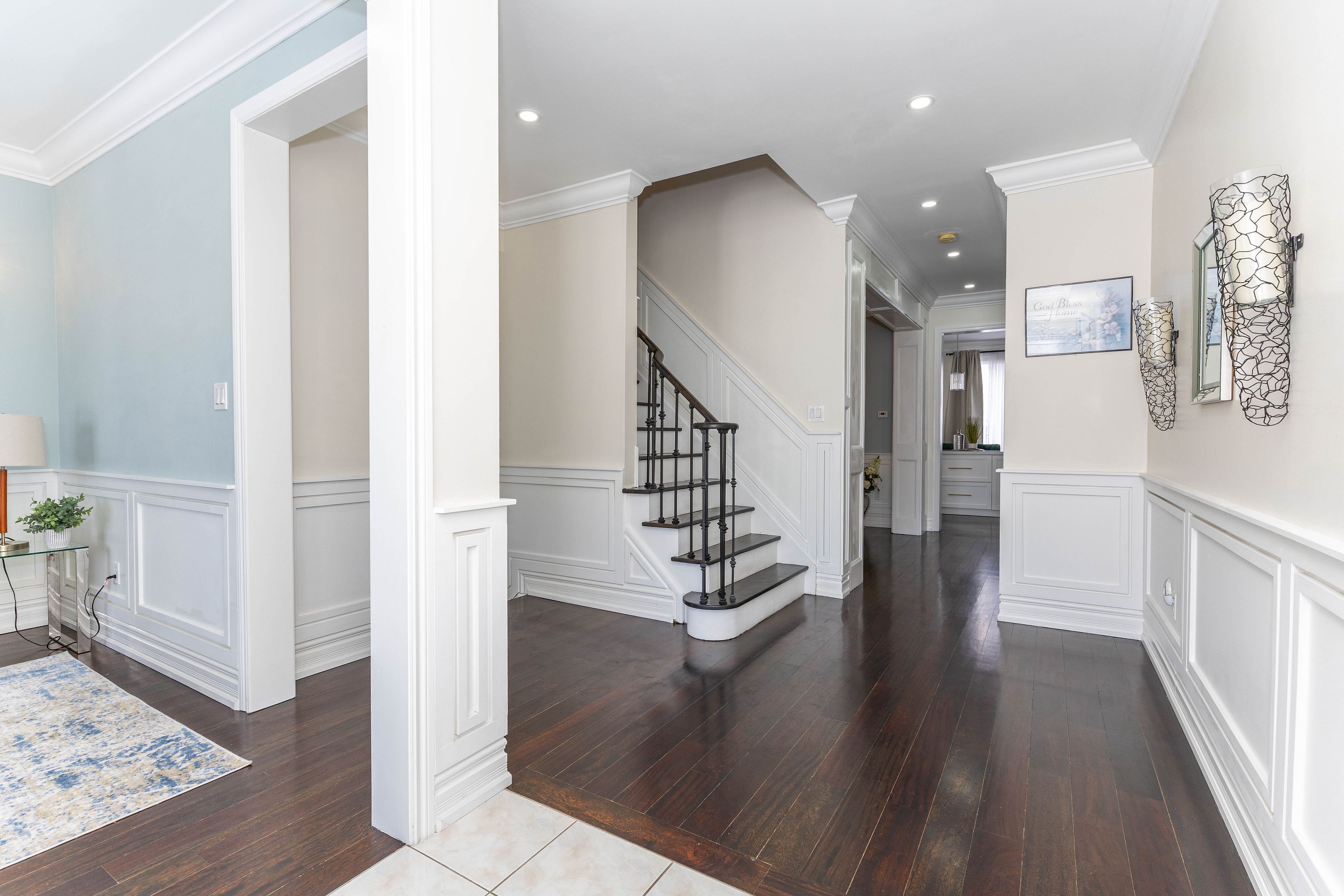 • Bright layout with 9-ft main floor ceilings and elegant hardwood flooring.