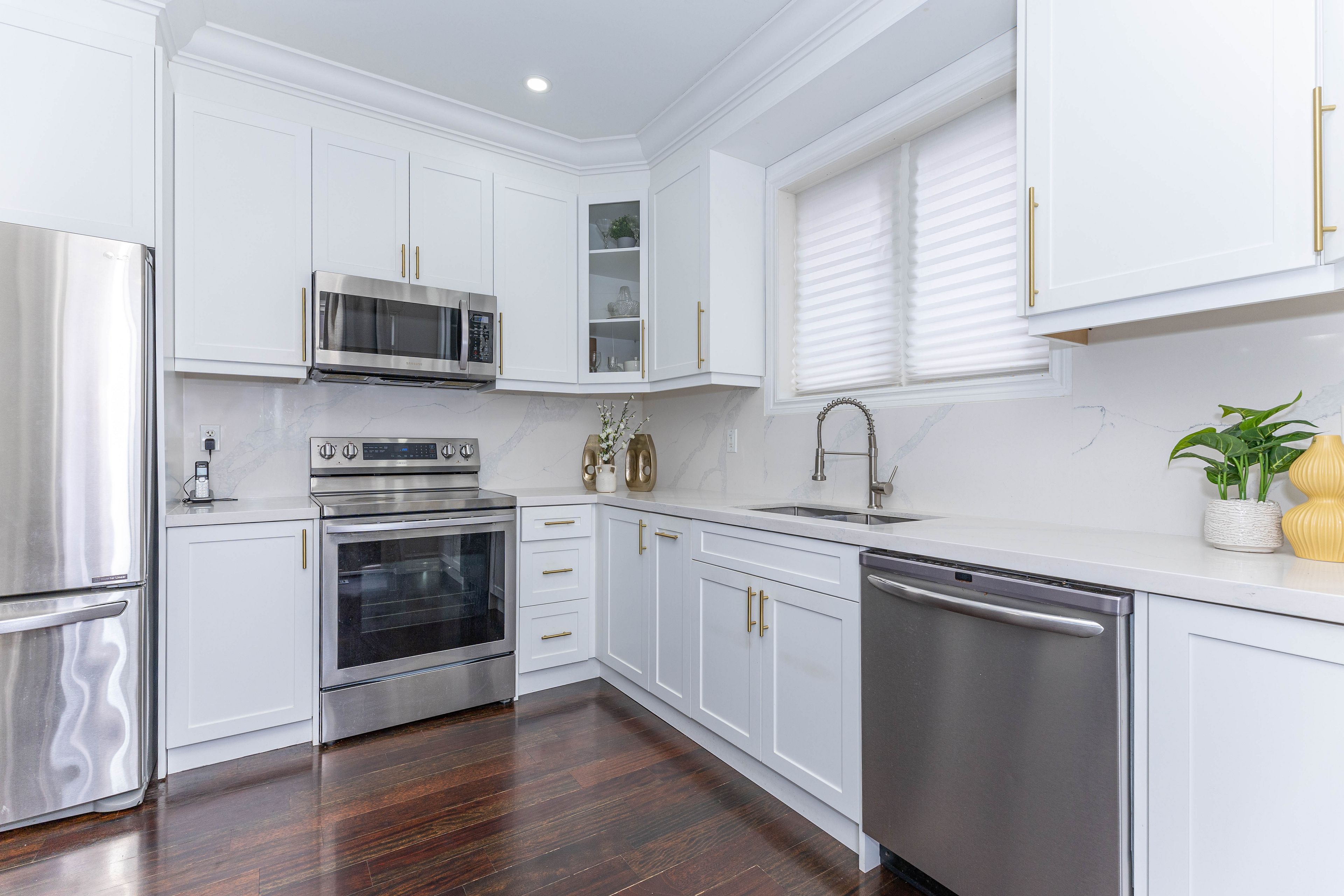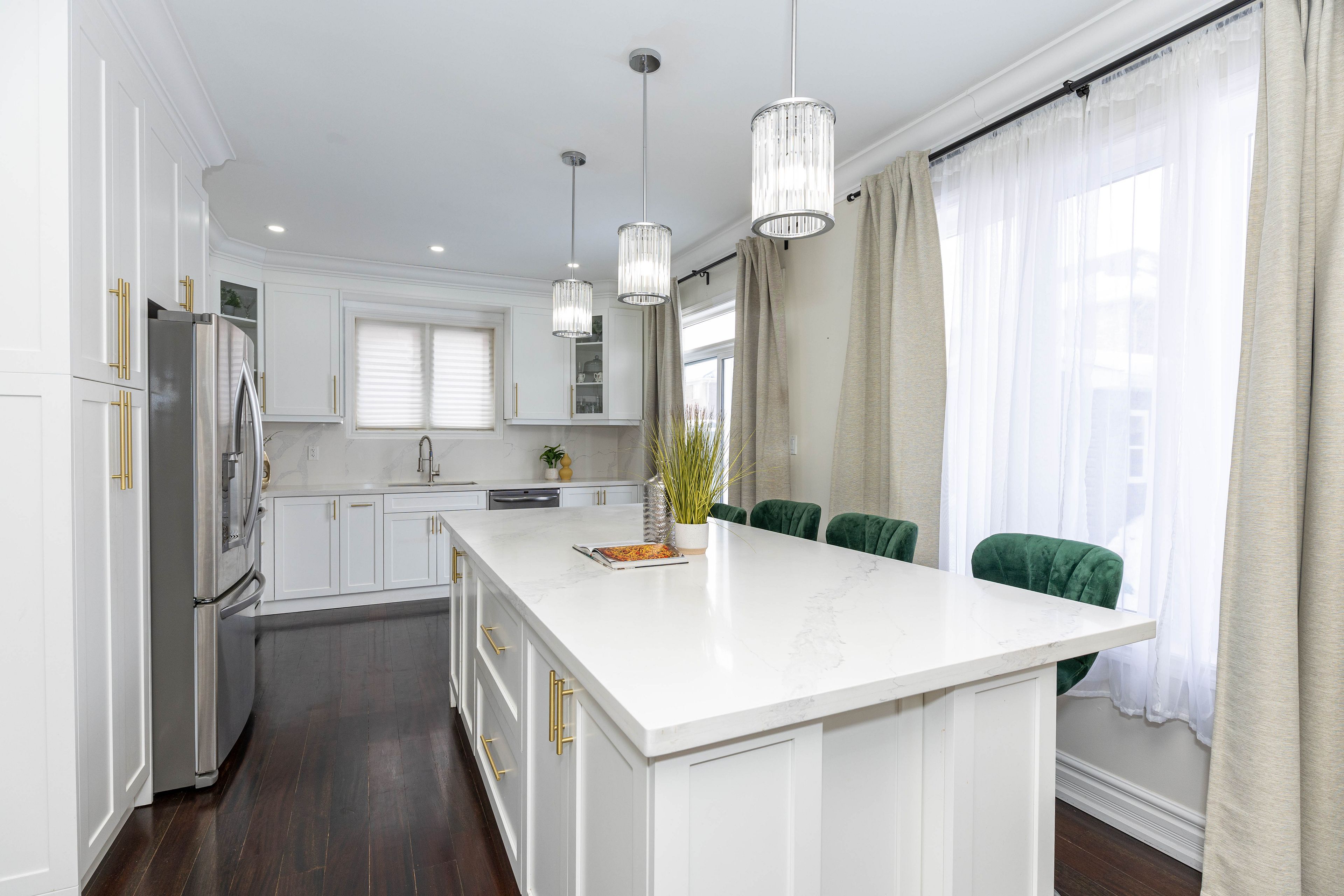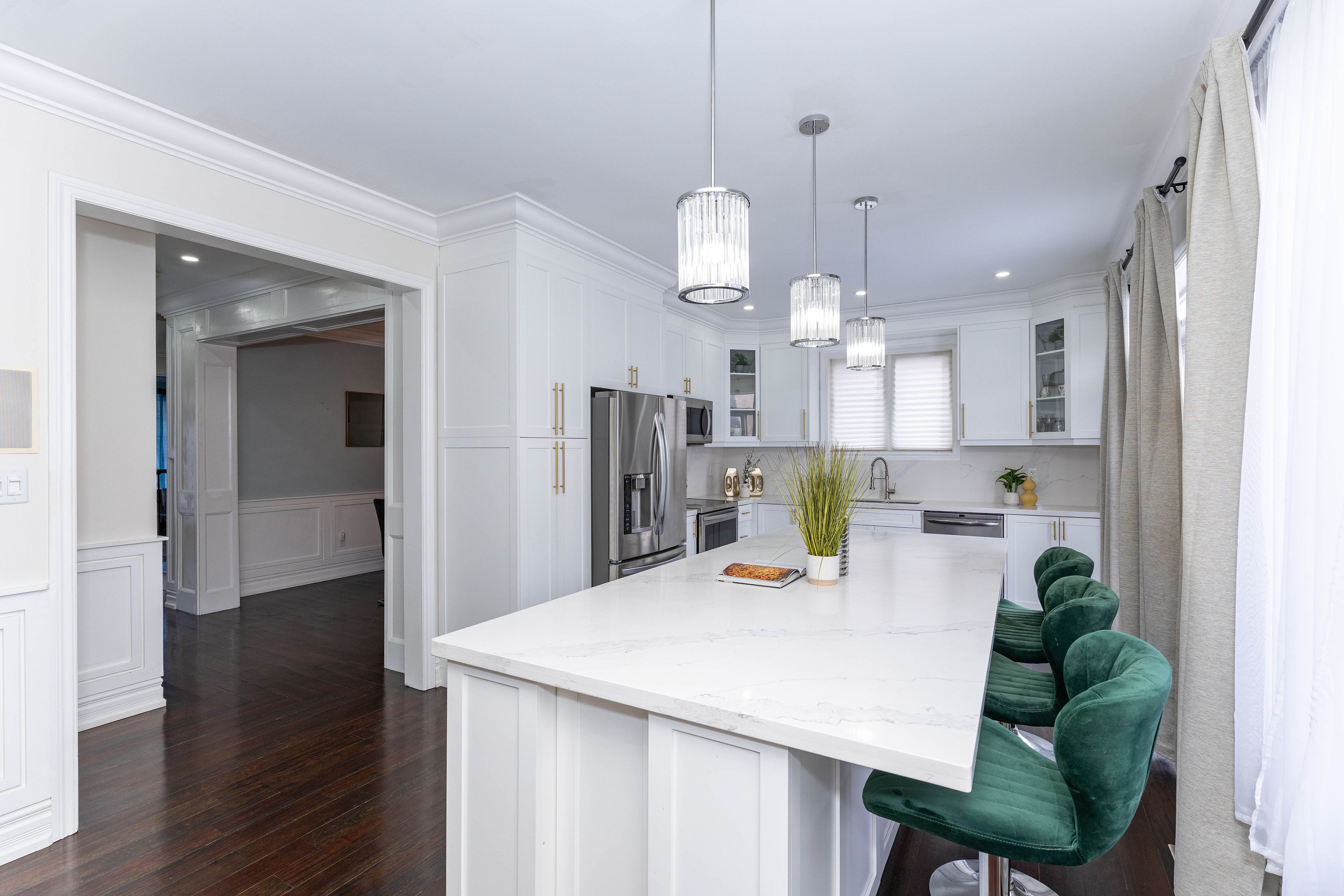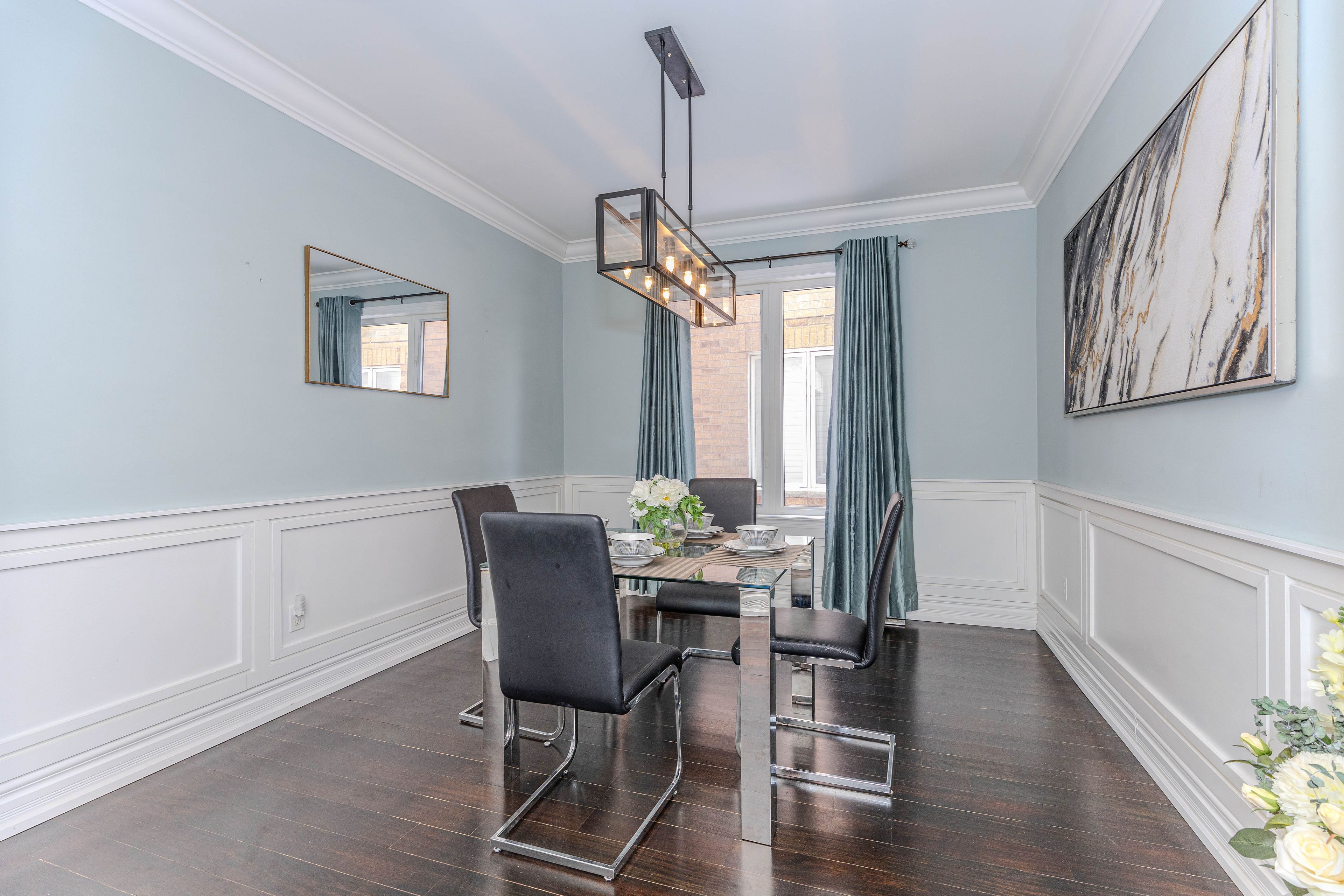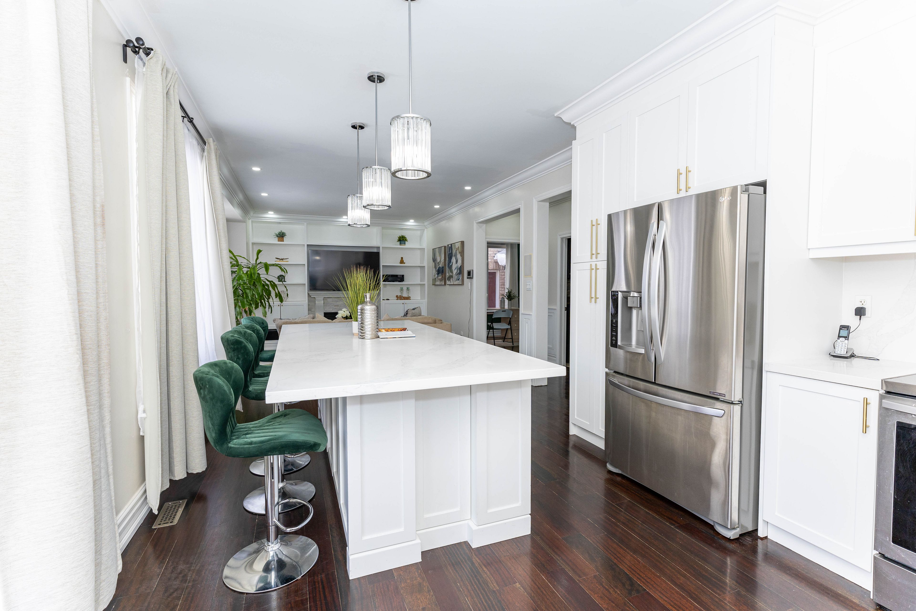 • Bright layout with 9-ft main floor ceilings and elegant hardwood flooring.