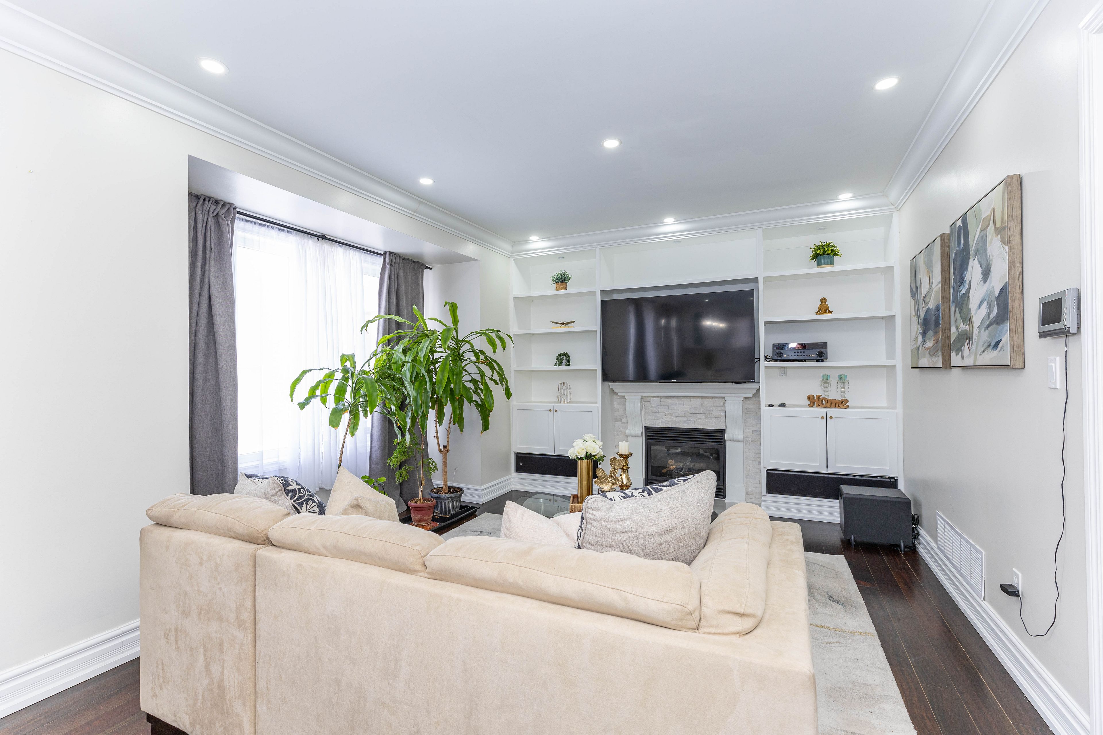 Truly a showstopper!**stunning fully detached 4 bedroom, 5 bathroom home located in a prestigious neighbourhood,**offering approximately 2,900 sq. Ft. As per mpac**double-door entry welcomes you into a bright, elegant layout featuring 9-ft ceilings on the main floor, vaulted ceilings, led pot lights, and brazilian cherry hardwood flooring** throughout-no carpet in the entire home.**the main floor includes a versatile 5th bedroom/office, perfect for work-from-home or guest use**the spacious primary bedroom boasts a luxurious upgraded 5-piece ensuite**the separate-entrance basement is exceptionally designed with two self-contained sections: one section with 2 bedrooms, full bathroom, and laundry second section is a studio with its own bathroom (alternatively, can be used as a large 3-bedroom basement)**exterior features include professionally landscaped grounds, in-ground sprinkler system**360 security cameras, and a custom-built charcoal fireplace-perfect for entertaining**a must-see property**