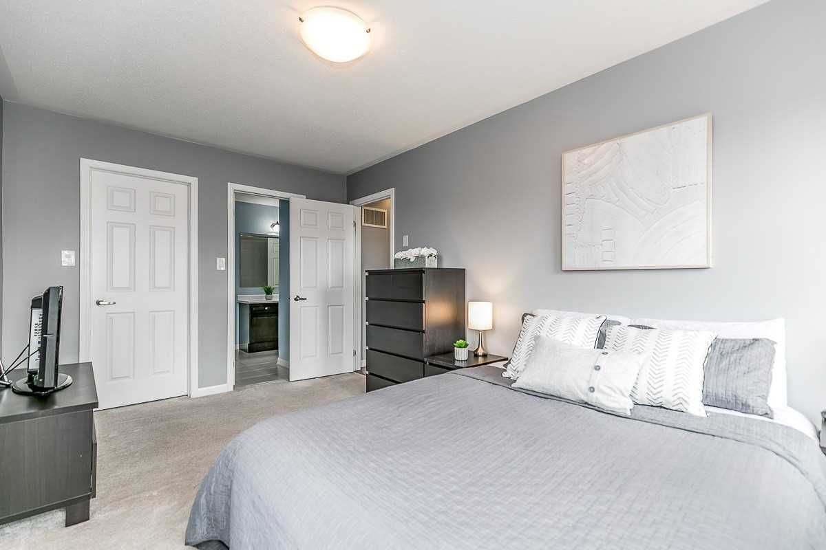 Spacious townhome located in brampton's mount pleasant village, just a 2-minute walk to the go station for easy train commuting. Main floor laundry and two-car parking. The second level features a living and dining room with hardwood floors and a walk-out to a balcony. The kitchen offers plenty of counter space and appliances. The third level has two bedrooms, including a primary bedroom with a walk-in closet and a 4-piece shared semi-ensuite.
