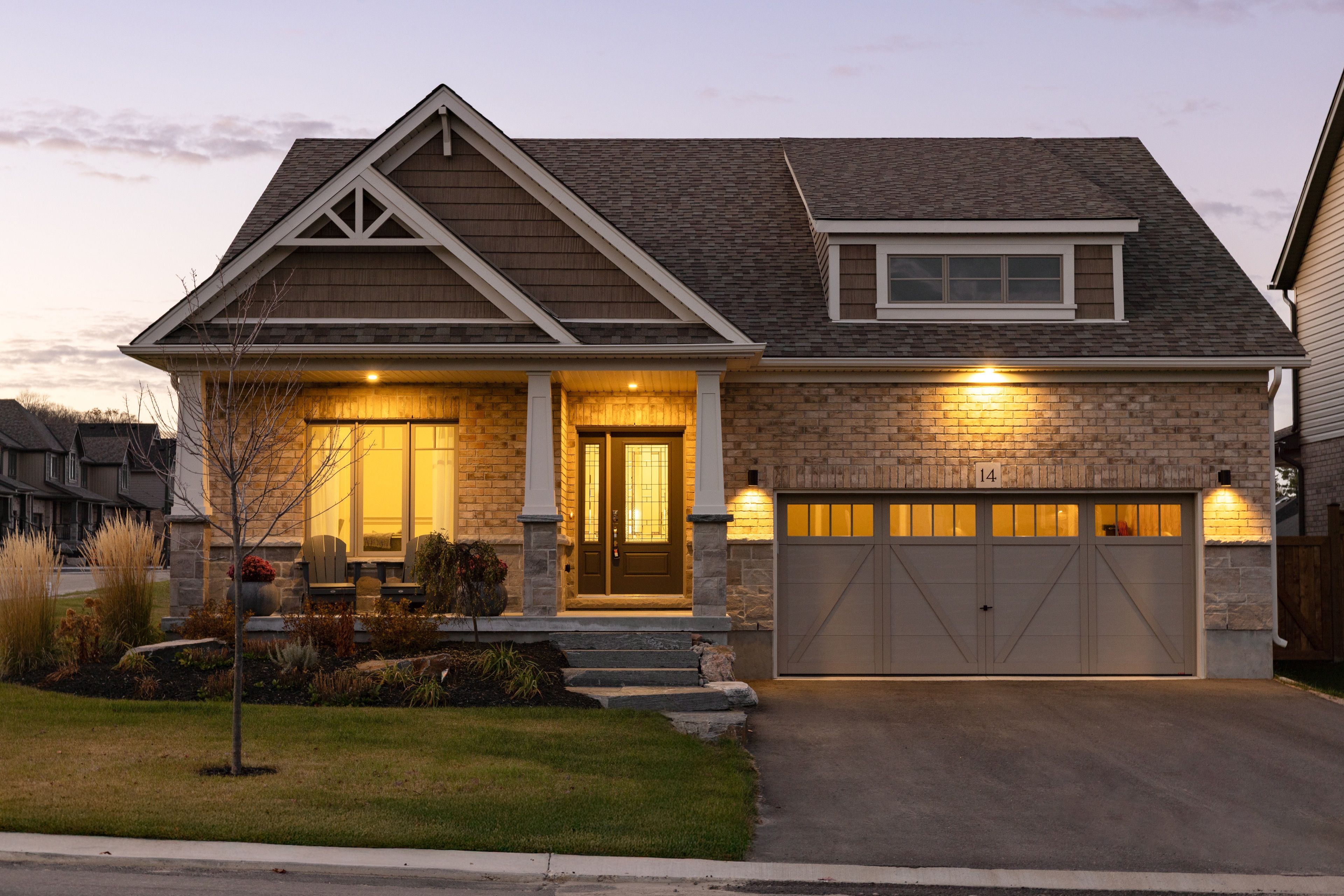 Set on a premium corner lot in an upscale new development, 14 charles morley blvd blends the sought-after muskoka floor plan, timeless curb appeal, & every upgrade you'd expect - hardwood floors, central air, quartz countertops, & a sun-filled layout that instantly feels like home! The fully landscaped setting sets the tone, & the covered front porch elevates both style & function - a perfect place for morning coffee or relaxing evenings. Step through the front door & you'll immediately notice the abundance of natural light flooding the home from multiple exposures. Large windows, 9' ceilings, & a wide-open layout make every space feel bright, airy, & welcoming. At the heart of it all, the upgraded kitchen is as stylish as it is functional - featuring quartz countertops, extended cabinetry w/ crown molding, under-cabinet lighting, stainless steel appliances (all included), & an island w/ breakfast bar seating. The open concept layout seamlessly blends kitchen, dining, & living spaces, ideal for entertaining or simply enjoying daily life. The front of the home offers a versatile bonus room perfect as a sitting room, home office/private study - while the back hosts a spacious primary suite w/ a walk-in closet & spa-like ensuite including a soaker tub & upgraded vanity. A 2nd bedroom & full guest bath accommodate family/guests, while main floor laundry & direct access to the double car garage add everyday convenience. The unfinished lower level comes w/ an upgraded egress window & bathroom rough-in, offering endless potential - gym, media room, or extended living space. Outside, the brand-new deck (2025) brings your indoor lifestyle out - your go-to space for conversation, connection, and the kind of fresh air that resets everything. Central air (2023) keeps things cool. Tarion warranty provides peace of mind for years to come! This is more than a move - its a smart, stylish step forward.