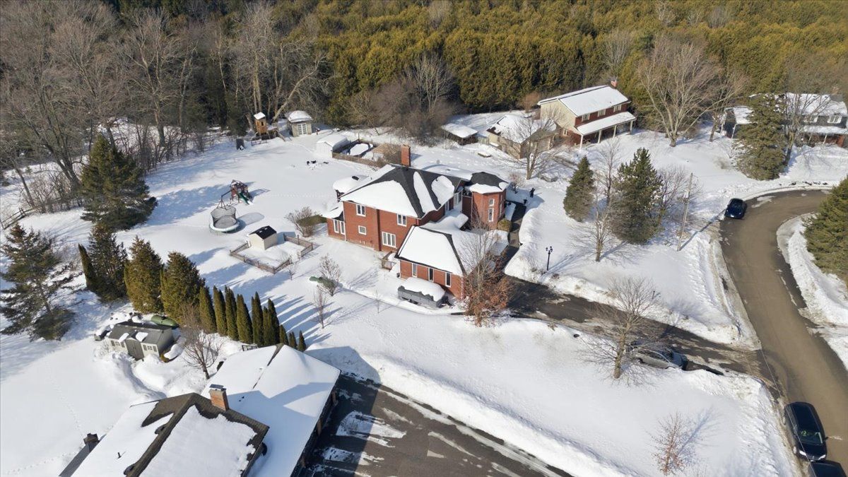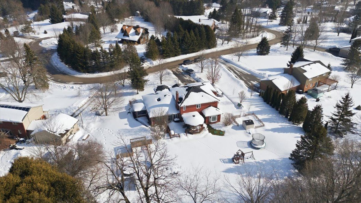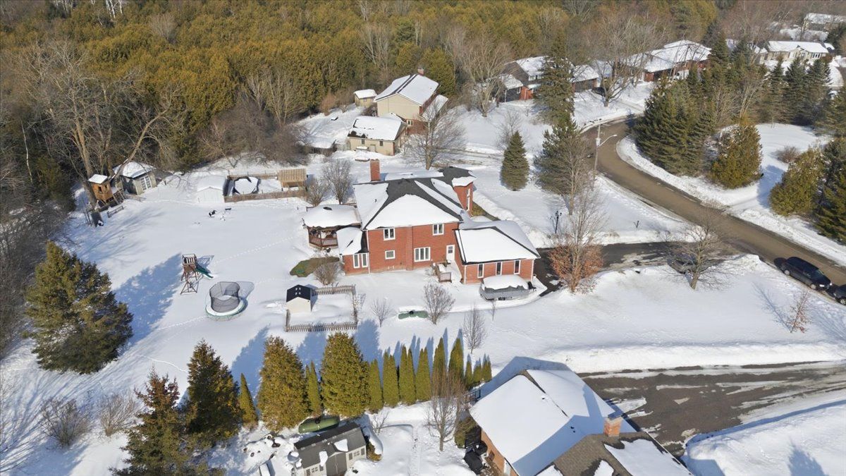 Two homes in one!!! A rare opportunity to own two fully independent homes side-by-side on a sprawling 1-acre lot in the sought-after hamlet of utica, scugog. This expansive residence offers exceptional versatility with 2 kitchens, 2 living rooms, and 2 dining rooms - ideal for multi-generational living, extended family stays, or investors exploring the potential for a third self-contained unit. The main home features hardwood flooring, elegant wainscoting, and crown moulding throughout the principal rooms. The spacious eat-in kitchen showcases granite countertops and a walk-out to the deck, while the family room is anchored by a cozy wood-burning fireplace. Upstairs, hardwood floors continue through four generously sized bedrooms. The primary suite is a true retreat, complete with a walk-in closet and a luxurious 6-piece ensuite. The fully self-contained in-law suite offers its own separate entrance, kitchen, living room with cathedral ceiling, 4-piece bath, spacious bedroom with walk-in closet, and a private basement. Both basements are fully separated and finished with laminate flooring, providing outstanding additional living space, including a media room, recreation room, sixth bedroom, beautiful bar area, and a second wood-burning fireplace. The home is equipped with two electrical panels (200-amp and 100-amp service), and the hot water tank is owned. Enjoy your private outdoor oasis -1 acre on a quiet cul-de-sac - featuring raised garden beds, a large deck backs off onto a tree farm and or hundreds of acres of environmentally protected woods, and an above-ground pool. The driveway accommodates parking for up to 8 vehicles, plus a 2-car attached garage. Experience peaceful rural living just 6 minutes from the walmart shopping centre in port perry. A truly unique property that must be seen to be fully appreciated.