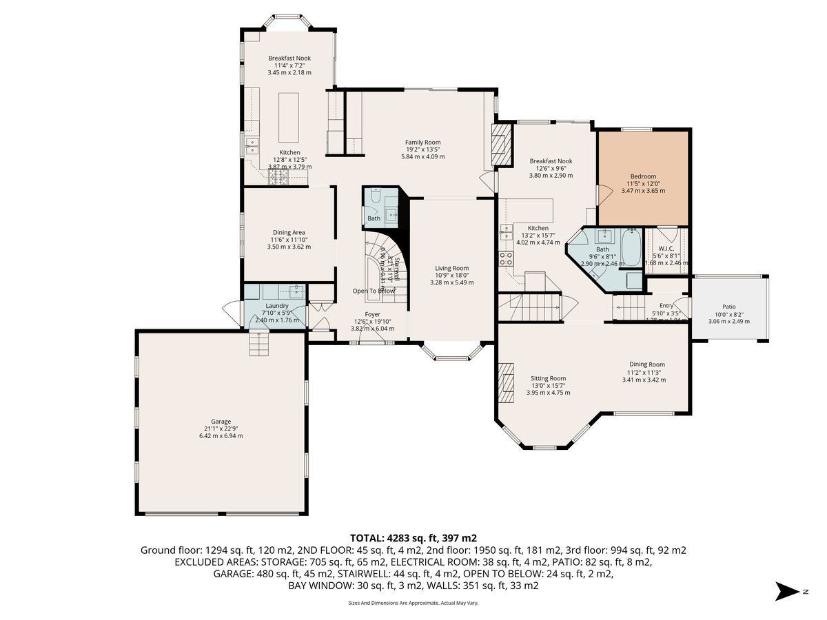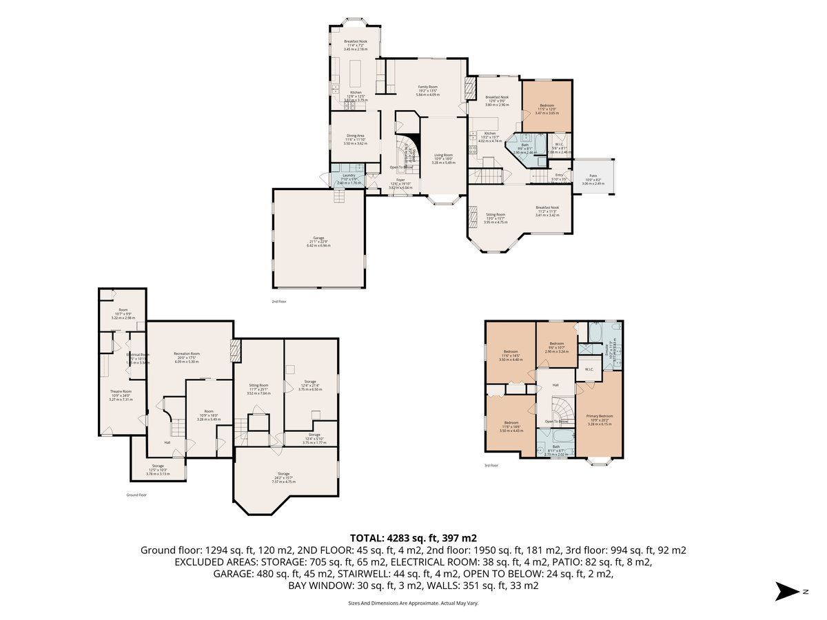 • Two kitchens, two living rooms, and two dining rooms for flexibility.
