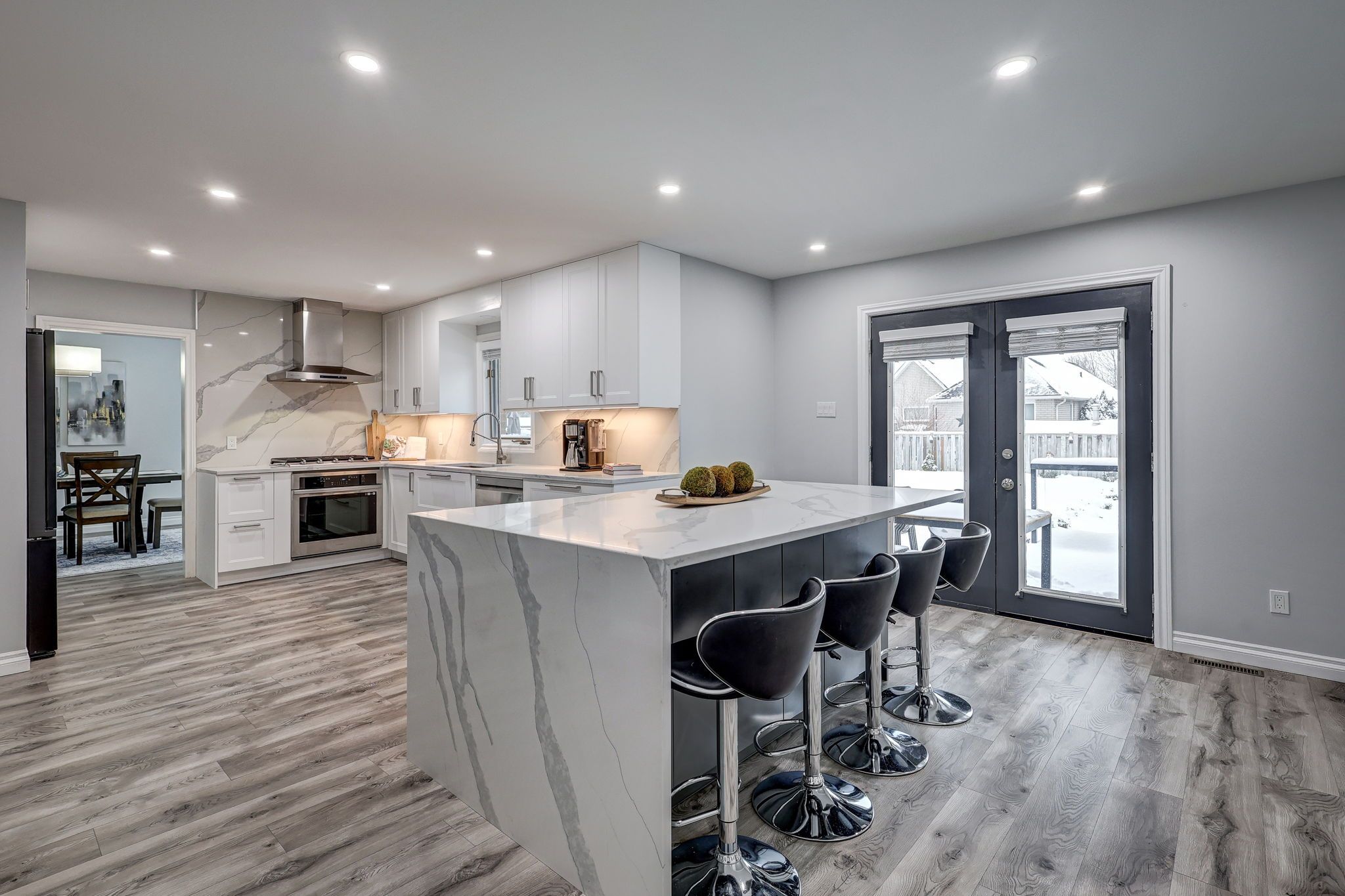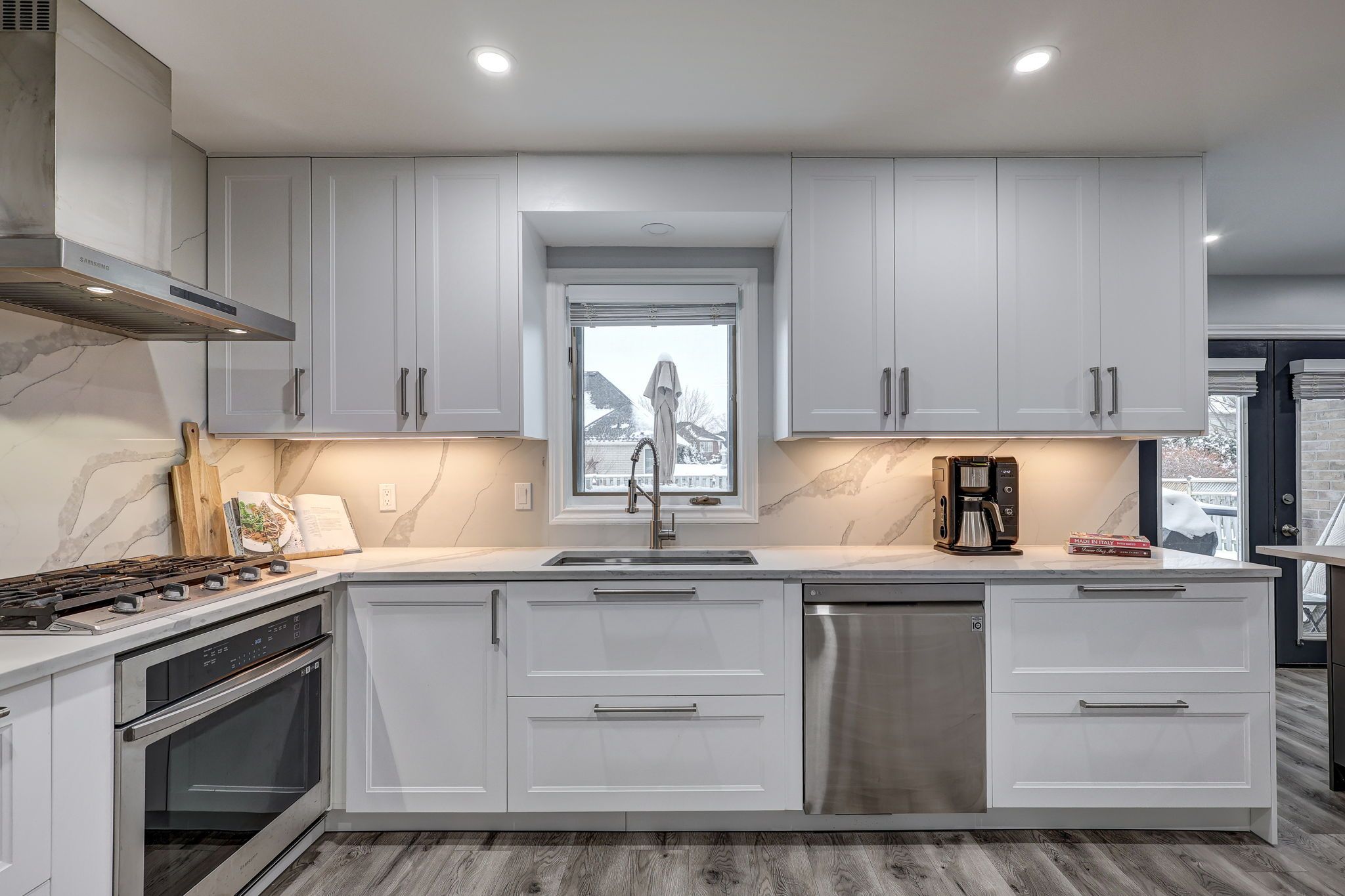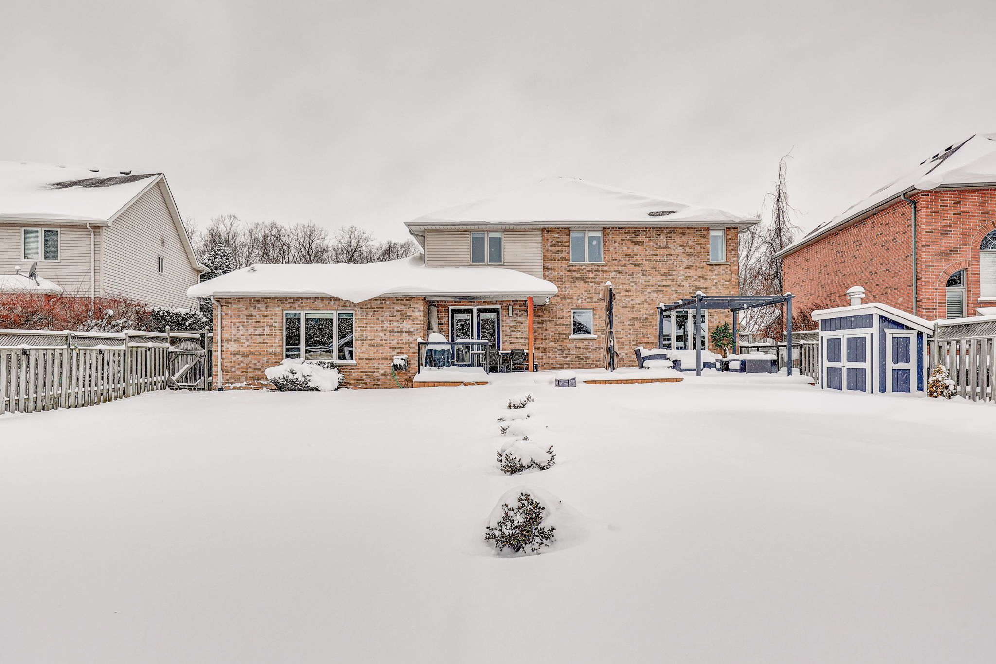 Where luxury meets lifestyle: gourmet kitchen, private office & resort-style backyard with heated pool. This 4-bedroom, 5-bathroom home has been thoughtfully designed for modern living and entertaining. At the front of the house, a perfectly positioned private office offers quiet and privacy-ideal for working from home or studying. The heart of the home is a gourmet chef's kitchen, complete with a massive island, premium appliances, sleek quartz countertops, and custom built-ins-perfect for family meals or entertaining friends. The main floor is bright and inviting, featuring a vaulted ceiling in the family room, a cozy gas fireplace, a large walk-in pantry, and elegant built-ins. Retreat to the upgraded spa-like 5-piece ensuite, or enjoy one of the other beautifully renovated bathrooms, each designed with comfort and style in mind. Walk-in closets in most bedrooms add practical luxury throughout. There is no shortage of storage in this home! The fully finished lower level offers a separate entrance from the garage, a full kitchen, expansive family room with electric fireplace, a games area, exercise space, and a large cold cellar. This space can immediately function as an accessory unit or in-law suite, providing flexibility for multi-generational living, hosting guests, or generating rental income. Car enthusiasts and hobbyists will appreciate the oversized gas-heated garage with dedicated workshop space or storage for a boat or motorcycle. A private backyard oasis: tiered decks, bar area with built-in gas bbq, mini-fridge, stereo, heated inground pool, two storage sheds, lush gardens, and plenty of grassy space for play or relaxation. It's the ultimate setting for summer entertaining or quiet evenings at home. Additional updates include 50-year shingles (2016), upgraded r60 insulation (2019), furnace (2019), and central air (2020). Every detail has been thoughtfully maintained and upgraded, making this home truly move-in ready.