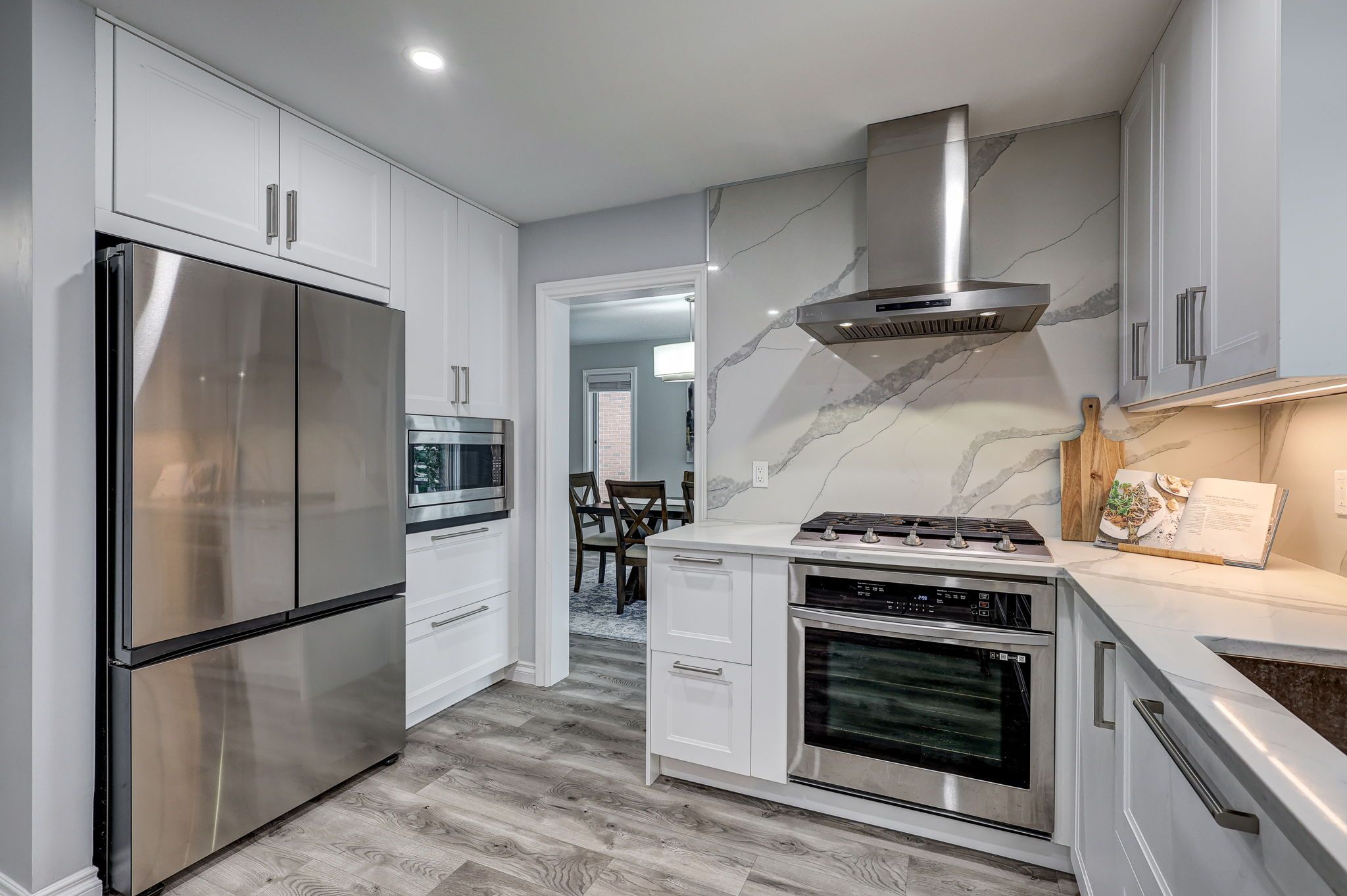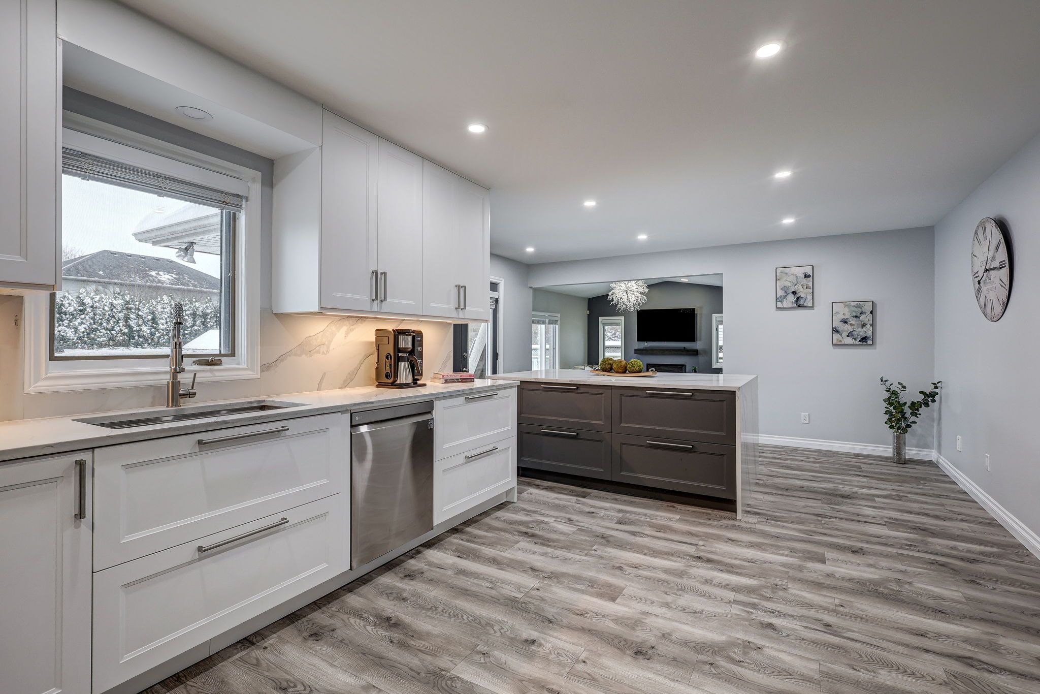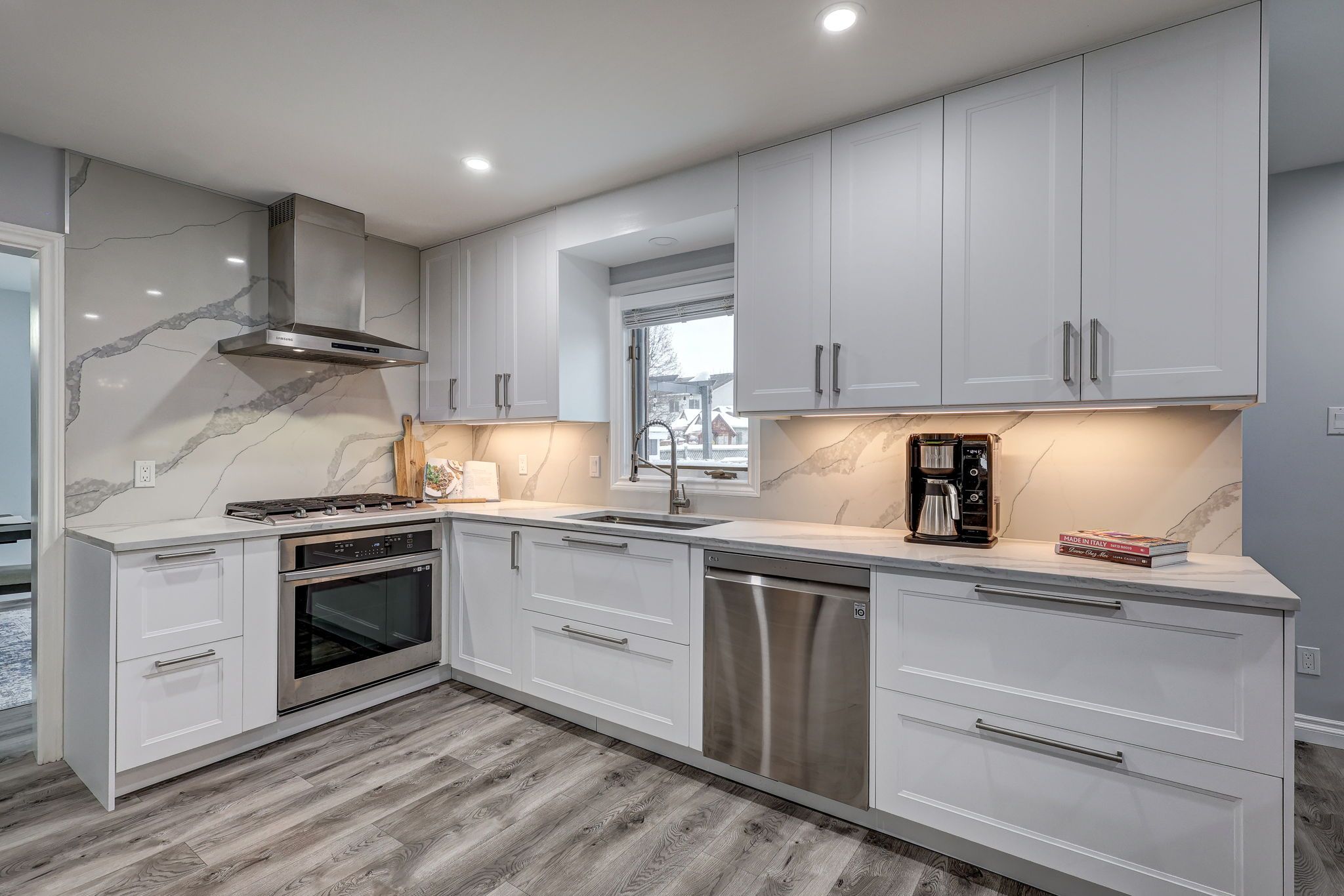 Where luxury meets lifestyle: gourmet kitchen, private office & resort-style backyard with heated pool. This 4-bedroom, 5-bathroom home has been thoughtfully designed for modern living and entertaining. At the front of the house, a perfectly positioned private office offers quiet and privacy-ideal for working from home or studying. The heart of the home is a gourmet chef's kitchen, complete with a massive island, premium appliances, sleek quartz countertops, and custom built-ins-perfect for family meals or entertaining friends. The main floor is bright and inviting, featuring a vaulted ceiling in the family room, a cozy gas fireplace, a large walk-in pantry, and elegant built-ins. Retreat to the upgraded spa-like 5-piece ensuite, or enjoy one of the other beautifully renovated bathrooms, each designed with comfort and style in mind. Walk-in closets in most bedrooms add practical luxury throughout. There is no shortage of storage in this home! The fully finished lower level offers a separate entrance from the garage, a full kitchen, expansive family room with electric fireplace, a games area, exercise space, and a large cold cellar. This space can immediately function as an accessory unit or in-law suite, providing flexibility for multi-generational living, hosting guests, or generating rental income. Car enthusiasts and hobbyists will appreciate the oversized gas-heated garage with dedicated workshop space or storage for a boat or motorcycle. A private backyard oasis: tiered decks, bar area with built-in gas bbq, mini-fridge, stereo, heated inground pool, two storage sheds, lush gardens, and plenty of grassy space for play or relaxation. It's the ultimate setting for summer entertaining or quiet evenings at home. Additional updates include 50-year shingles (2016), upgraded r60 insulation (2019), furnace (2019), and central air (2020). Every detail has been thoughtfully maintained and upgraded, making this home truly move-in ready.