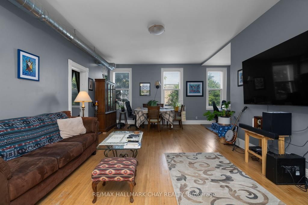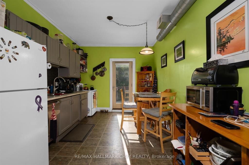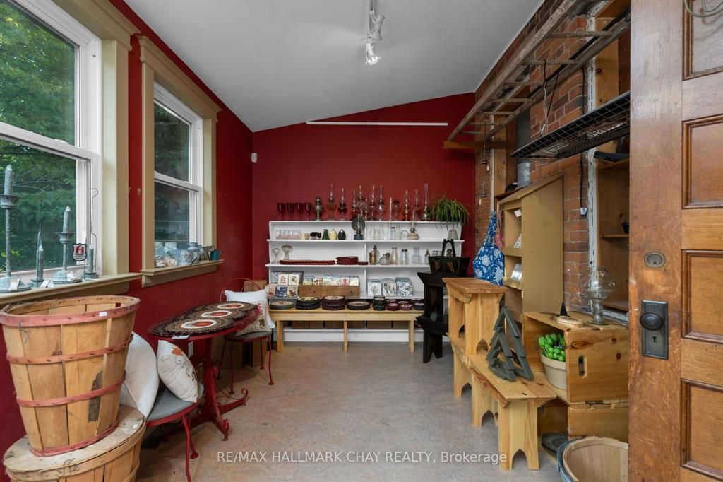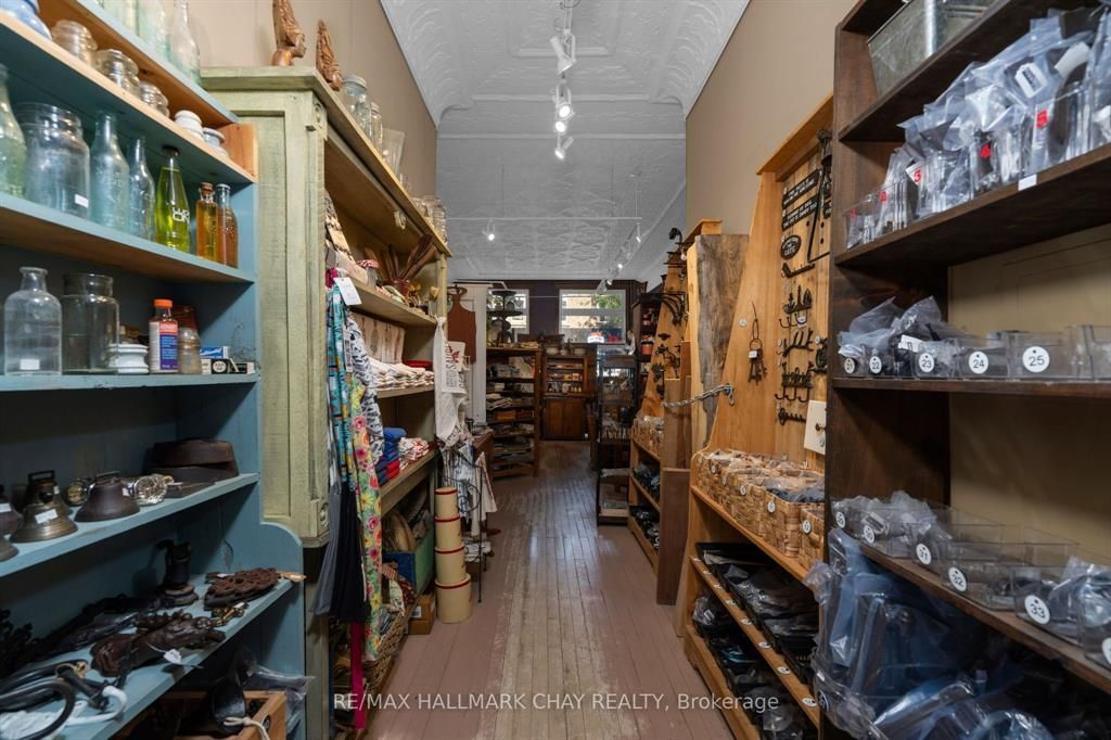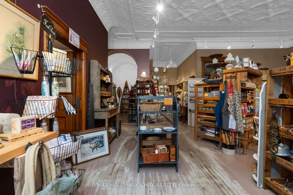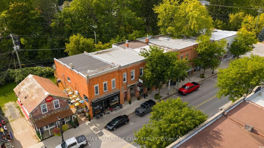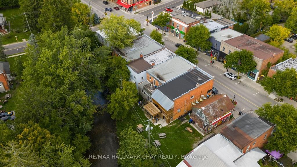 Century commercial building backing onto coldwater river in the business heart of the town of coldwater. Lots of character and charm in this building. This multi use building offers retail on the mail level and a 2 bedroom plus den apartment on upper. The main floor retail space has 12 foot ceilings and a sunroom addition with a walk out to the scenic river. There is also an unfinshed dry basement with a 2 pc bathroom and great storage. The upper apartment also has high ceiling, laundry in suite and a walk out to the deck from the kitchen. 2 a + tenants who would like to continue to rent. All appliances included. Separate meters and furnaces for both units.