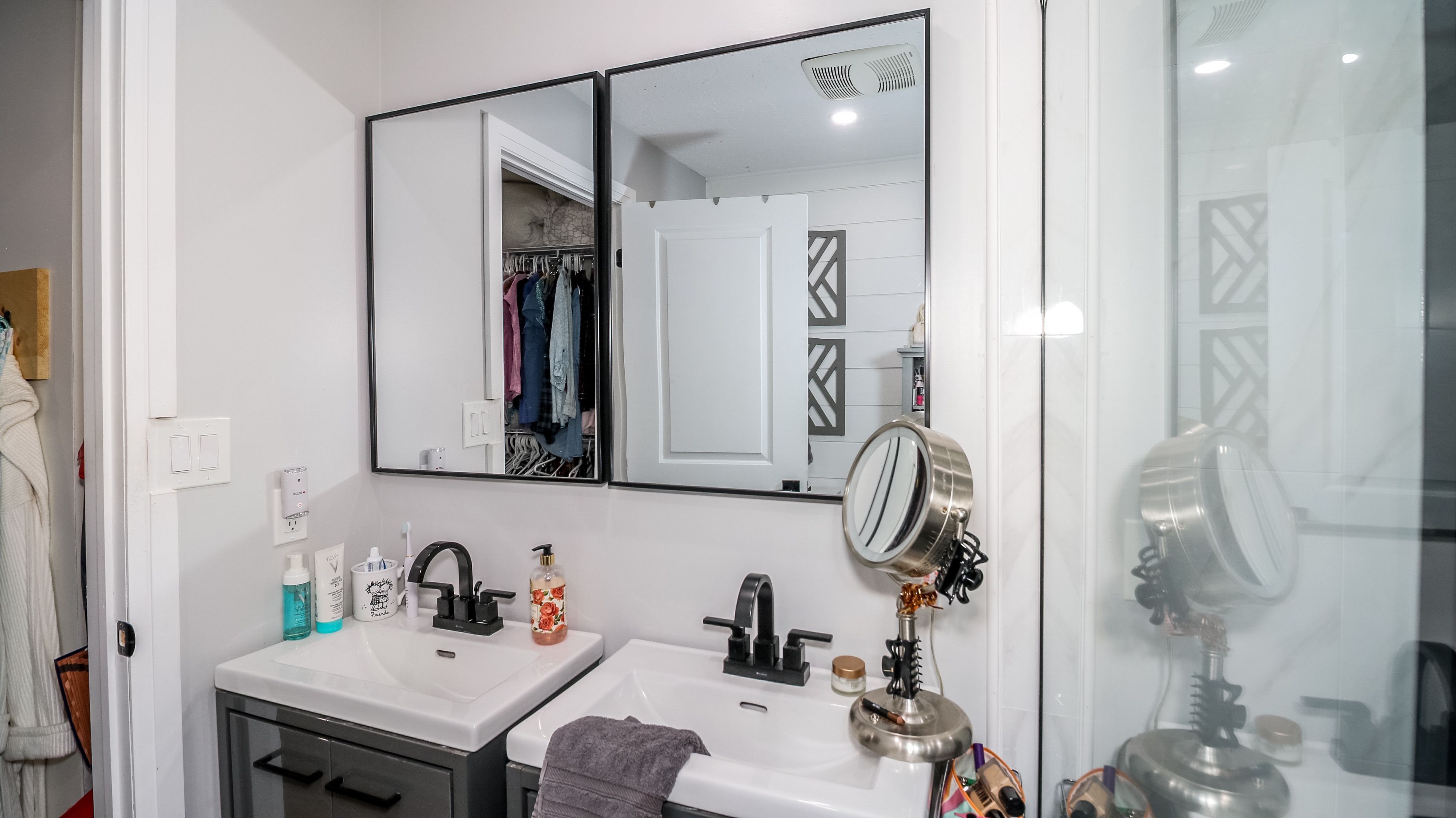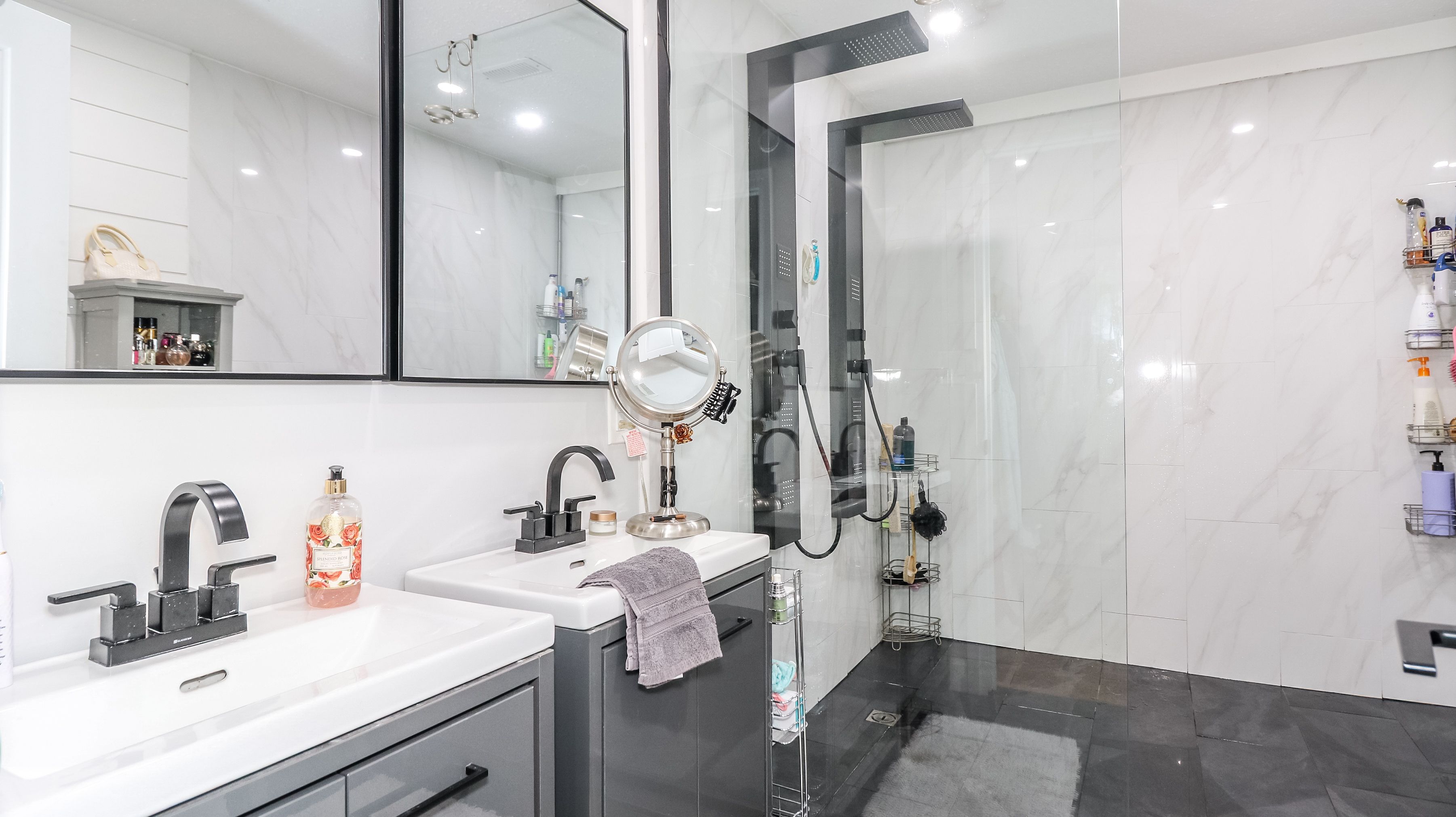 • Primary bedroom features a walk-in closet and ensuite bath with dual sinks.