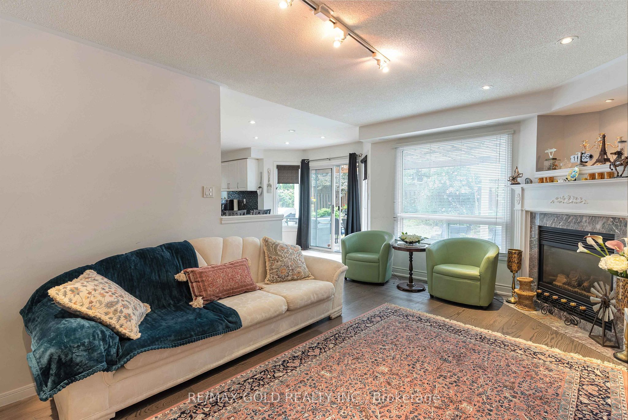 • Spacious family room with electric fireplace and elegant hardwood floors.