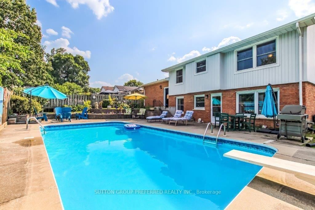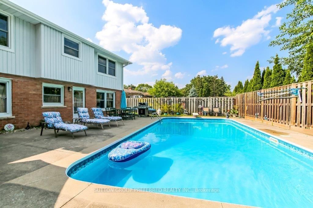 Prime central london location in lockwood park. Prime 66ft frontage, with privacy galore in your entertaining backyard oasis with 32 x 16 ft inground pool (heated) maintained by neighborhood pool and spa. Enjoy the bright updated kitchen with an eating area overlooking the spacious family room with a cozy gas fireplace (needs part to hook up). Enjoy the 4 spacious bedrooms, with a large 4-piece bathroom with a 2017 soaker tub. 3rd level walkout to pool, patios and fenced yard, with beautiful landscaping. 4th level rec room with newer flooring. 2 piece bath on 3rd level, 4th level laundry area and storage. All windows and doors were replaced in 2010. The pool liner in 2013, gas pool heater in 2021. Great schools and access to city buses. 6-car cement driveway with nice front entry porch. Walking distance to all major amenities if desired. Very quiet street location. All outdoor furniture included and all indoor appliances and central vacuum and all existing blinds