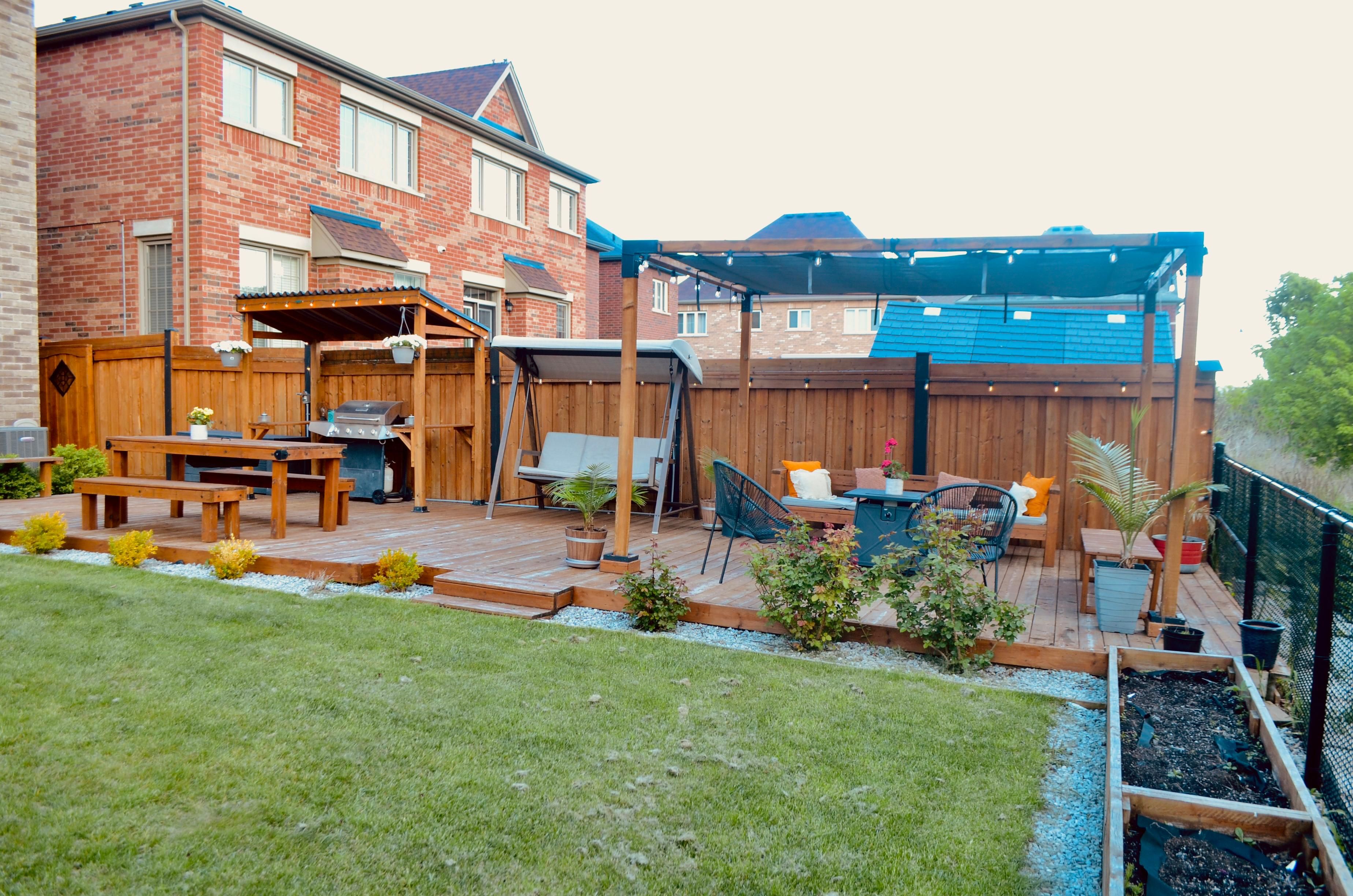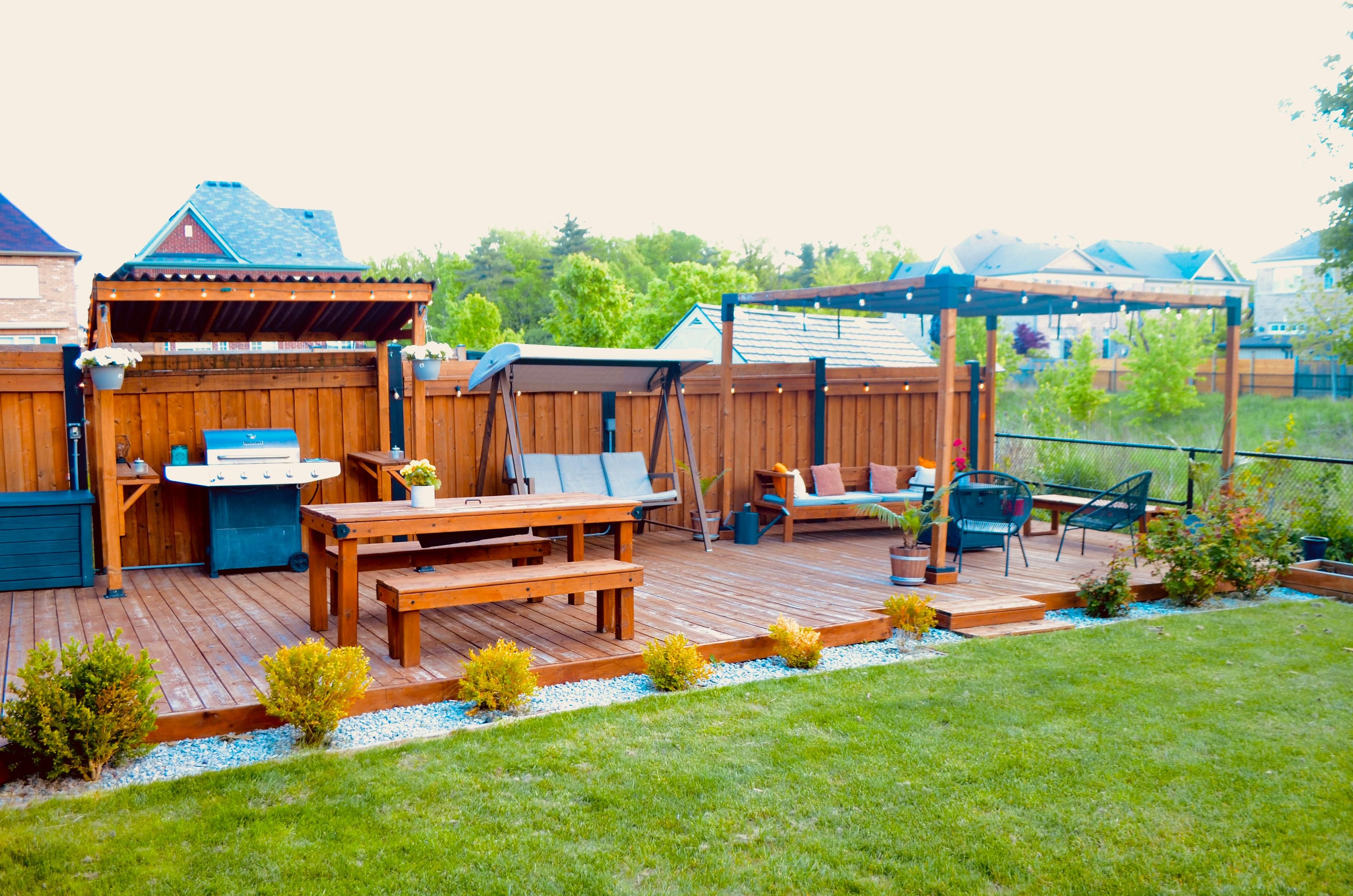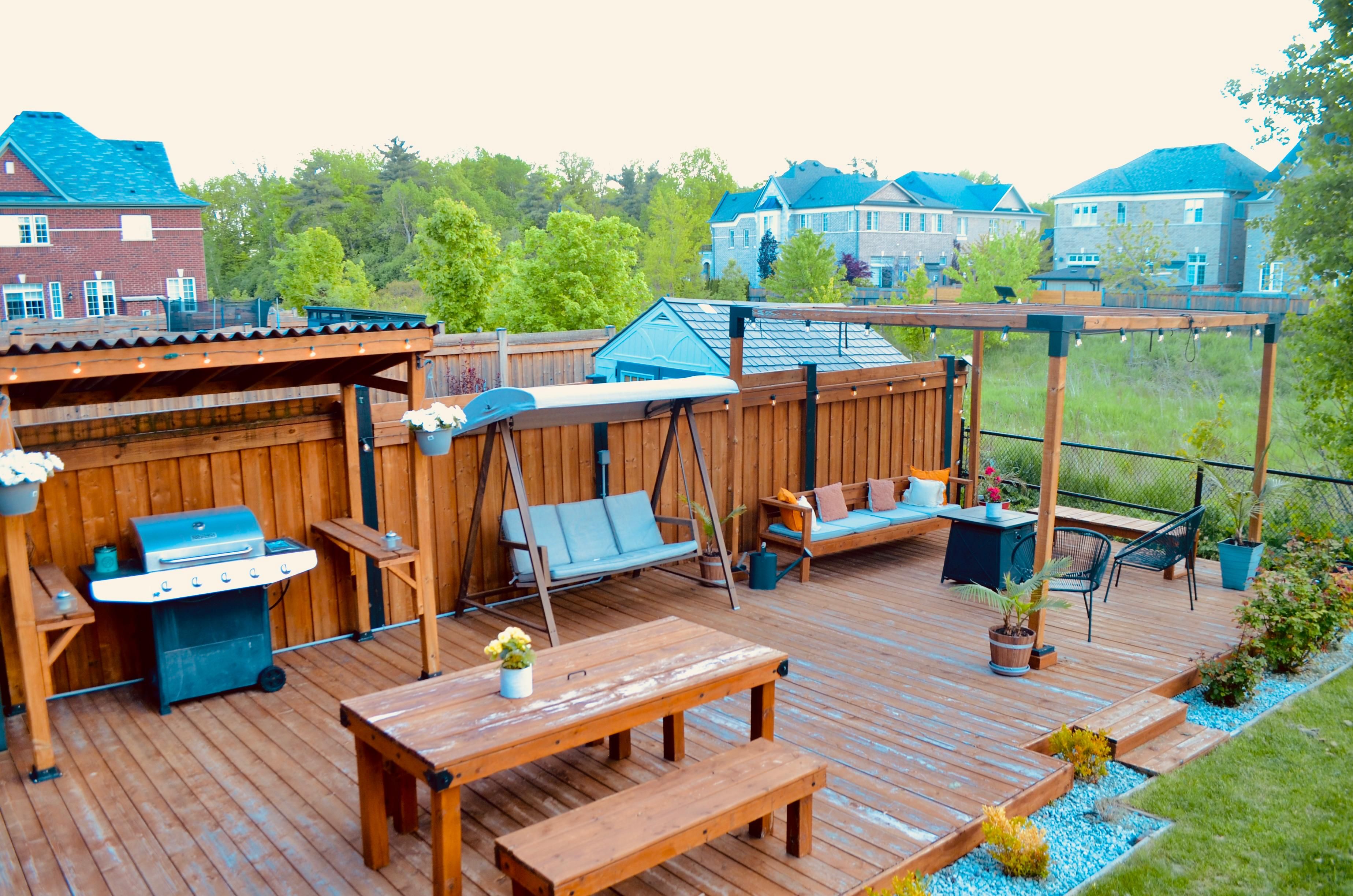 • Expansive deck with a pergola, ideal for hosting gatherings.