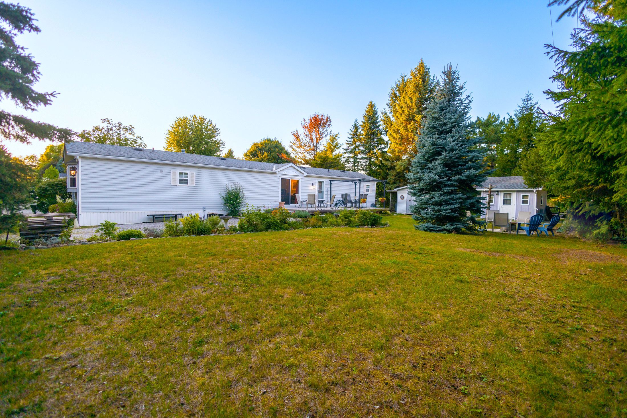 Grand bend's favorite lakefront land lease community | largest lot in turnbull's grove | excellent alternative to a much pricier freehold cottage | 4 season / year round home ideal for a family starter cottage or retirement pad! This 2 bedroom + bunky + 2 full bathroom winterized bungalow is tucked away in an extremely secluded & very private section of turnbull's grove south. You're still just steps to the turnbull's grove south fantastic private sandy beach; with your private beach access forever guaranteed by your ownership in this wonderful community; but this location, on the largest lot in the neighborhood at the end of the laneway, is second to none! The property provides ample parking with large yards on both sides of the home offering an abundance of space for gardening (w/ gardens included), recreation, your bunky guests, pets, storage, etc. This particular location makes this a very unique opportunity in this sought after land lease enclave on the lake, arguably, a once every 30 yr opportunity given how long the current owners have enjoyed this property. However, the value doesn't stop there - even over and above this top 10 location, you get a 4 season home that is rock solid! The open concept kitchen/living/dining area is in fantastic condition, along with the main level in-suite laundry, and the 2 large bedrooms including a master suite w/ a large ensuite bathroom, which is one of 2 bright & roomy full bathrooms. Generally speaking, from the roof and windows to the gas fueled forced air hvac & included appliances, everything is in great shape and has been updated in recent time, all ready to enjoy on day 1! And the best party, the full year resident monthly fees are only $385/month (includes lease, water, and community sewer fees) & taxes are only $632 per year! Come out and see why everyone is moving to turnbull's!