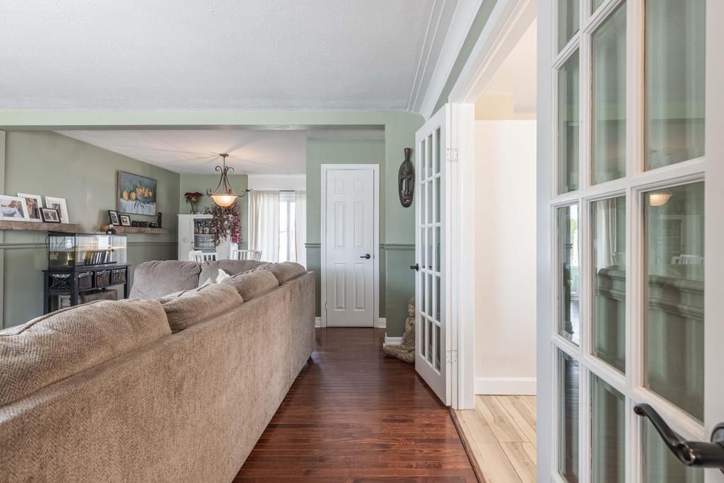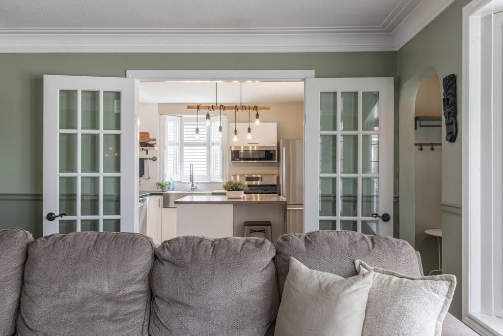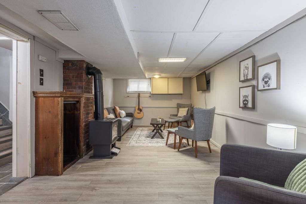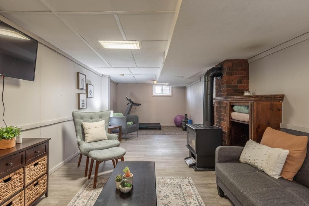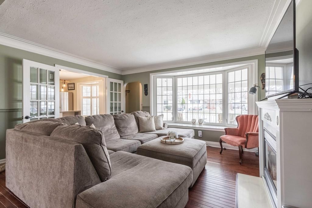 • Bright main floor with large windows and a cozy fireplace in the living room.