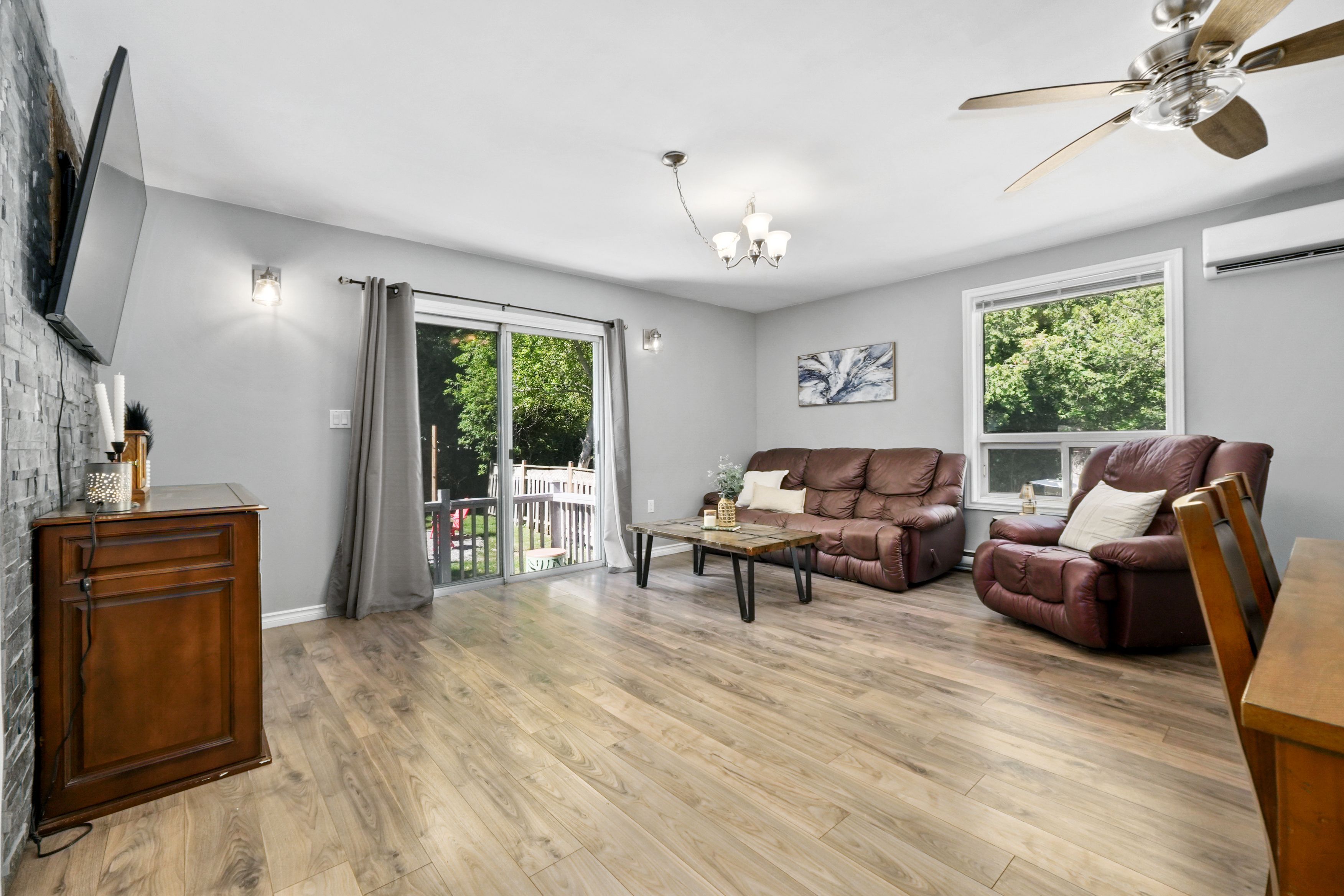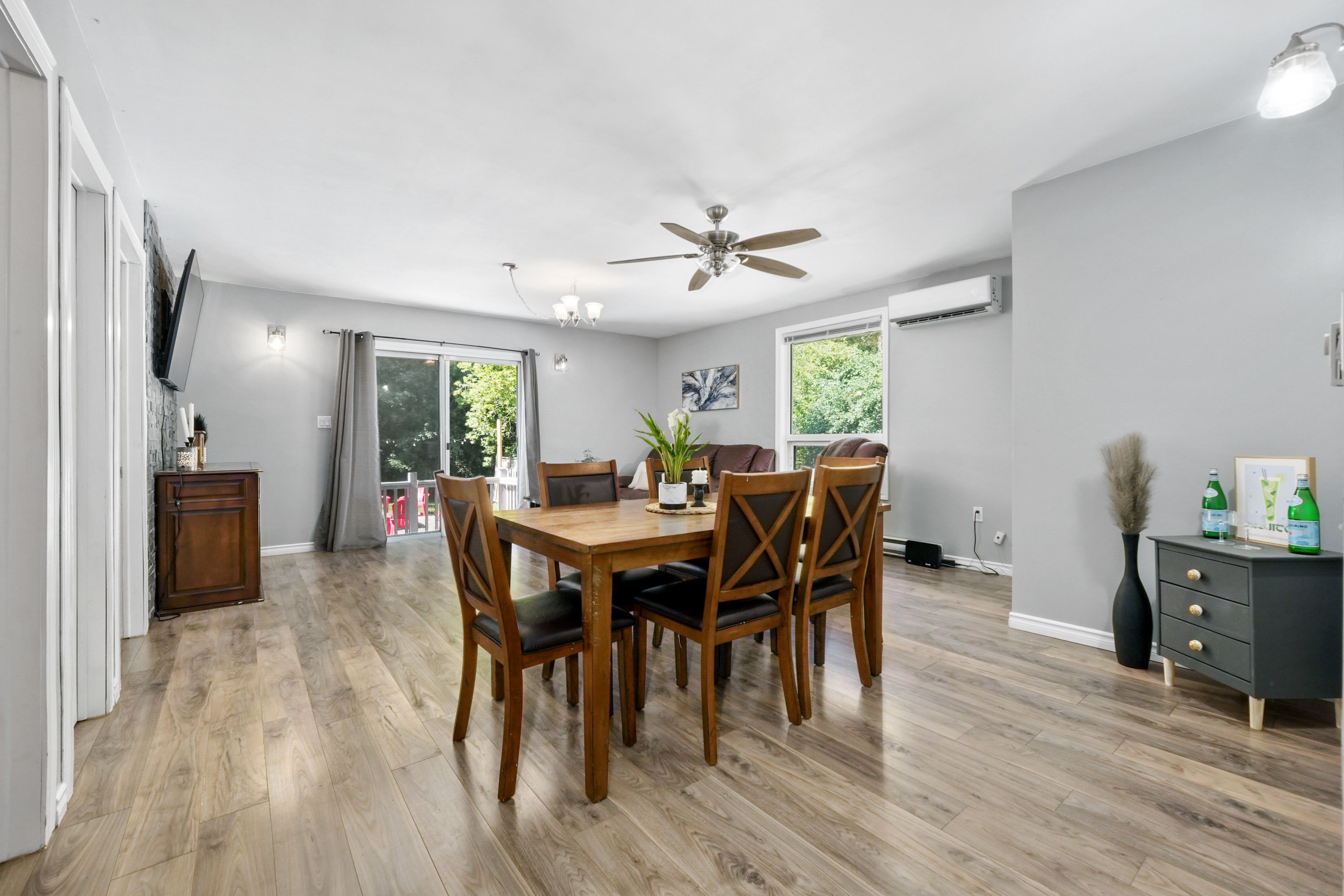• Open-concept living and dining areas with large windows and outdoor access.