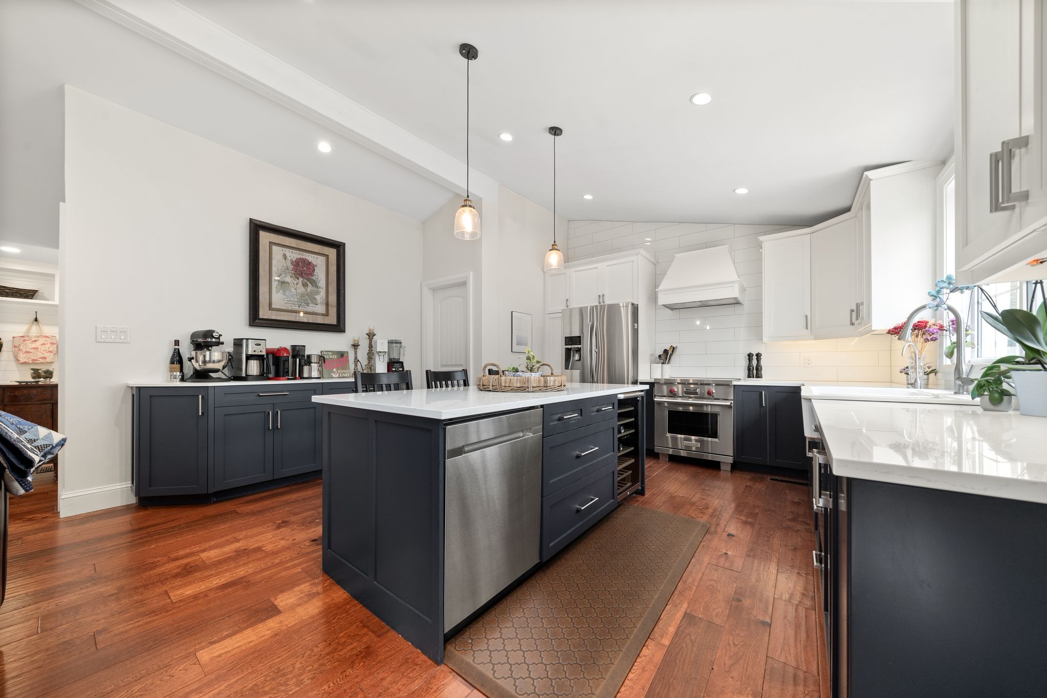 • Chef-inspired kitchen with quartz countertops and custom features.