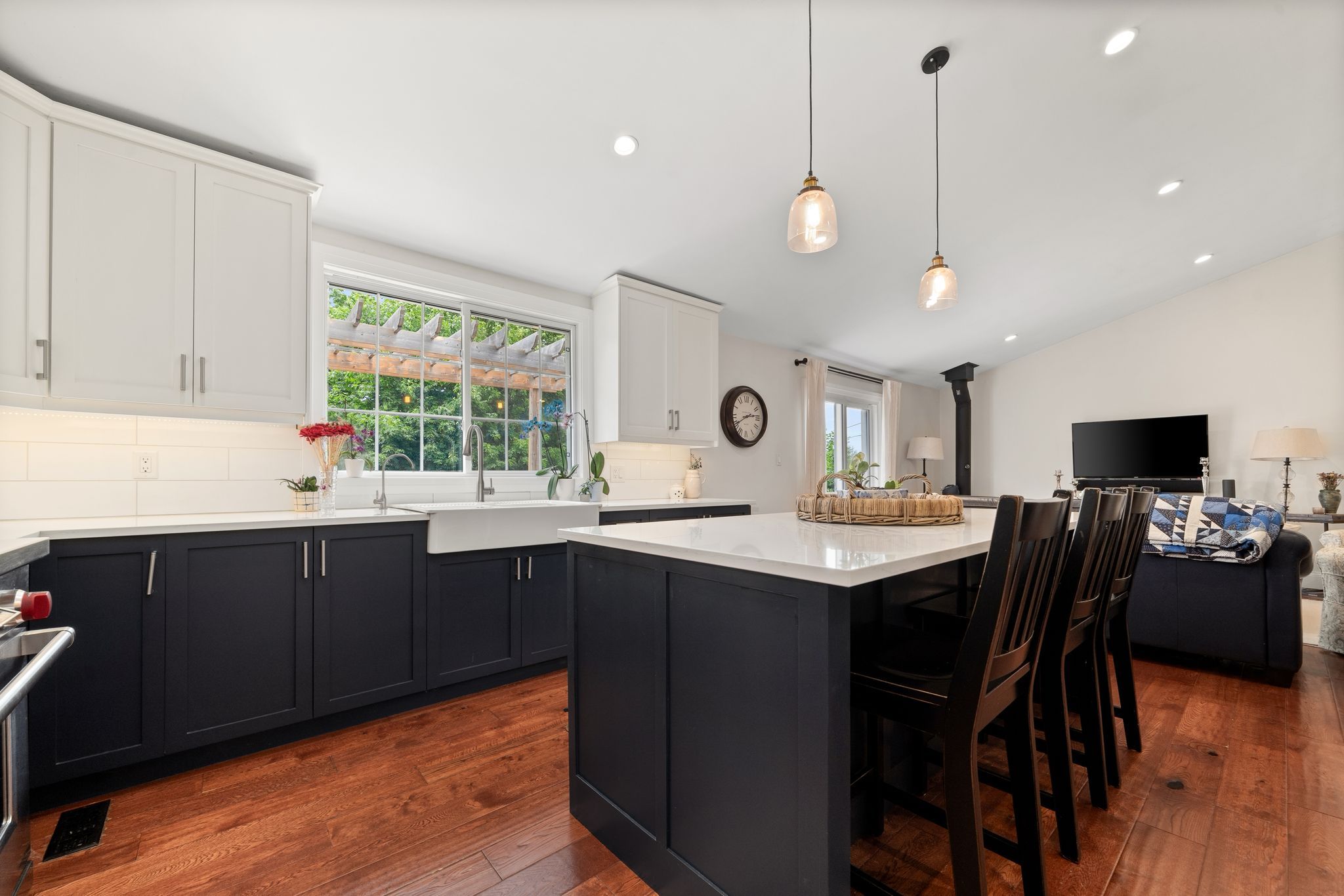 Country living with bay of quinte views - just minutes from belleville! Welcome to this beautifully renovated bungalow, ideally situated on a generous 0. 62-acre lot with picturesque views of the bay of quinte just across the road. Enjoy peaceful water vistas from the north-facing windows while being only 10 minutes from all the amenities of belleville. Step inside to a stunning open-concept great room featuring gleaming hardwood floors and a seamless flow into the dining area-perfect for entertaining. A large picture window fills the space with natural light and provides direct access to the private backyard, ideal for summer barbecues and outdoor gatherings. The cozy living room is anchored by a wett-certified wood stove and opens onto a deck where you can relax and take in the beautiful water views. The chef-inspired kitchen is a true standout, showcasing quartz countertops, a farmhouse sink, under-cabinet lighting, a pantry with convenient pull-out shelving, and a custom butler's servery-reflecting exceptional pride of ownership. The spacious primary suite features a large picture window, a stylish 3-piece ensuite, and an expansive walk-in closet with custom shelving. The fully finished walk-out basement offers a large rec room with built-in shelving and an electric fireplace, a finished laundry area, space for a home gym, and plenty of storage. Completing the property is a double-car garage with a 552 sq. Ft. Loft, offering incredible potential for a studio, guest suite, office, or additional fitness space. Move-in ready and thoughtfully renovated throughout, this home offers the perfect blend of country tranquility and convenient access to city amenities-all with beautiful views of the bay of quinte.