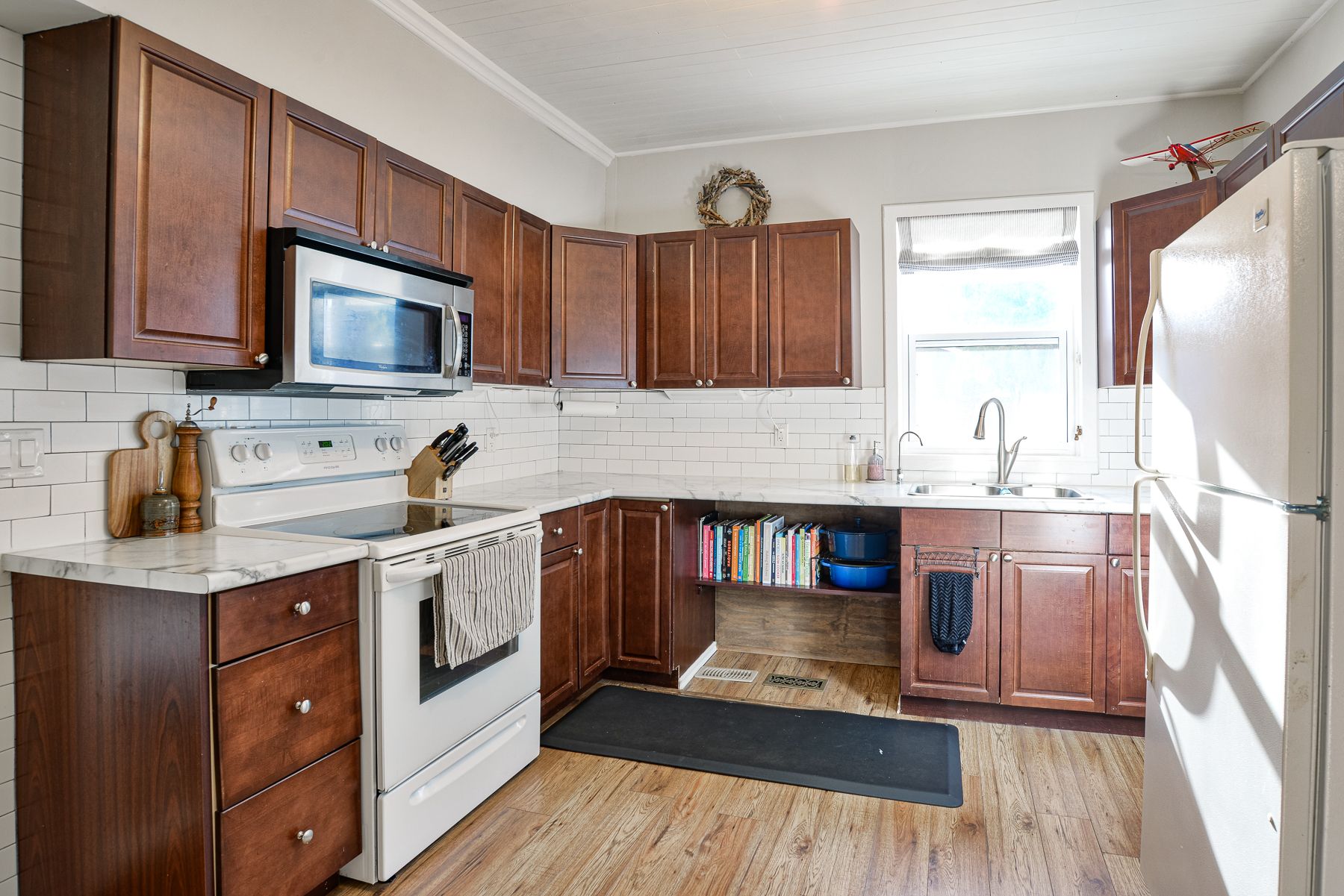 All the big-ticket items have already been taken care of in this move-in-ready one-and-a-half-storey, two-bedroom home. Enjoy peace of mind with new windows and doors, complete with a transferable lifetime warranty. A new furnace with remote monitoring, an updated bathroom, a recycled asphalt driveway, and a 2019 electrical upgrade further add to the value. Offering the convenience of main floor living, this home also features a full unfinished basement with easy exterior access - an ideal setup for a workshop or abundant storage. Tucked away on a quiet dead-end street, this hidden gem is just minutes from downtown shopping and amenities. The beautifully landscaped yard, set well back from the road, offers exceptional privacy and plenty of parking.