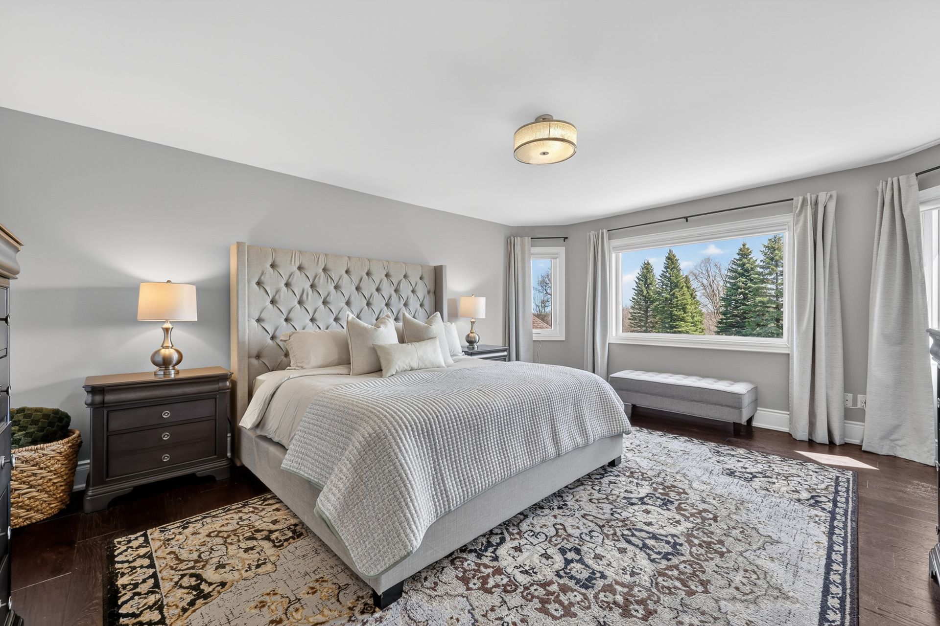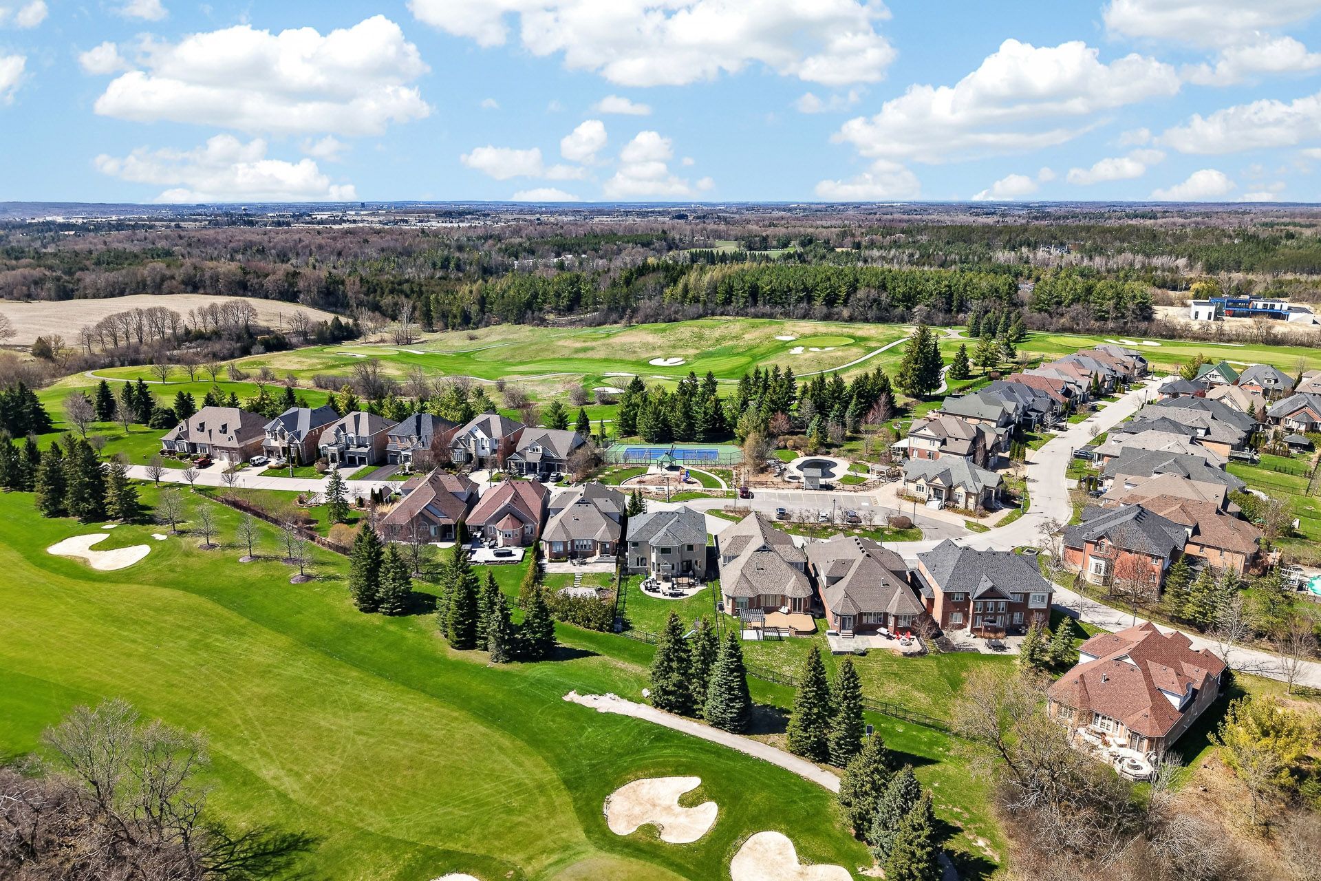 Experience luxurious upgrades and meticulous maintenance in this stylish two-story home, offering approx. 3,300sf of vacation living. Perfectly situated in a prestigious and safe gated enclave, this home offers breathtaking front and back golf course views of the desirable emerald hills golf course. It is conveniently located in a luscious country setting within minutes to hwy 404, bloomington go train station and all amenities. This upgraded residence features: 1. Renovated interior: new windows, a remodeled kitchen with a large island and an updated primary bathroom. 2. Thoughtful layout: a main floor office and laundry room, formal living and dining rooms, and a great room open to the kitchen. 3. Spacious bedrooms: four upstairs bedrooms, each featuring a walk-in closet and ensuite access. The primary suite offers a 5-piece ensuite, large walk-in closet and overlooks the golf course. 4. Key upgrades: new windows, a new back door, a composite back deck with glass railings, a whole-home generator, and professional landscaping. 5. Premium lot: parking for four cars on the extra long driveway and one of the best and largest community south facing lots with spectacular back and front views. 6. Vacation style amenities: residents and guests of this high-end gated community enjoy access to amenities at the community center, including an outdoor pool, hot tub, sauna, exercise room, party room, tennis courts, conference room and parkette. Welcome home to prestigious and safe, vacation style living! Please see attached floor plans and video of community and home.