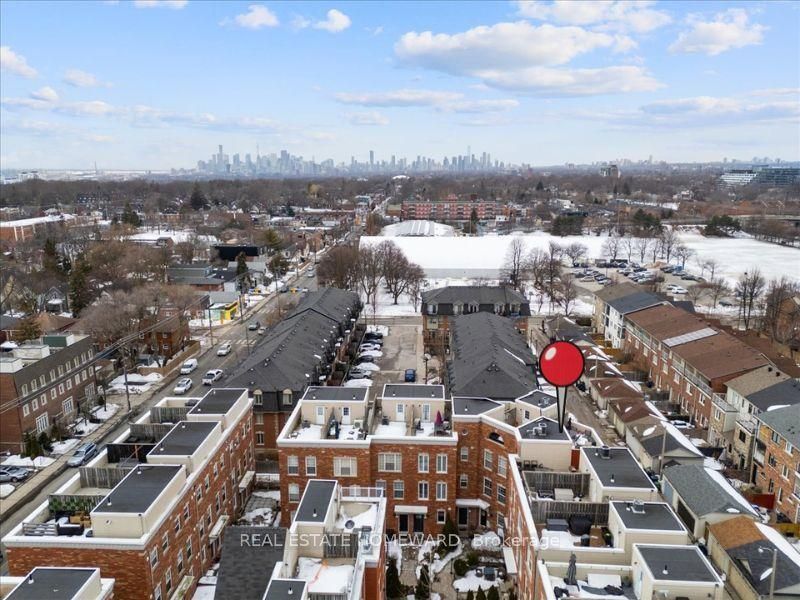 Welcome to 14 fairhead mews! Corner unit (making it one of the largest layouts in the complex) 3-storey townhome with a fabulous n/w facing roof top terrace perfect for family gatherings or quiet evenings enjoying the sunset. A unique, freshly painted, main floor layout with 9ft ceilings, a juliette balcony, an open kitchen with extra tall cabinets for additional storage and updated ss appliances. Second floor offers 2 generous sized rooms (freshly painted) and a bathroom with sep shower and tub. The 3rd floor primary oasis has walk-in closet, 2 windows for extra brightness, and a 5pc ensuite with his/hers sinks and separate tub and shower. Upper level offers a kitchenette with a beverage fridge and microwave making entertaining on the large open terrace more convenient. Direct access to your car (without having to go outside!) from the basement with garage door opener. And with no snow shovelling to worry about, this home has all the conveniences of a house, without the outdoor maintenance. Highly walkable area with a walking score of 81, walk to grocery stores, community centre, library, 5 min to the danforth go (which passes every 15 min in rush hour and gets you downtown in 15 min), 10min to main st subway station. Monthly fee of $367 includes snow removal, garbage/recycling, maintenance of common areas, and visitor parking. See virtual tour & floor plans for room measurements.