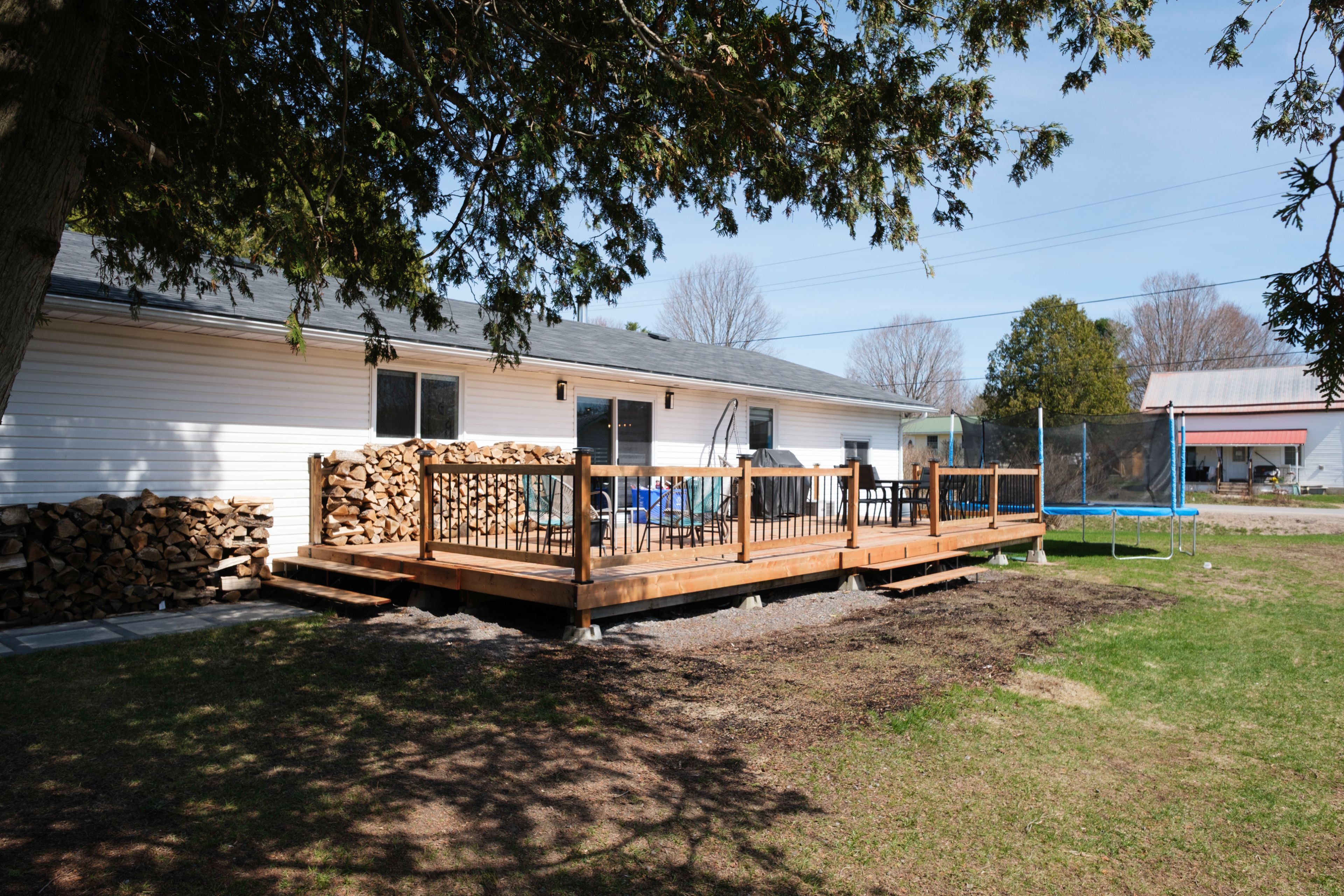 Spacious, updated bungalow located on a quiet street in the village of white lake. Bright open-concept layout featuring a modern kitchen with island and newer appliances, overlooking a large living/dining area with woodstove and access to rear deck. Main level offers 3 good-sized bedrooms, a full 4-piece bath, and convenient main floor laundry. Sunken rec room provides additional living space with walkout to its own deck, second full bath, and a 4th bedroom or office. Situated on a flat corner lot with an oversized detached garage offering ample storage and workshop space. Paved driveway with plenty of parking. Recent upgrades include kitchen, flooring, furnace, and septic system. Ideally located within walking distance to white lake amenities and just a 10-minute drive to hwy 417 and arnprior.