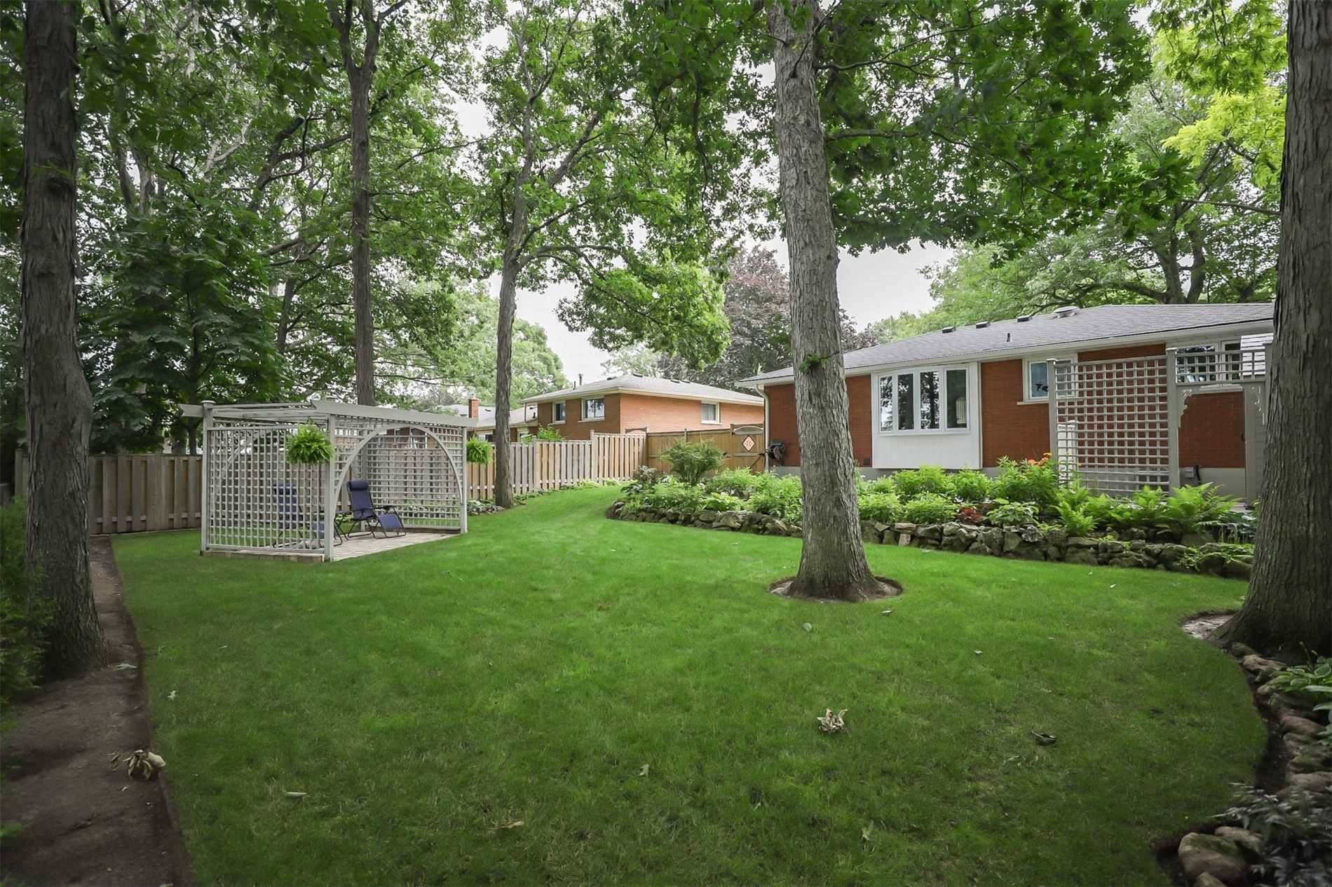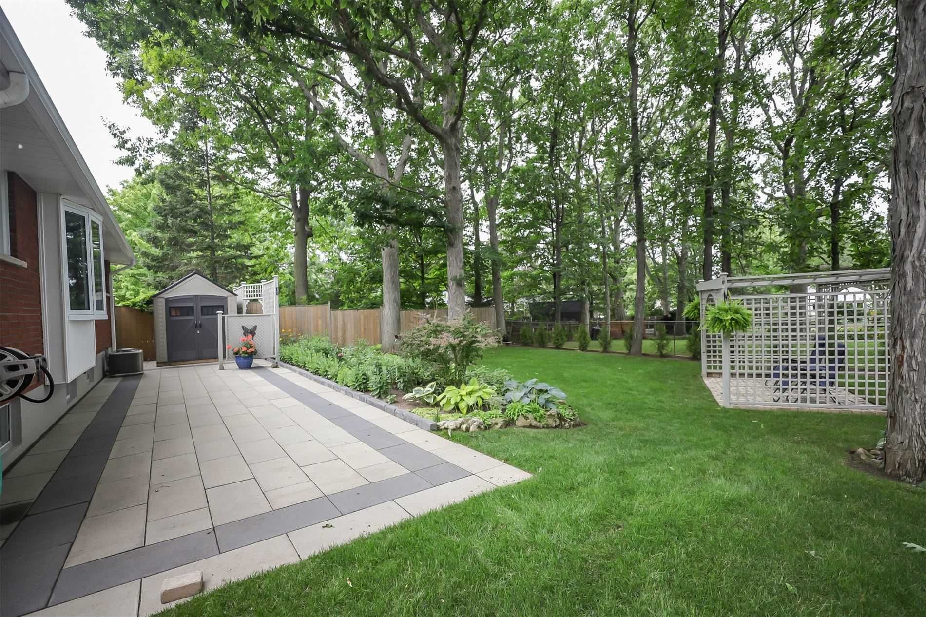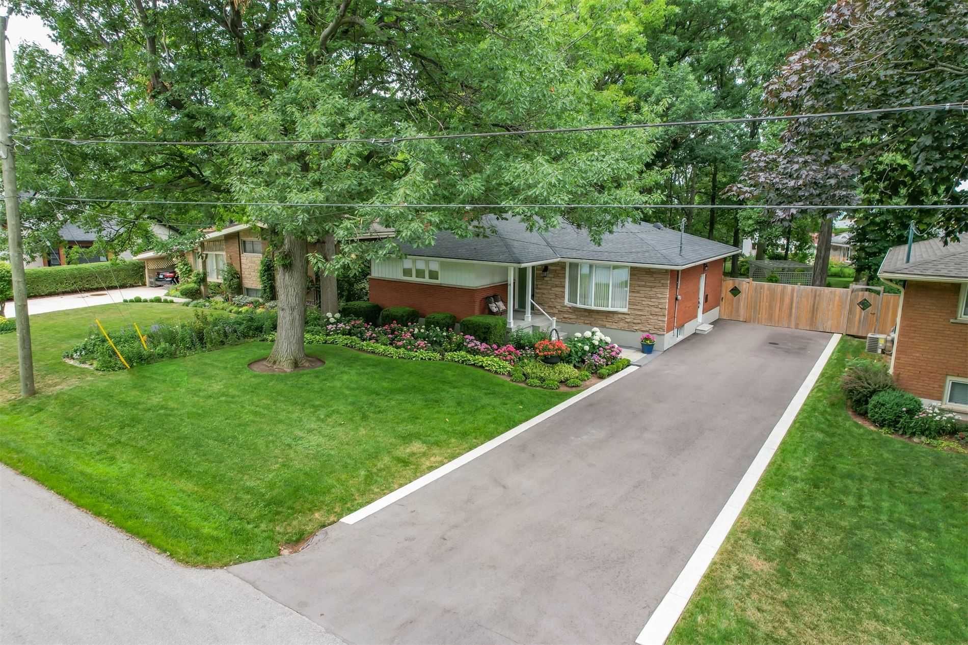 Fully finished bungalow in a park like setting. This 3 bedroom, 2 bathroom home offers approximately 1293 sq ft and sits on a quiet mature street. Bright living room with hardwood flooring flows into the dining area with an oversized bay window overlooking a landscaped backyard. Updated kitchen features porcelain tile flooring, granite countertops, stone backsplash and stainless steel appliances. Main floor includes a spacious primary bedroom with double closets, two additional bedrooms, a full bathroom and two linen closets. Finished lower level offers excellent entertainment space with a large recreation room, gas fireplace and additional bathroom. Parking for up to 6 vehicles. Convenient location only 2 minutes to the qew. Included. Built in dishwasher, stainless steel stove, stainless steel fridge, microwave, wall unit in living room, light fixtures, window coverings, bar stools, basement table and chairs, central vacuum with attachments, shed, washer and dryer, and bar fridge.