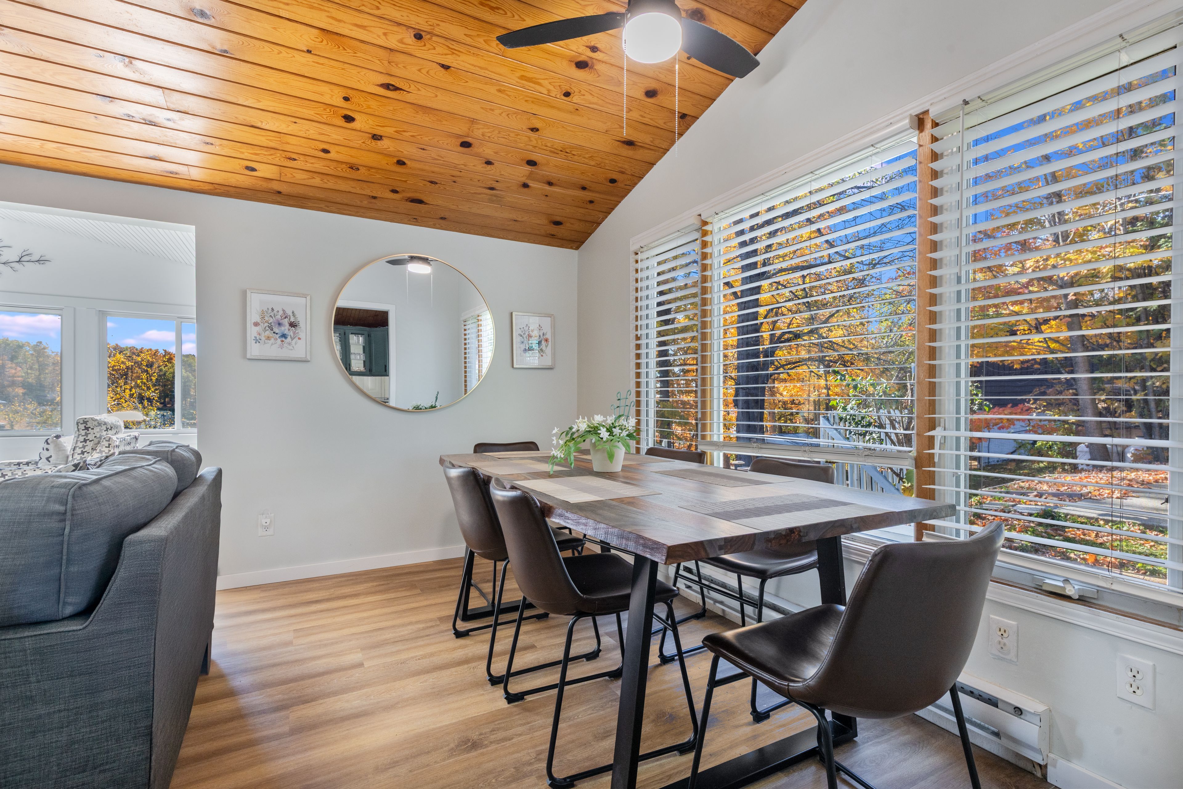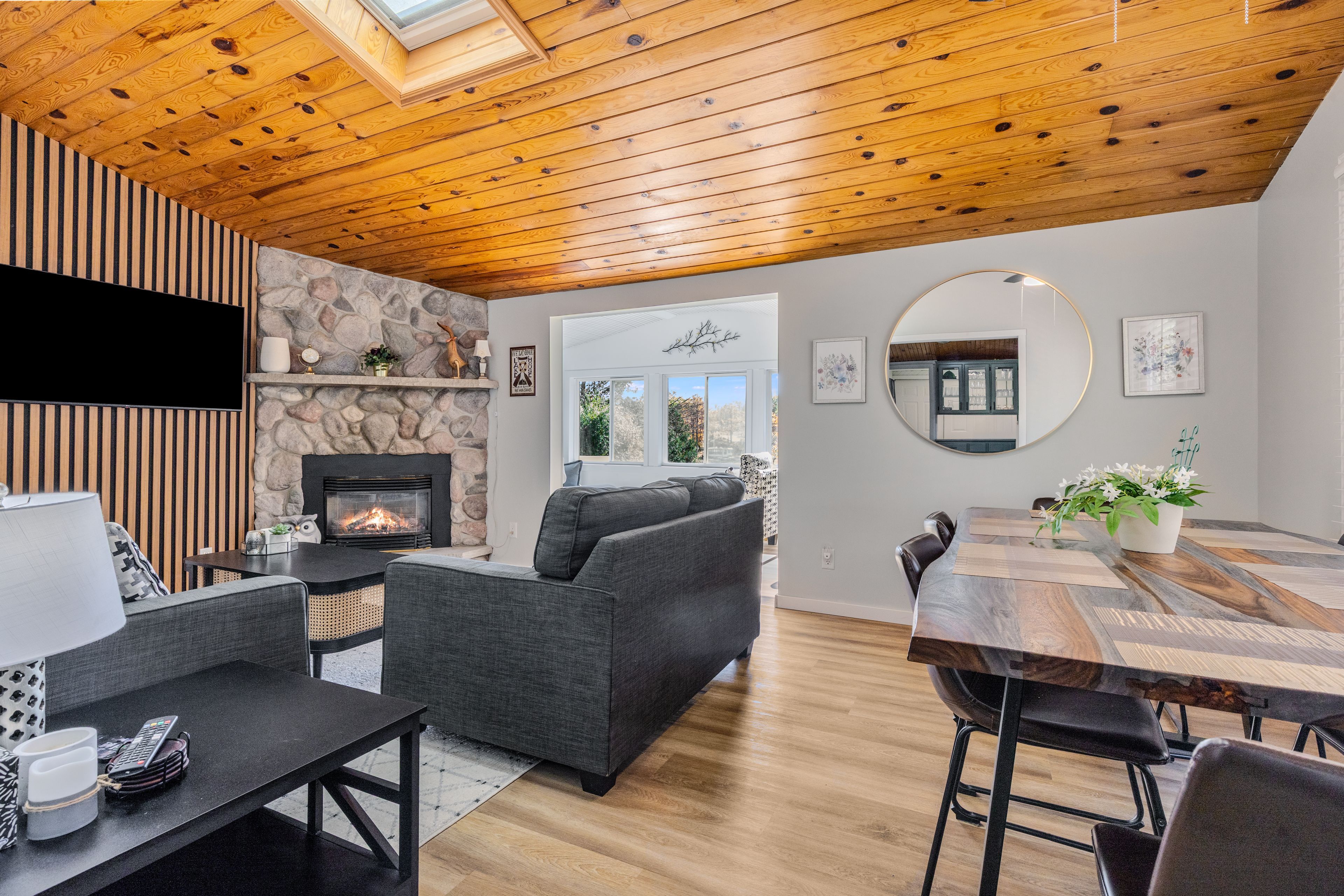 • Spacious living areas with a propane fireplace and a sunroom for seasonal views.