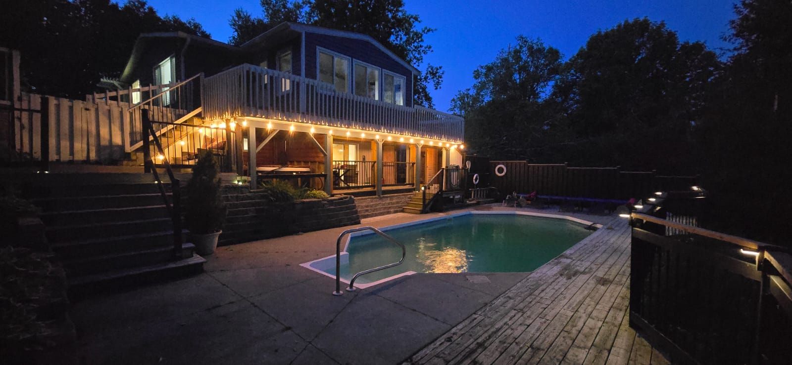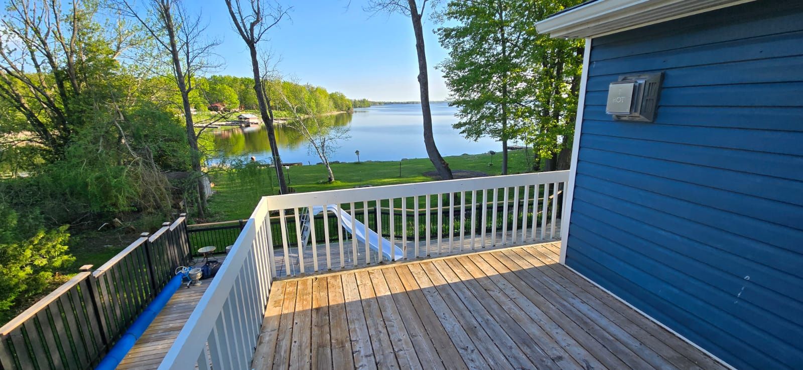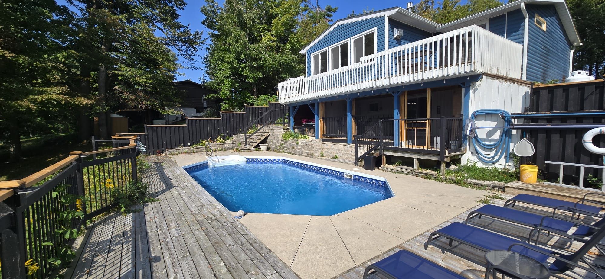 This charming bungalow is nestled on the shores of buckhorn lake in the serene waterfront community of beausoleil. It has 100 feet of waterfront with a fabulous south facing open lake view. This quaint two plus bedroom, one and half bath home features outstanding lake views and walk out to a balcony from the primary bedroom. The living room/dining room has a propane fireplace and a commanding lake view. The beautiful sunroom has a stunning lake view and is where you will spend hours watching the changing seasons on the lake. There is a door from the sunroom leading to the deck extending your living out of doors. The lower level offers a rec room, third bedroom, and a new 2 pc bath. There is a walkout to a covered and screened in patio that has a hot tub and sauna overlooking the lake for hours of enjoyment! Imagine relaxing in your hot tub while enjoying the view of the lake. There is a wonderful inground pool that overlooks the lake and is heated to extend your hours of enjoyment later in the season! The pool has had a new liner installed in 2025. There is a charming 2 bedroom bunkie which also has stunning lake views and has a door to the lakeside. It has been redone including all new insulation. This wonderful space is where your guests will want to stay. Two sheds and a large t-shaped dock complete this fabulous property! This wonderful property has had extensive renovations completed in 2025 including new forced air propane furnace and duct work, new central air conditioning, a new water system, new flooring throughout the upper level, bunkie completely redone, new pool liner and the home has been completely freshly painted. The land lease is $4,000. 00 + $2,130. 00 for police and fire service, garbage disposal and road maintenance. There is a one time $500. 00 owner transfer fee. There are no land taxes. New 35 year land lease available.