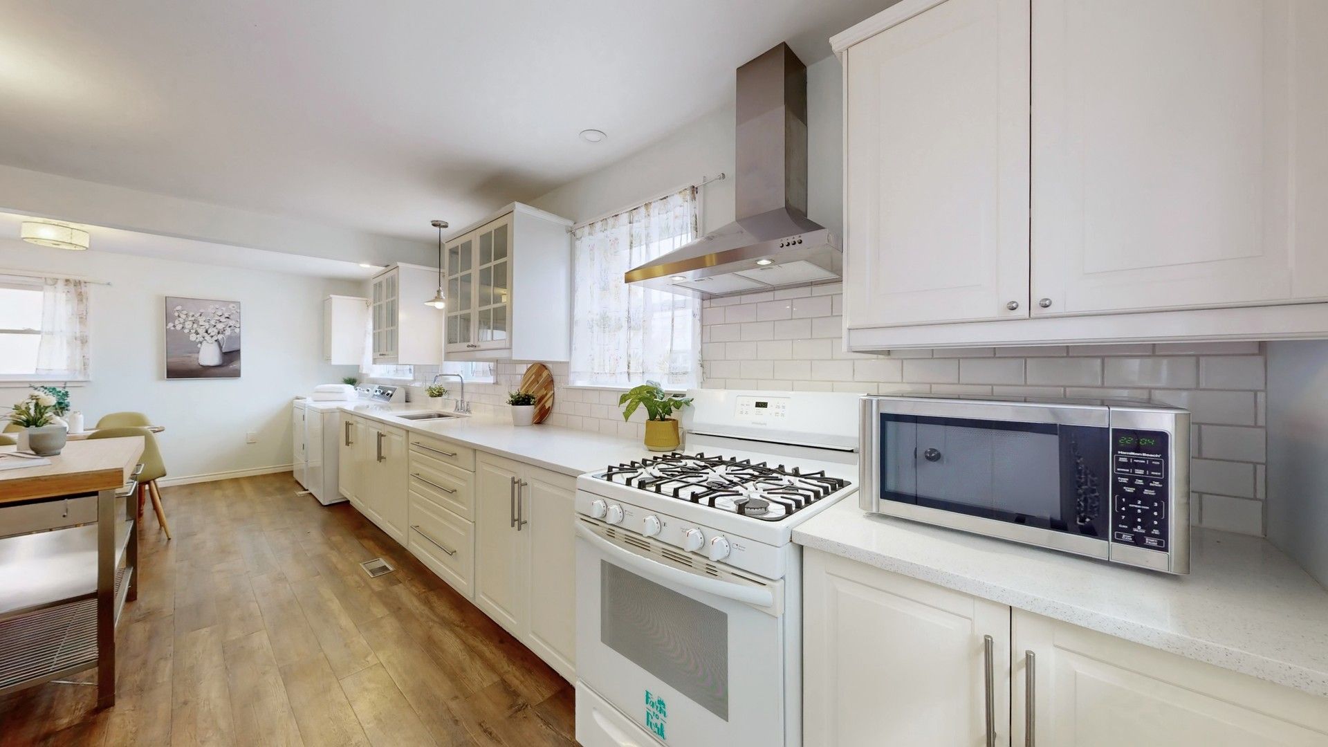 • Updated kitchen and bathrooms with modern conveniences and features.