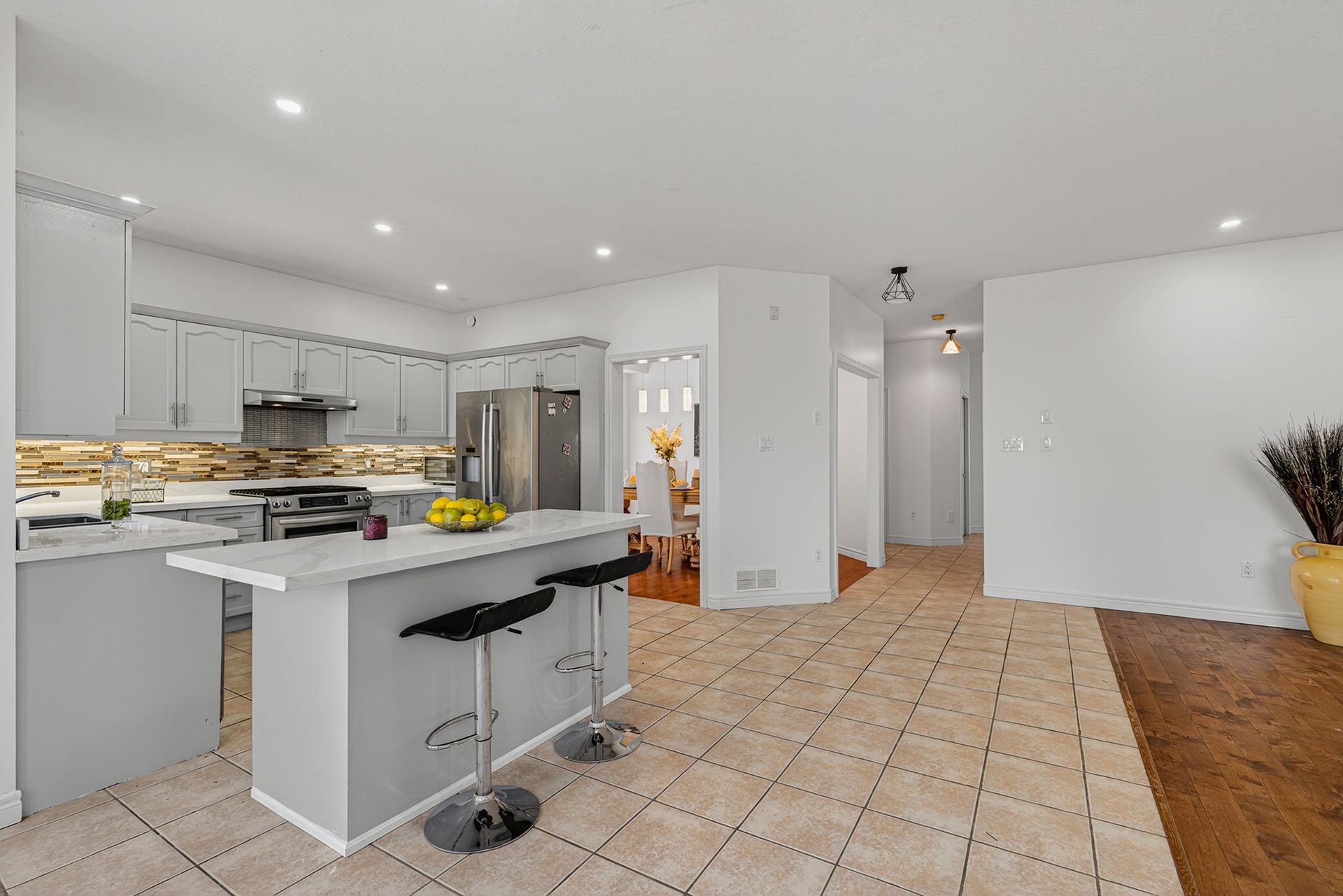 Welcome to 14 hearthbridge st, a truly exceptional two-storey home nestled in the highly sought-after doon/pioneer park area of kitchener. Situated on a quiet, family-friendly street just minutes from highway 401, this impressive residence offers the perfect blend of space, comfort, and convenience. Surrounded by scenic walking trails, schools, parks, and everyday amenities, this location is ideal for growing families and commuters alike, with easy access to nearby hubs like cambridge and waterloo. Boasting over 4,300 sq ft of finished living space, this beautifully upgraded home features 5+2 beds and 3 full baths, including a fully finished walkout basement with in-law suite potential. The striking double-door entry welcomes you into a bright and spacious interior, highlighted by 9-foot ceilings on the main level, rich hardwood flooring, hardwood stairs with contrasting spindles, and an eye-catching accent wall. The thoughtfully designed open-concept layout includes a formal living room, separate dining room, and a generous family room filled with natural light. The modern kitchen is both stylish and functional, offering quartz countertops, a centre island, and direct access to the deck, perfect for enjoying bbqs while taking in the serene views of the private green space and trail behind. Upstairs, you'll find five generously sized bedrooms, including a luxurious primary retreat complete with a 5-piece ensuite featuring a deep soaker tub and separate glass shower. The fully finished walkout basement adds incredible versatility, offering two additional bedrooms, a full kitchen, a 3-piece bathroom, a spacious living area, and ample storage, ideal for extended family or potential rental income. Additional highlights include, abundant natural light throughout, and a backyard that backs directly onto a beautiful green trail, providing both privacy and a peaceful setting.