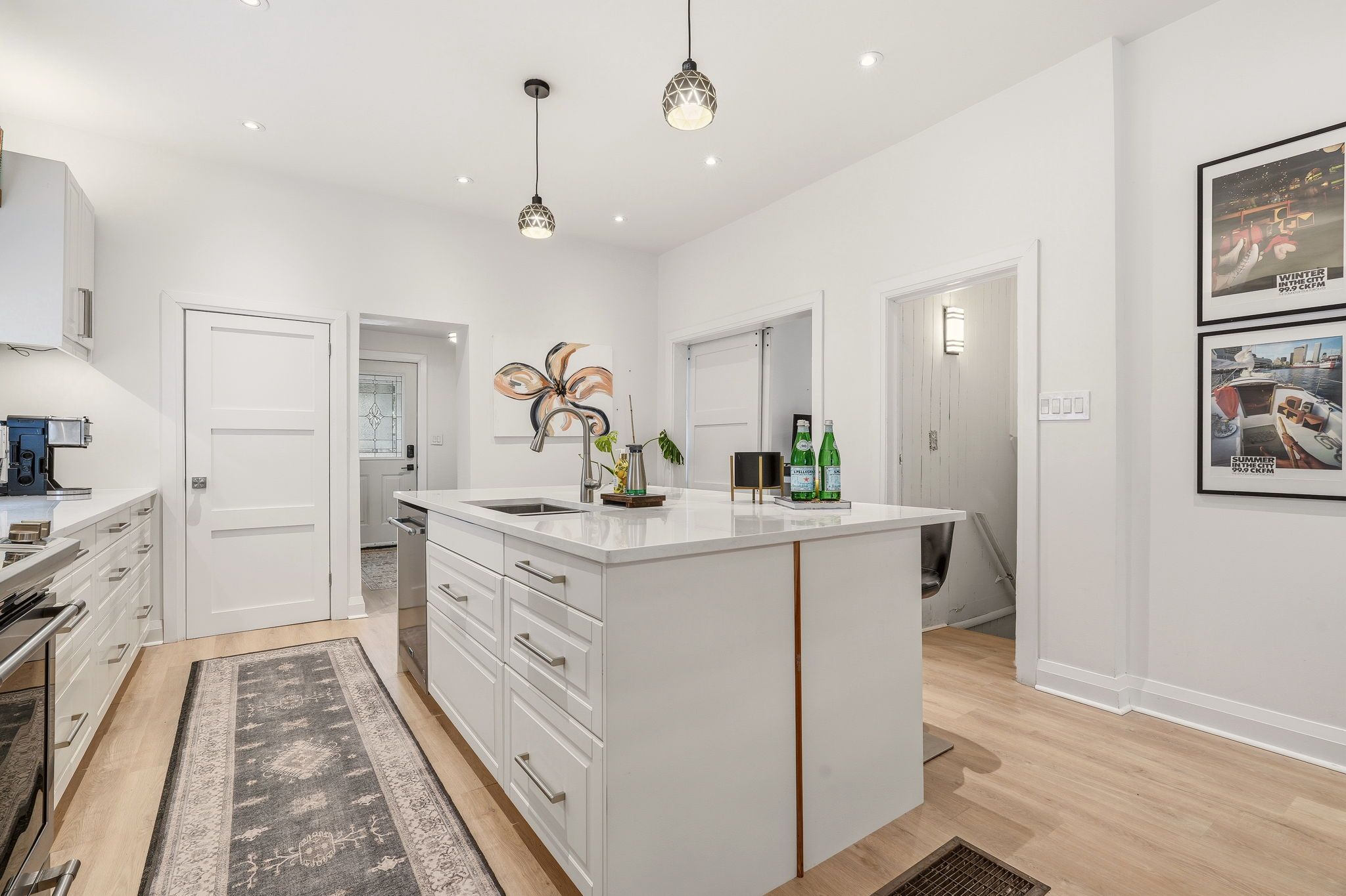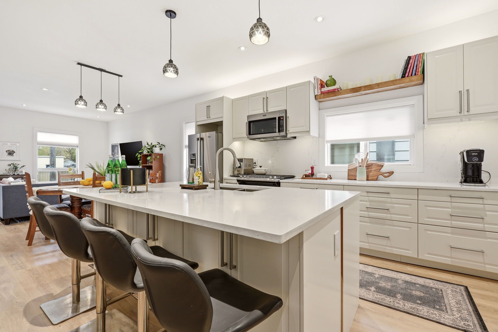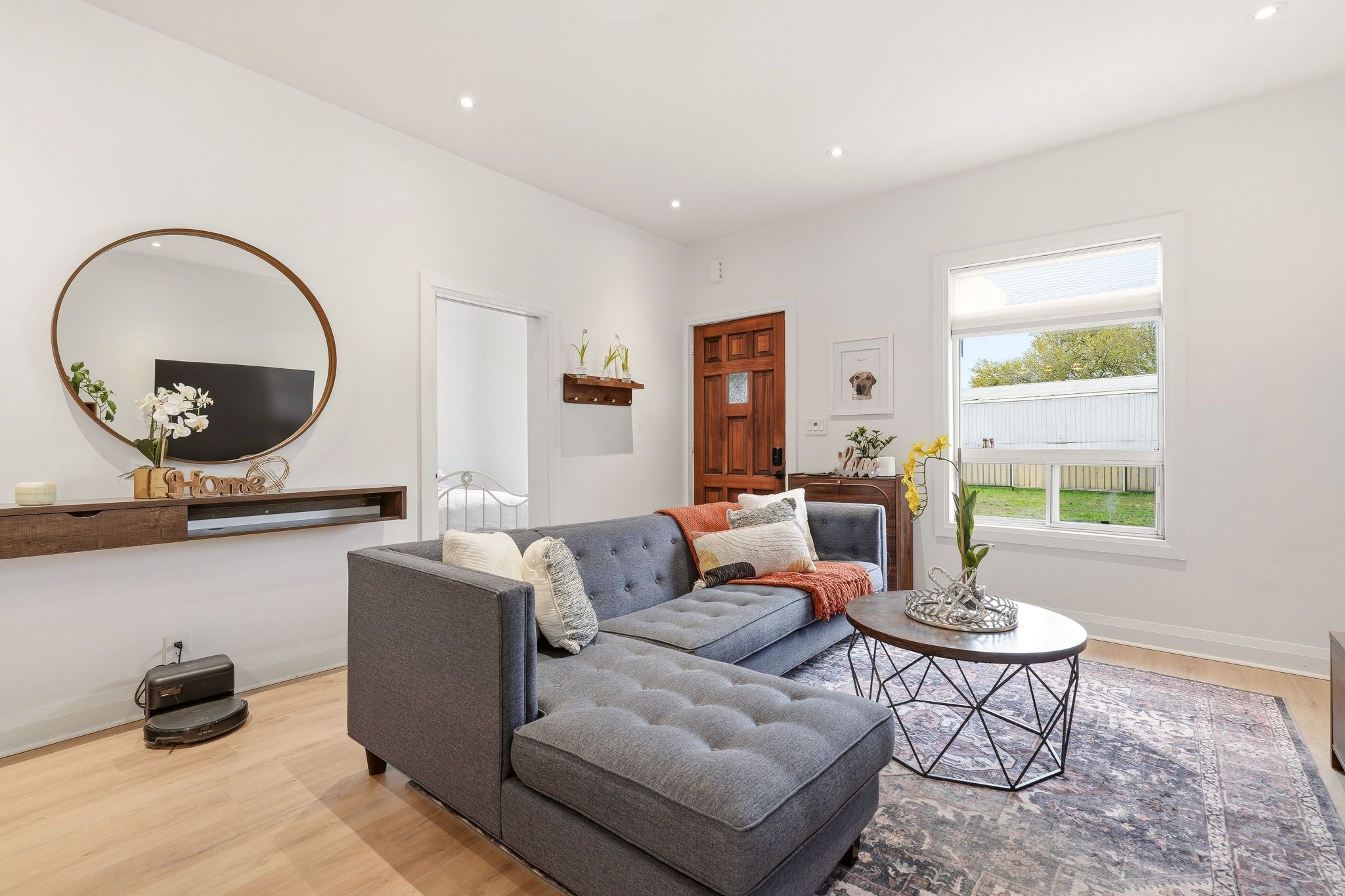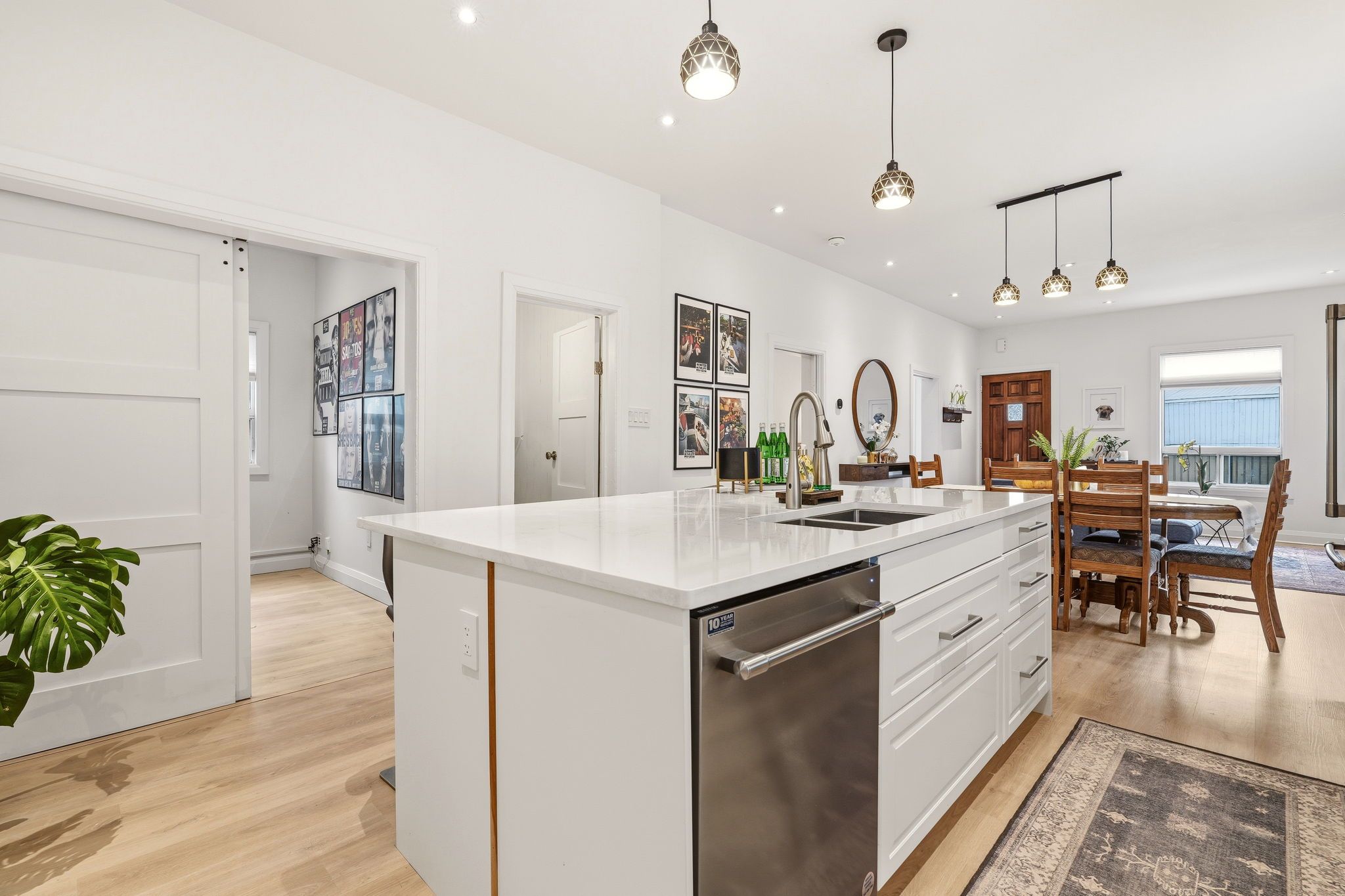 • Updated main floor with a modern kitchen and fresh vinyl flooring.