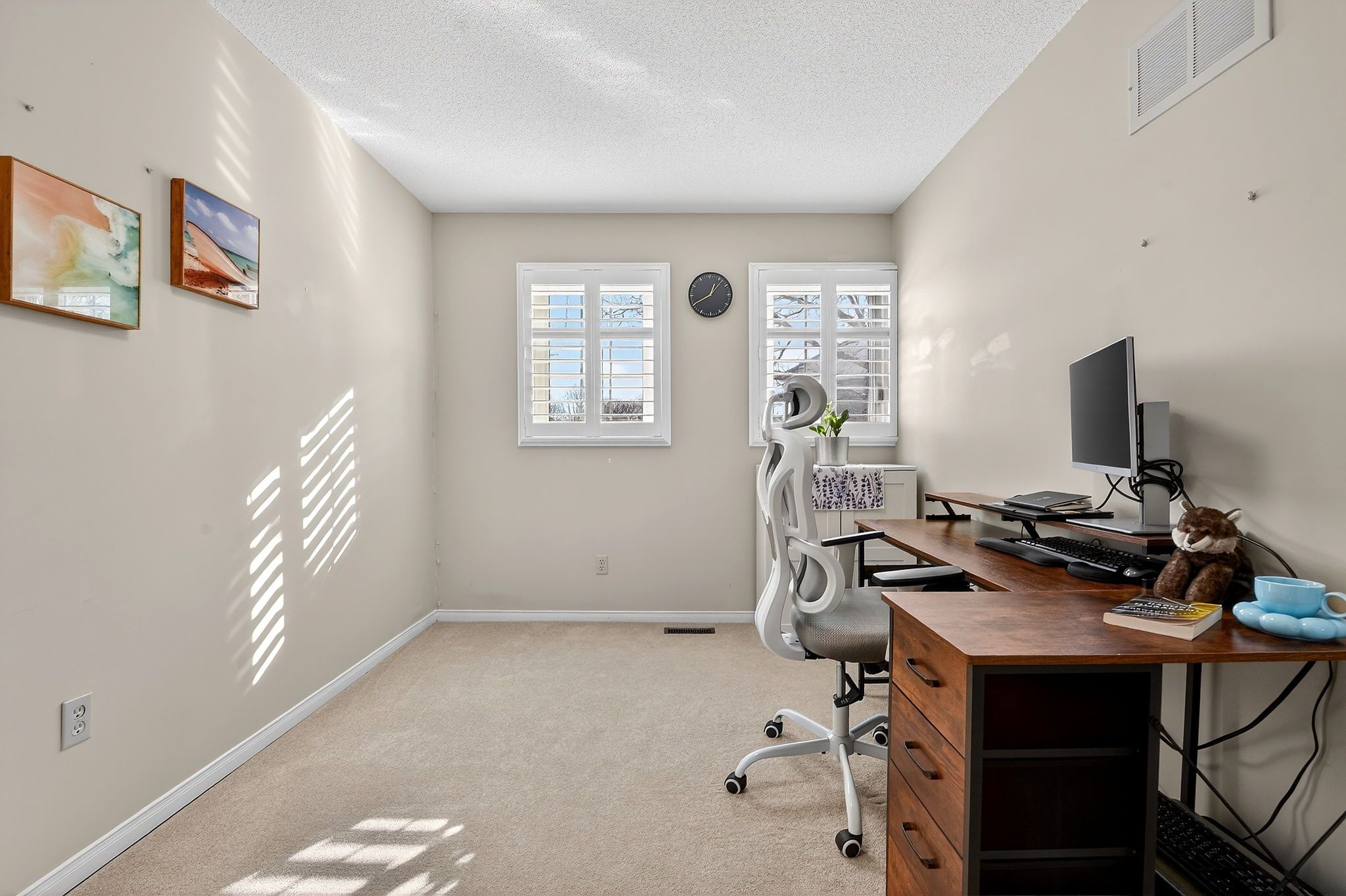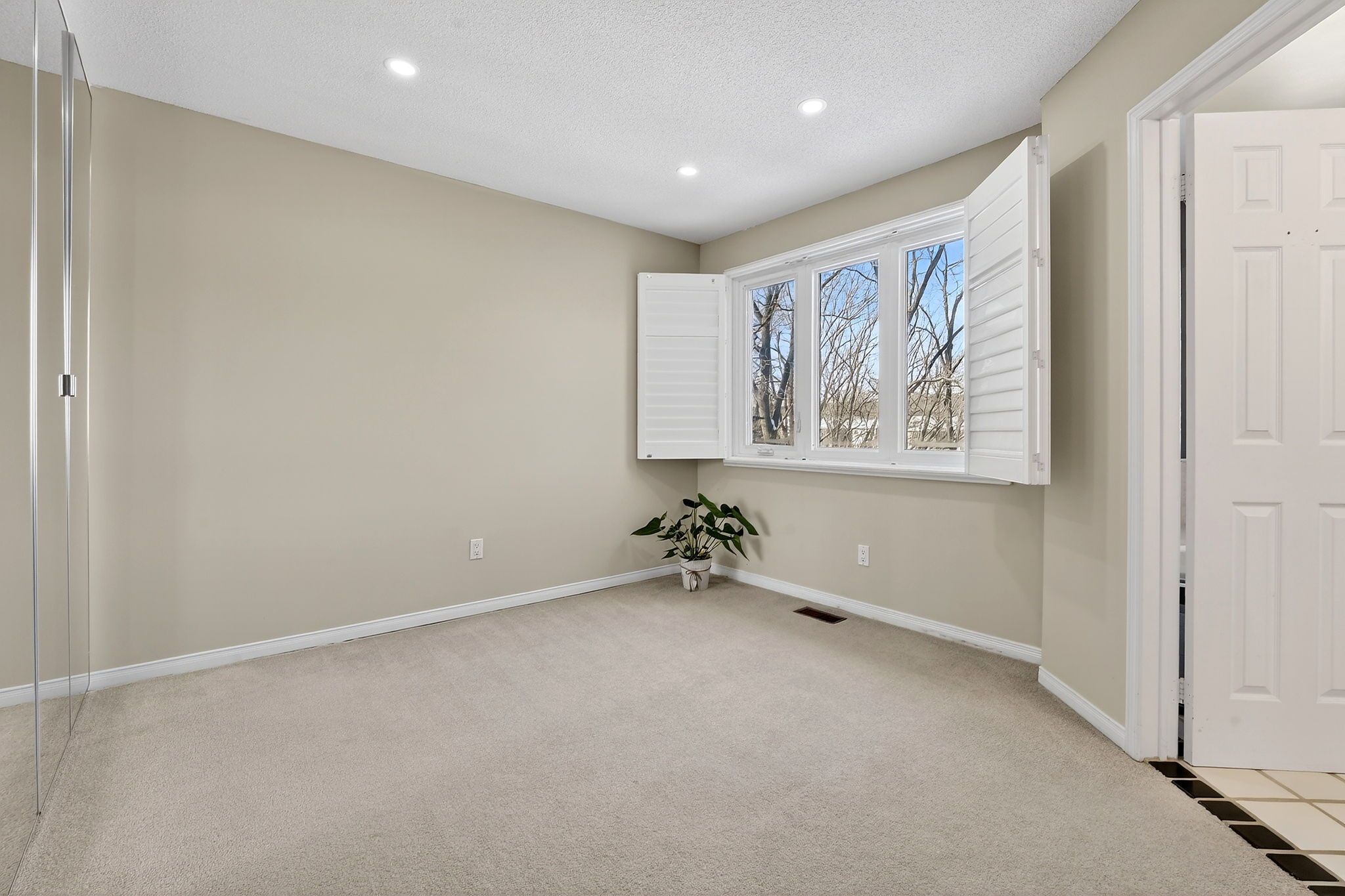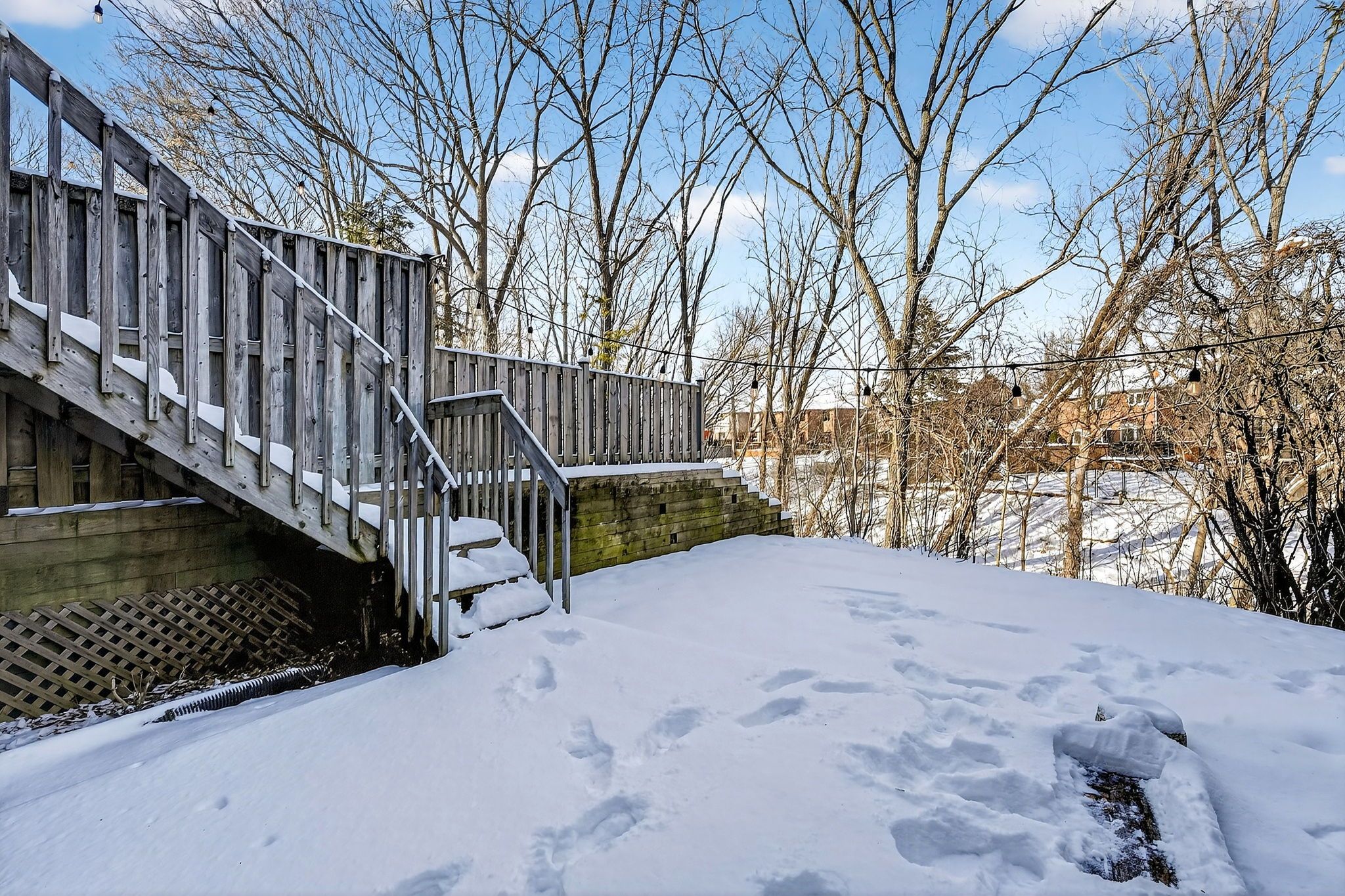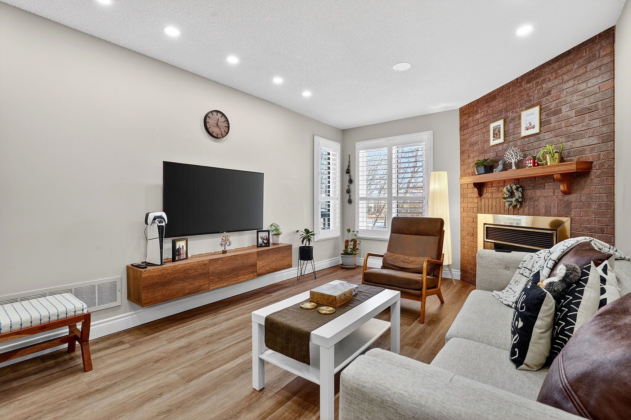 Welcome to this beautifully designed 3 bedroom, 4 bathroom condo townhouse, perfectly situated in one of dundas' most desirable communities. One of the largest layouts in the entire complex, this home offers exceptional space, thoughtful design, and a serene natural setting that's hard to find. Backing onto a lush ravine and just steps from scenic trails, this property blends convenience with tranquility. Local schools, parks, and everyday amenities are all close by, making it an ideal choice for families and professionals alike. Inside, you'll find a large, open-concept living and dining area, perfect for gatherings or quiet evenings at home. A charming wood-burning fireplace anchors the space, adding warmth and character. The well designed eat in kitchen features a breakfast bar, generous dining area, and a walkout to the upper deck-ideal for morning coffee or outdoor dining with a view. Upstairs, the spacious primary suite offers a peaceful retreat with a walk-in closet, sitting area, and a four piece ensuite. The additional two bedrooms are well sized, each with ample closet space, making them perfect for family, guests, or a home office. The very large finished basement adds exceptional living space with a walkout to a second deck, built-in bar, laundry area, 4-piece bathroom, and separate mechanical room-perfect for entertaining, extended family, or a flexible recreation zone. Recent updates add comfort and peace of mind, including: furnace & heat pump (2025), main floor flooring (2023), main floor pot lights (2023), water softener (2024). With its generous layout, natural surroundings, and modern updates, this dundas townhouse delivers the perfect blend of space, style, and low maintenance living.