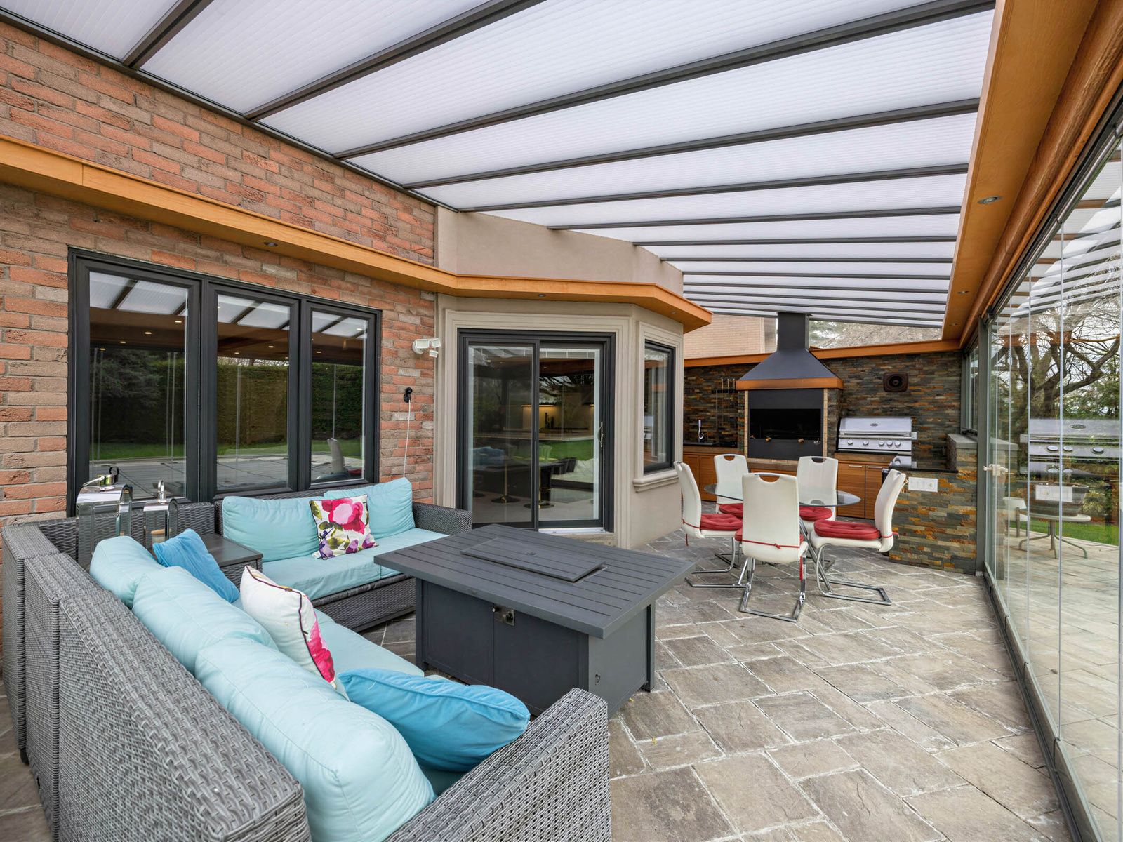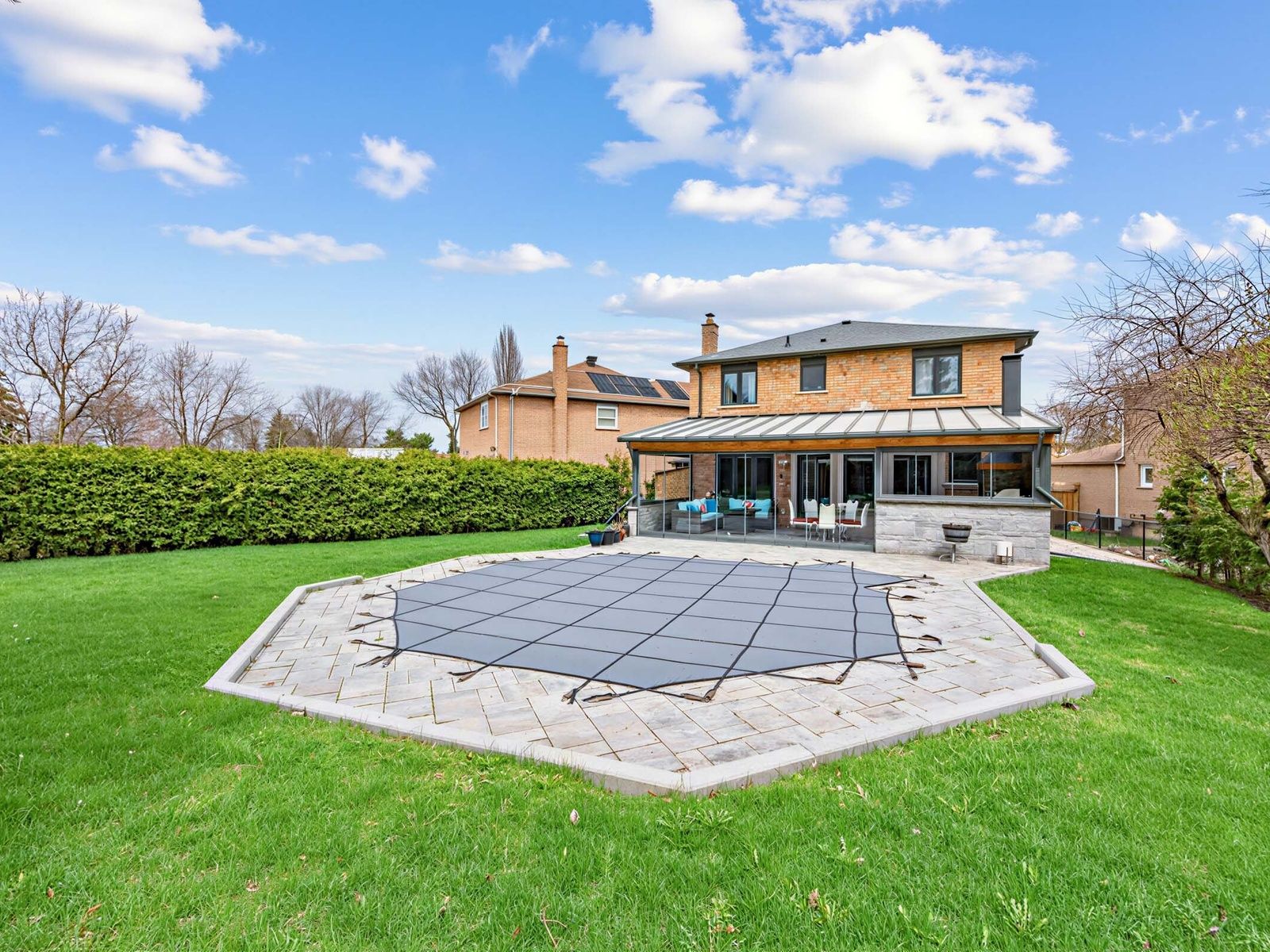Stunning brampton residence set on a generous lot in a park-like setting within a mature, family-friendly neighborhood. This home has been extensively redesigned and renovated with exceptional materials and craftsmanship throughout. A beautifully reimagined foyer welcomes you with a floor-to-ceiling custom feature wall, complete with built-in seating and a concealed closet. From here, sweeping sightlines reveal the main floor's open-concept design, highlighted by a mono-stringer red oak staircase with frameless glass railings. A wall of windows floods the space with natural light and frames views of the private backyard oasis. The chef's kitchen is equipped with top-of-the-line appliances, gleaming quartz countertops and backsplash, and abundant storage within floor-to-ceiling custom cabinetry. A large island anchors the space, perfect for both everyday living and entertaining. The kitchen also offers direct access to a sunroom/three-season entertaining area and the beautifully treed backyard with in-ground pool! Upstairs features four generously sized bedrooms. The primary suite boasts a wall-to-wall walk-in closet with custom floor-to-ceiling cabinetry. The finished basement is designed for entertaining, featuring a fully climate-controlled wine room, a bar with sink, and a full audio visual entertainment wall. Ideally located close to all amenities, including excellent shops, restaurants, parks (with direct access from the backyard), top-rated schools, public transit, and major highways. This is a home that must be experienced in person to be fully appreciated. *see attachment for full list of improvements and features.