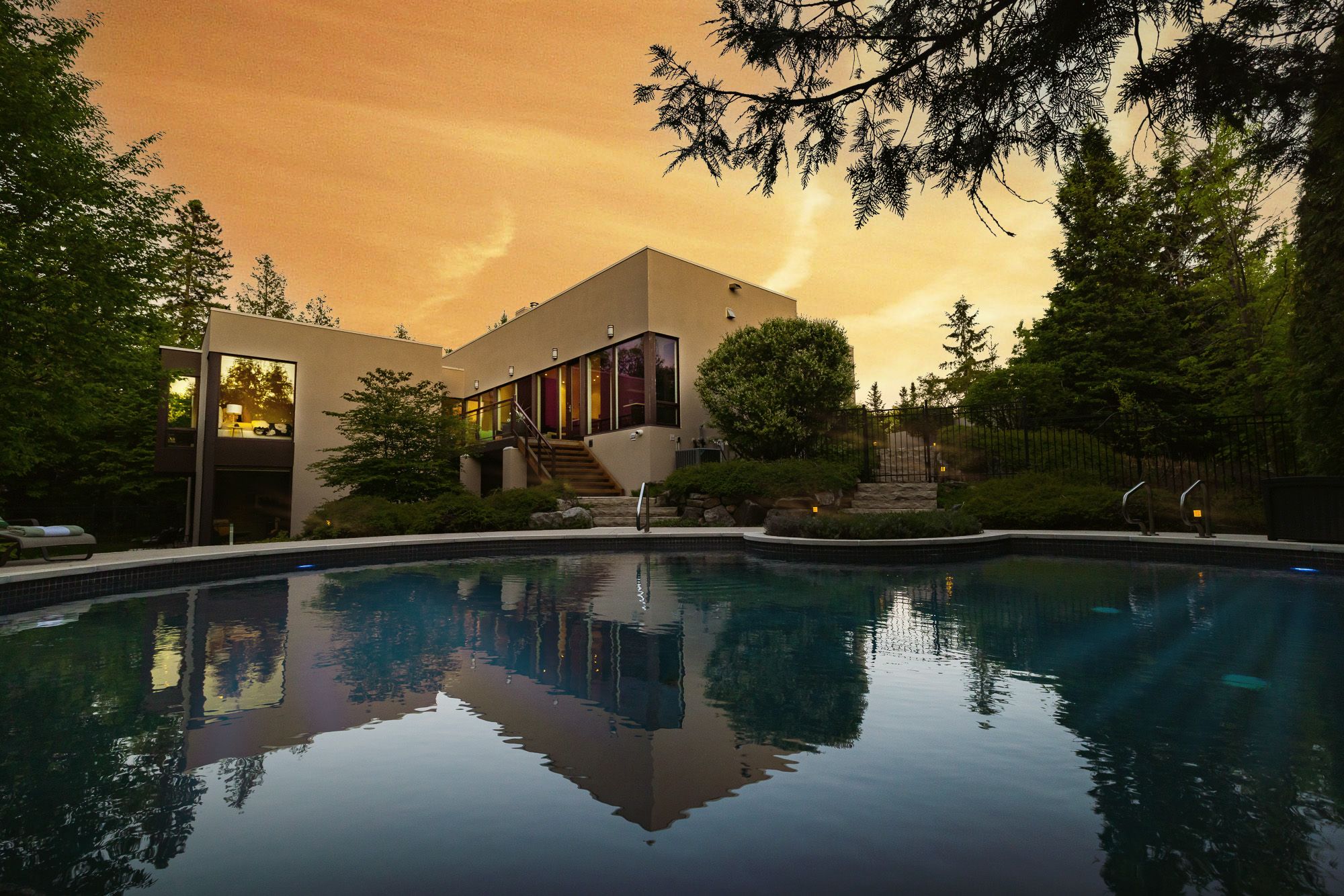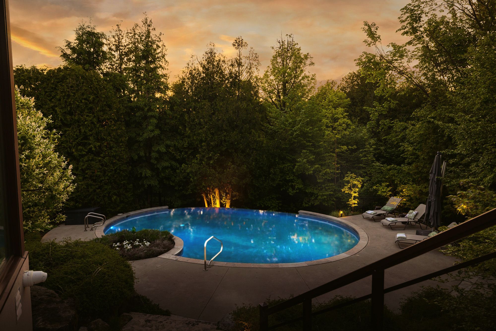 Welcome to a one-of-a-kind estate where timeless elegance, refined craftsmanship, and natural beauty come together. Tucked away on a secluded, professionally landscaped lot in the exclusive kanata rockeries, this 6-bed, 5-bath custom home offers over 5,100 sq ft of exquisitely designed living space. An architectural masterpiece by richard limmert, built by esteemed terra nova building corp. This exceptional home blends luxury and lifestyle seamlessly. Surrounded by lush gardens, water features, and mature trees, the setting feels like a private resort. Multiple patios and decks offer perfect vantage points for enjoying the saltwater infinity-edge gunite pool, cozy fire pit, and even a charming winter skating pond. Step inside to soaring 12-ft ceilings and a light-filled open-concept layout. The gourmet kitchen features an oversized island, granite countertops, and flows effortlessly into the dining and living areas ideal for entertaining. Phantom-screened doors open to peaceful views and fresh air. The primary suite is a tranquil retreat, with a walkout to a private patio, automated retractable privacy screens, a spacious walk-in closet, and a spa-like 5-piece ensuite with quartz counters, heated floors, and a rain shower. The fully finished walk-out lower level includes radiant in-floor heating, a stylish wet bar with fridge and dishwasher, private theatre room, at-home gym, and a mudroom with a built-in dog shower. Step outside directly to the pool and beautifully landscaped backyard. Smart features like a built-in generator, advanced irrigation, and snow-melting roof cables ensure year-round comfort and convenience. This is more than a home, it's a lifestyle. Where every detail has been curated for living beautifully, indoors and out. Nestled in the prestigious kanata lakes community you are close to all amenities and high ranking schools while being surrounded by nature and wildlife!