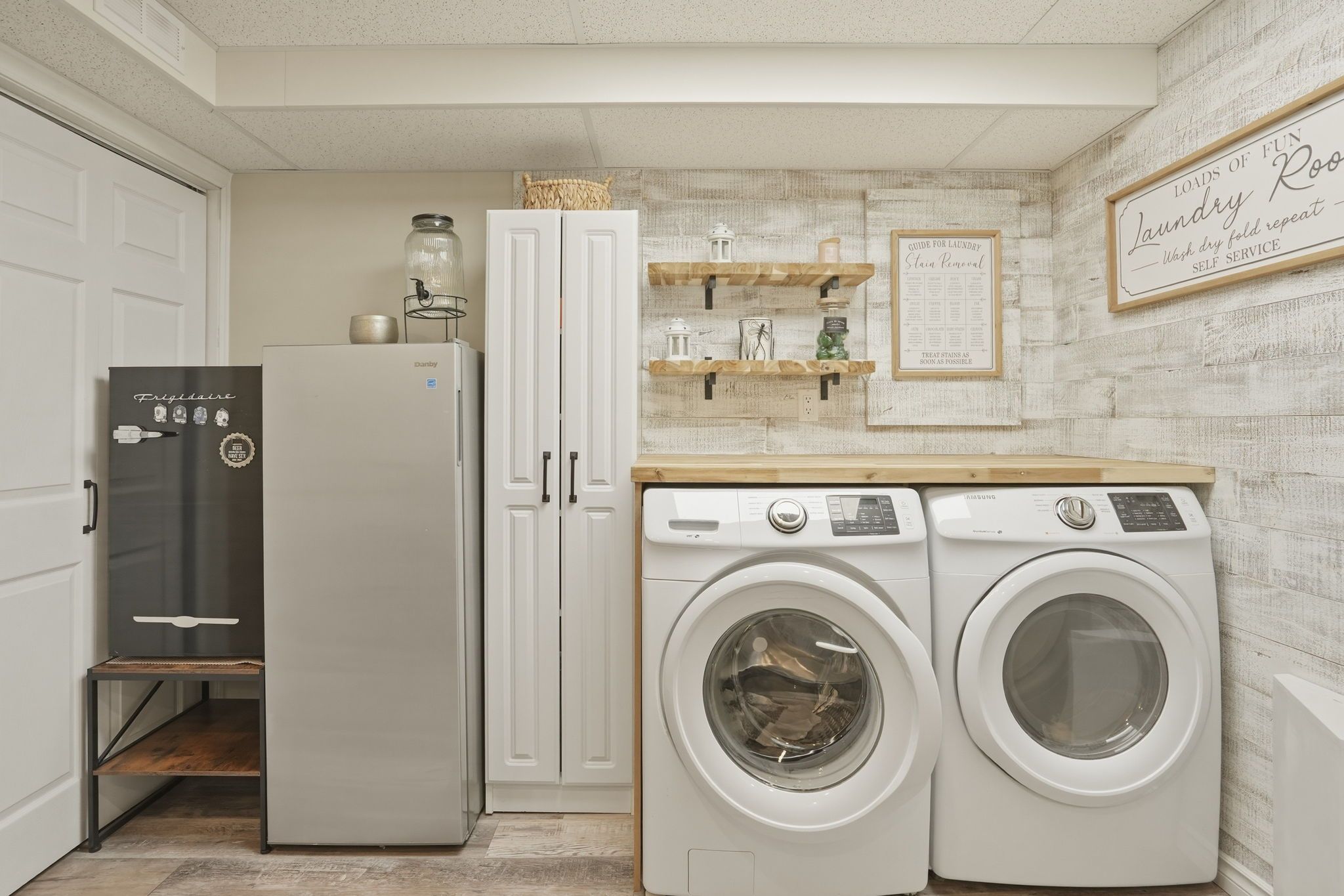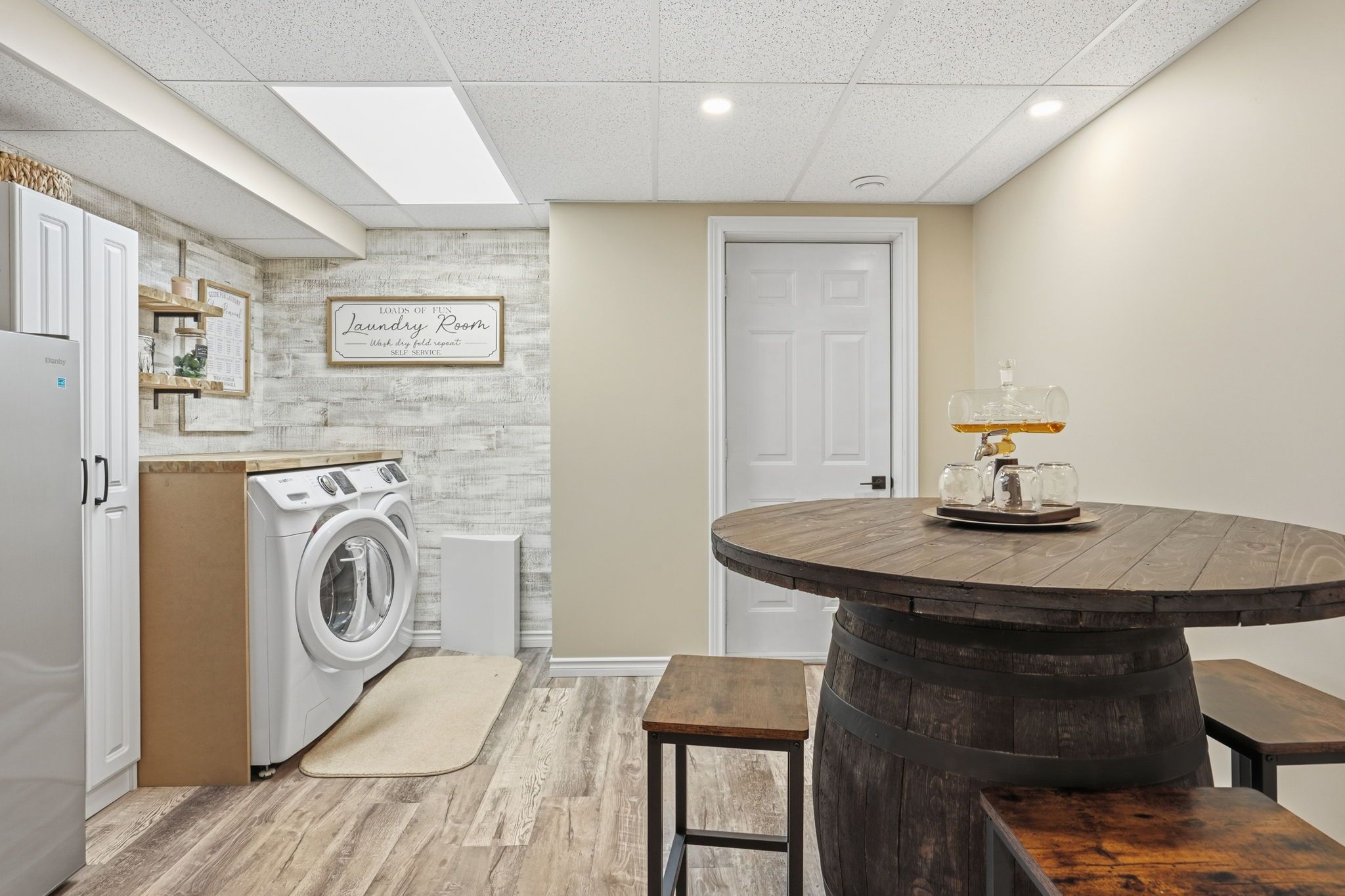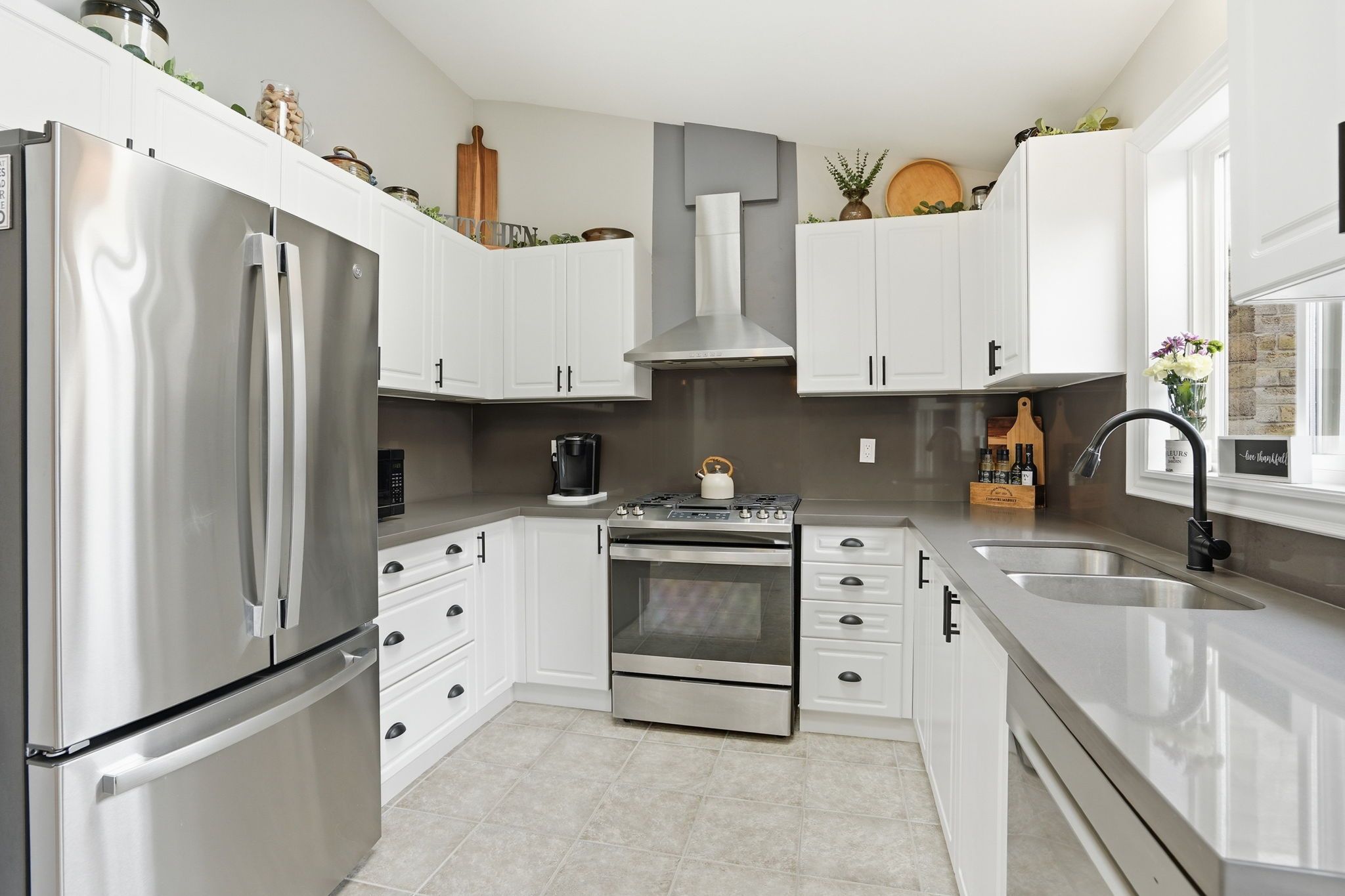 • Finished lower level with updated laundry area and stylish powder room.