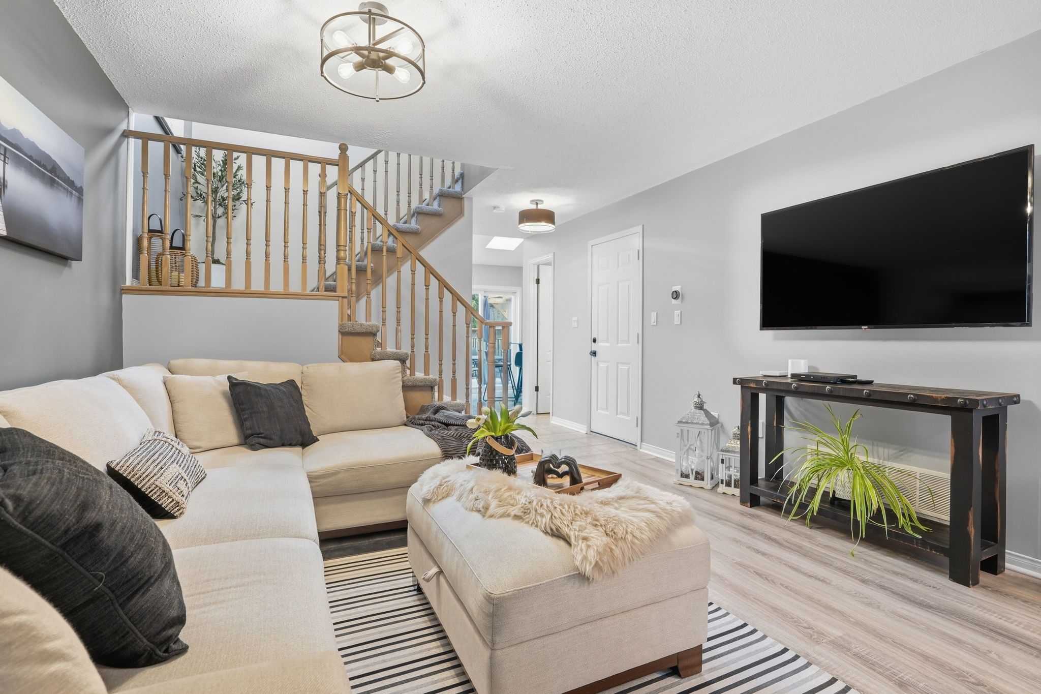 • Updated townhome with a welcoming front porch for relaxation.