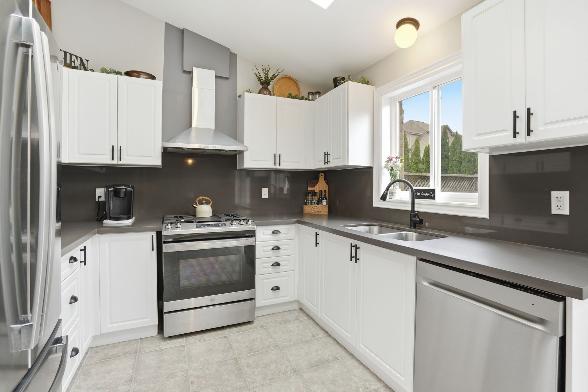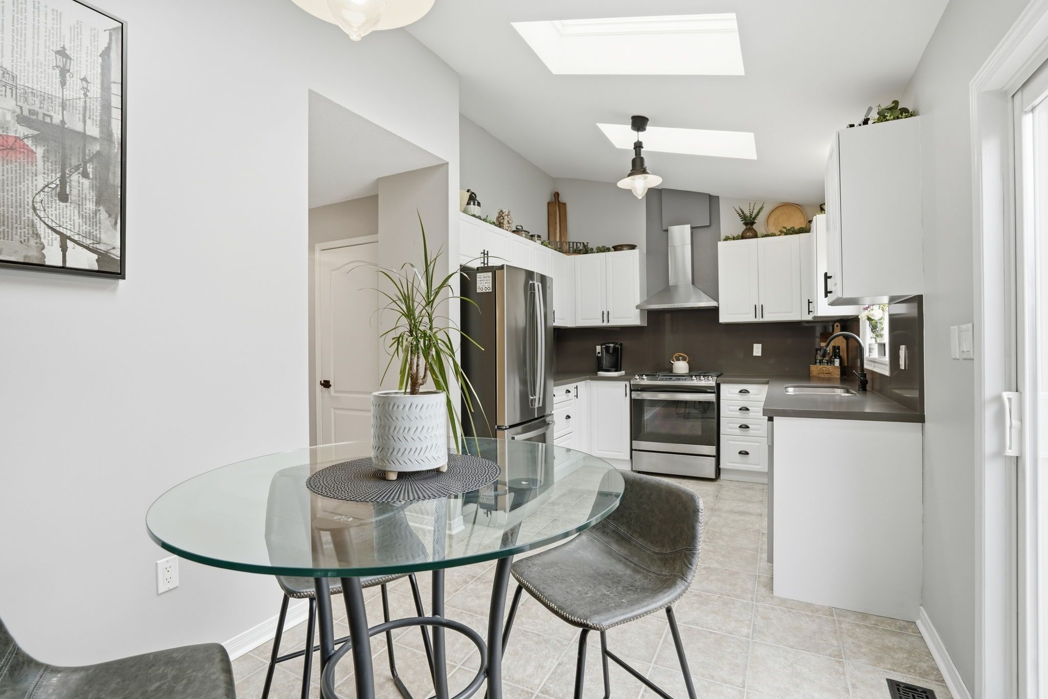 • Bright kitchen with skylights and easy access to landscaped backyard.