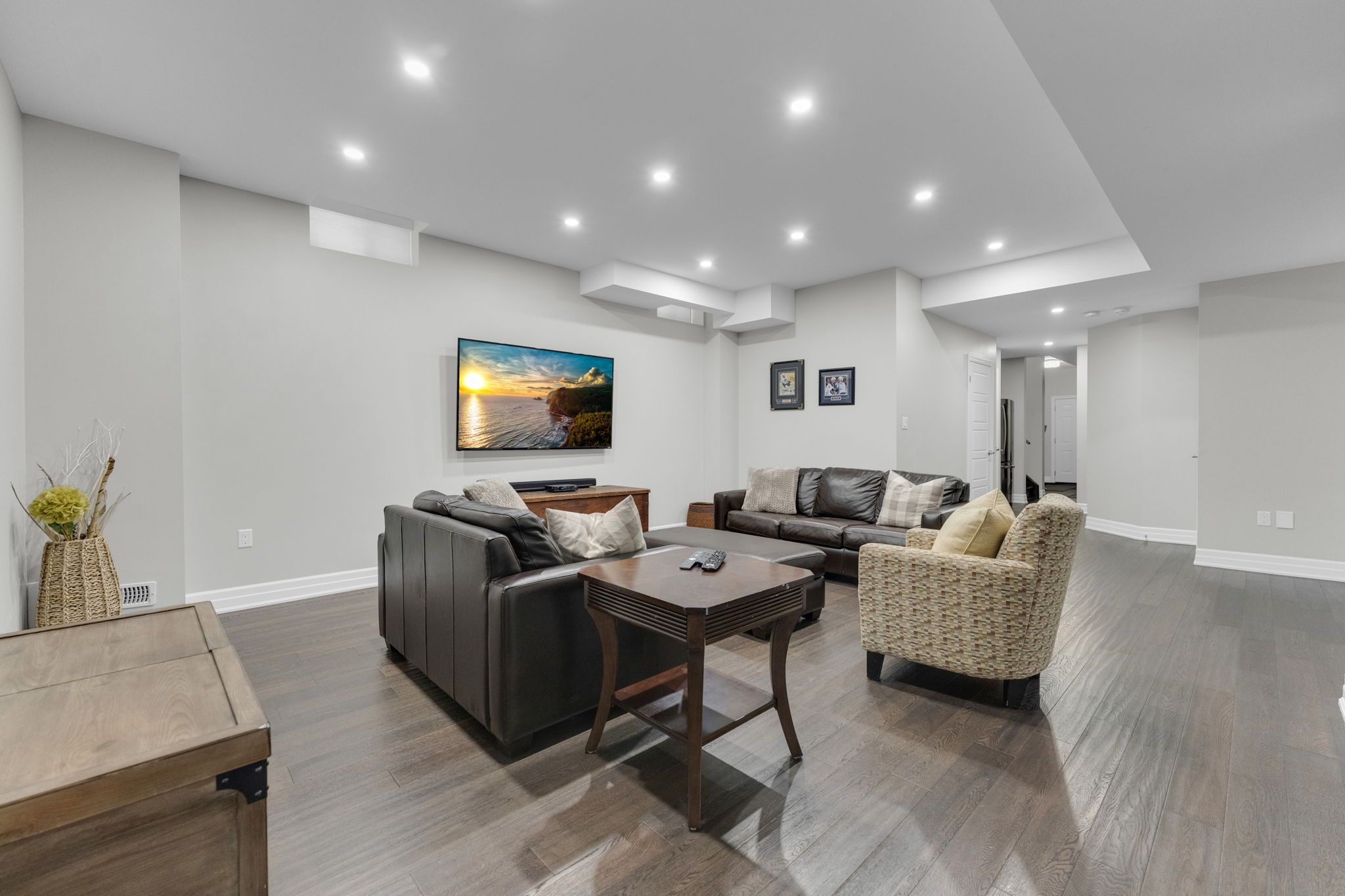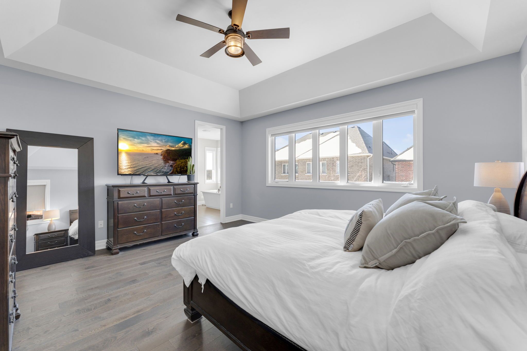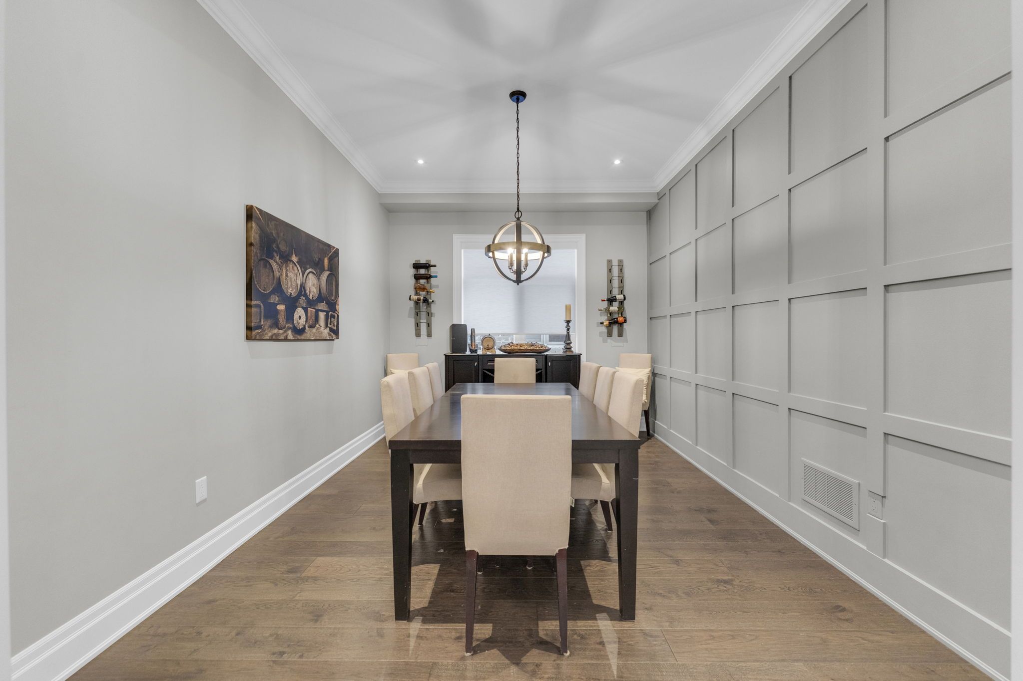 Welcome to 14 king blvd in the heart of king city. This exceptional 4+1 bedroom home blends space, function, and refined craftsmanship throughout. The main floor showcases 10-foot ceilings, hand-scraped engineered hardwood flooring, formal living and dining rooms, and a dedicated office retreat perfect for working from home. The spacious eat-in kitchen is designed for both everyday living and entertaining, while custom accent walls and detailed finishes elevate the overall design. Complete with high end appliances and a centre island and quartz countertops, the kitchen is an entertainer's dream. Each oversized bedroom features its own custom walk-in closet. The thoughtfully designed second level offers a luxurious primary retreat with heated floors in the primary ensuite, a jack & jill bathroom connecting two bedrooms, and a private ensuite for the fourth bedroom - ideal for growing families. The fully finished basement extends the living space with an additional bedroom, full bathroom, office area, and a generous recreation room - ideal for guests or multi-generational living. The landscaped backyard features premium turf, a cedar pergola, walk-in gas line for bbq, and stonework along both sides with convenient access. No sidewalk allows for additional parking and enhanced curb appeal. Minutes to the go station and highway 400, this turnkey home offers the perfect balance of luxury, comfort, and convenience.