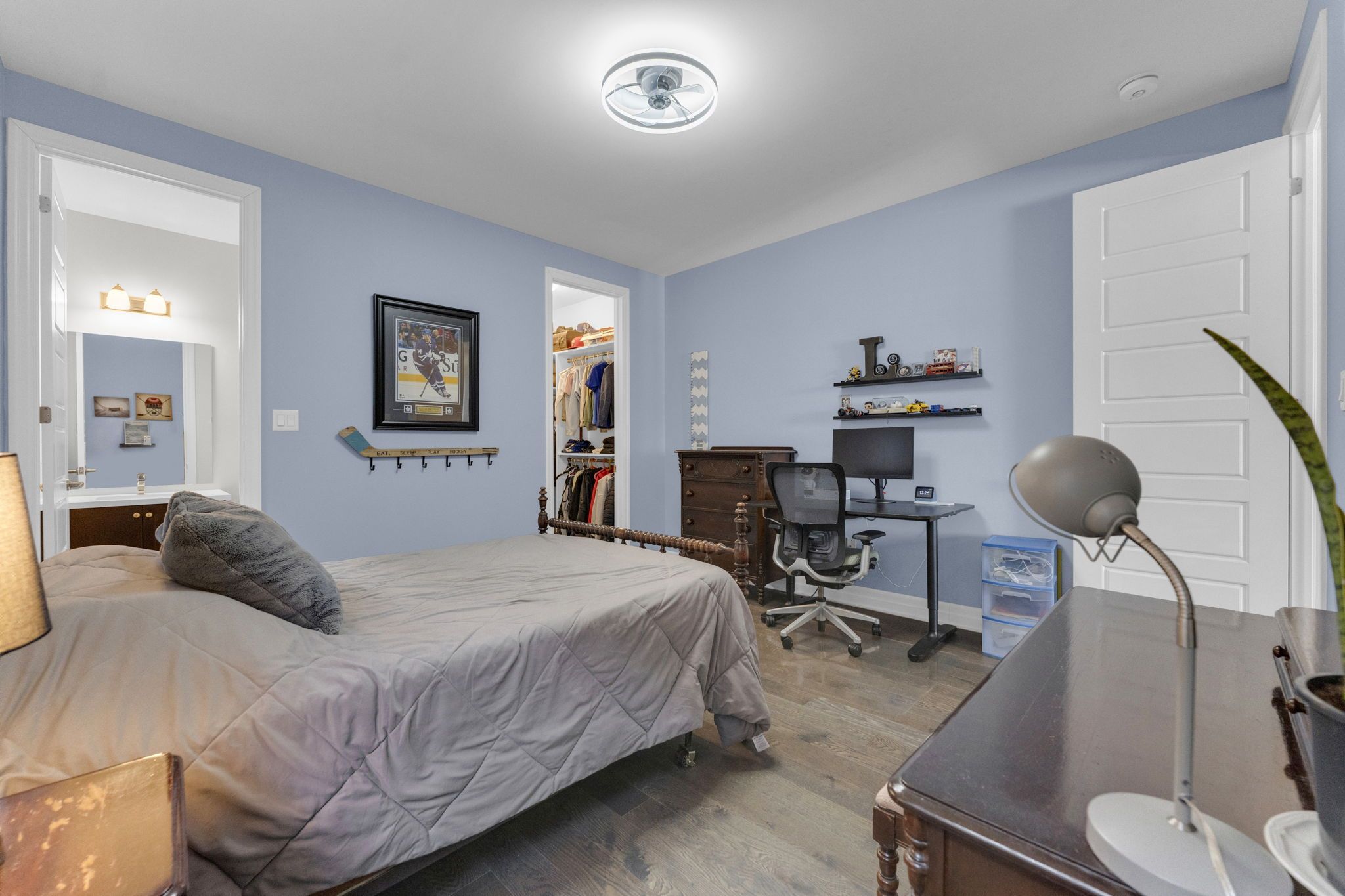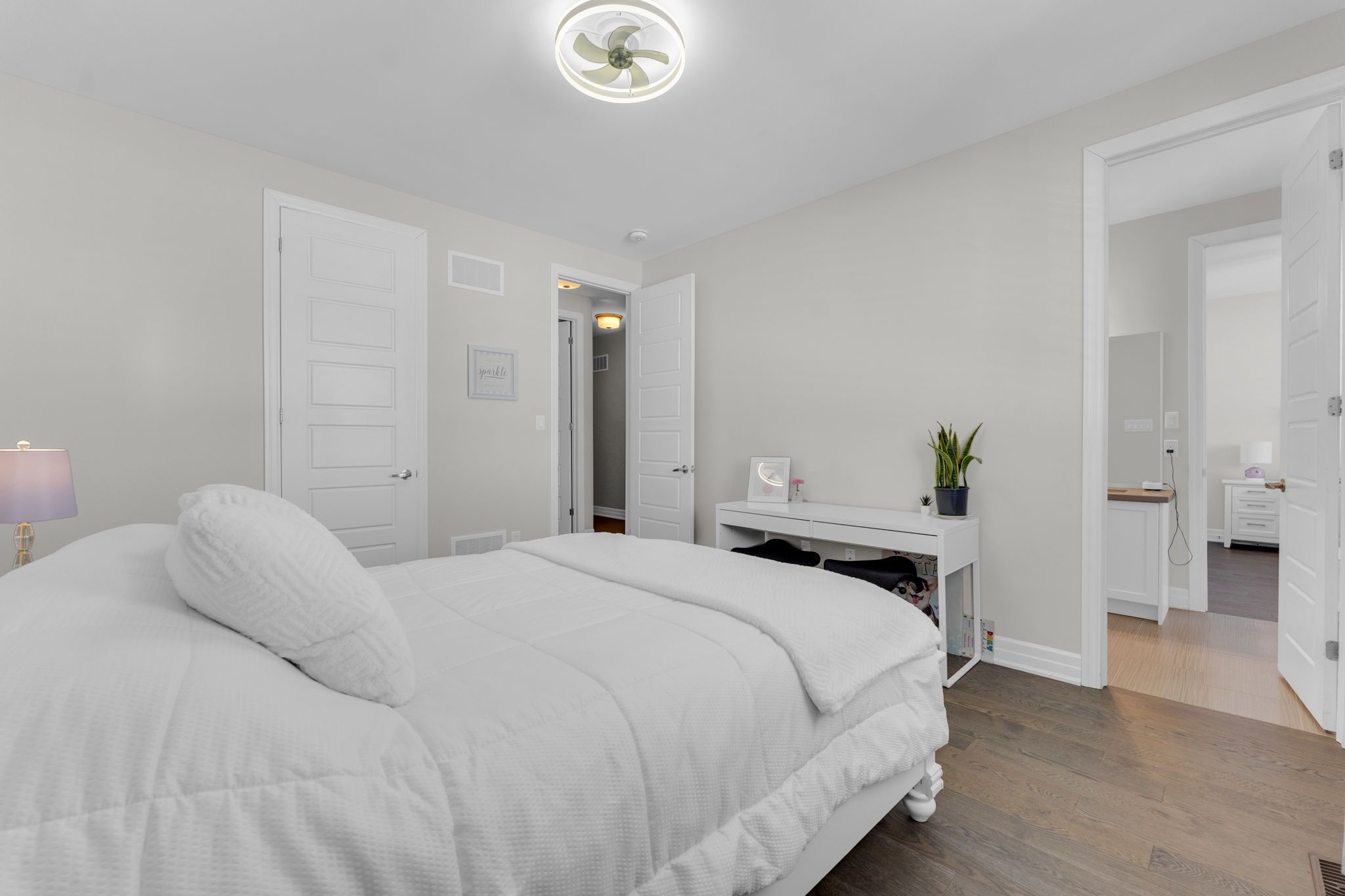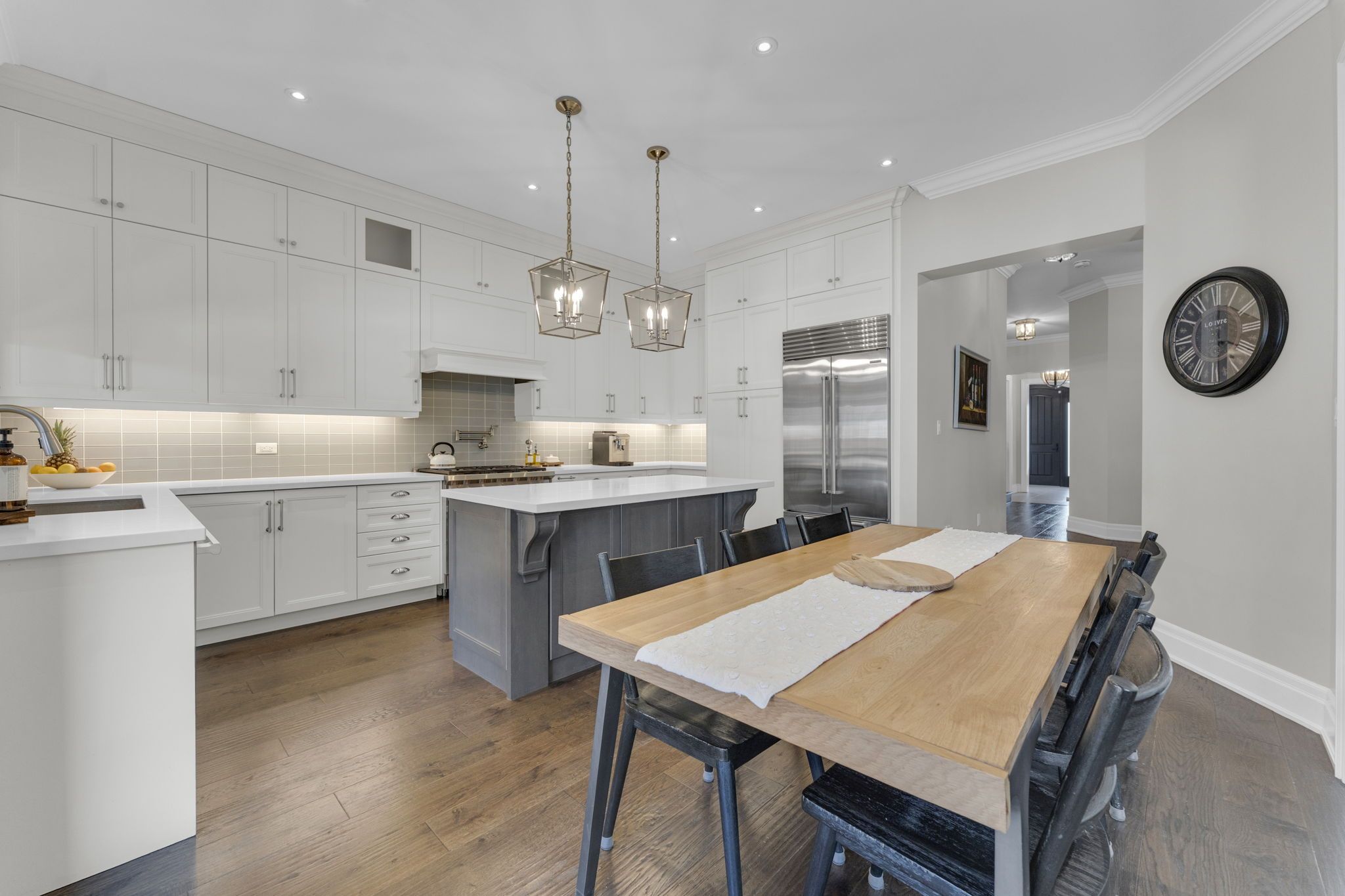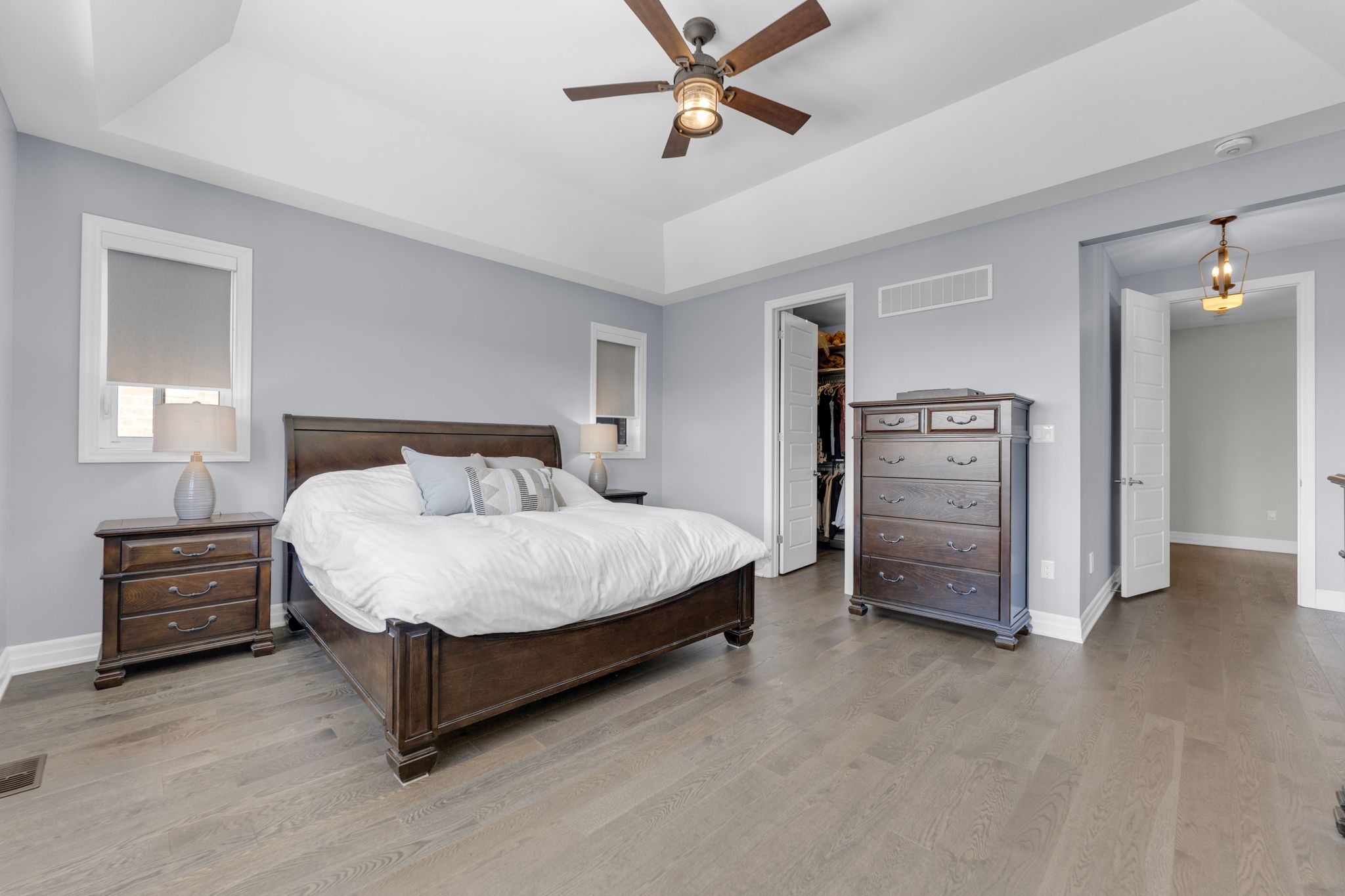 Welcome to 14 king blvd in the heart of king city. This exceptional 4+1 bedroom home blends space, function, and refined craftsmanship throughout. The main floor showcases 10-foot ceilings, hand-scraped engineered hardwood flooring, formal living and dining rooms, and a dedicated office retreat perfect for working from home. The spacious eat-in kitchen is designed for both everyday living and entertaining, while custom accent walls and detailed finishes elevate the overall design. Complete with high end appliances and a centre island and quartz countertops, the kitchen is an entertainer's dream. Each oversized bedroom features its own custom walk-in closet. The thoughtfully designed second level offers a luxurious primary retreat with heated floors in the primary ensuite, a jack & jill bathroom connecting two bedrooms, and a private ensuite for the fourth bedroom - ideal for growing families. The fully finished basement extends the living space with an additional bedroom, full bathroom, office area, and a generous recreation room - ideal for guests or multi-generational living. The landscaped backyard features premium turf, a cedar pergola, walk-in gas line for bbq, and stonework along both sides with convenient access. No sidewalk allows for additional parking and enhanced curb appeal. Minutes to the go station and highway 400, this turnkey home offers the perfect balance of luxury, comfort, and convenience.