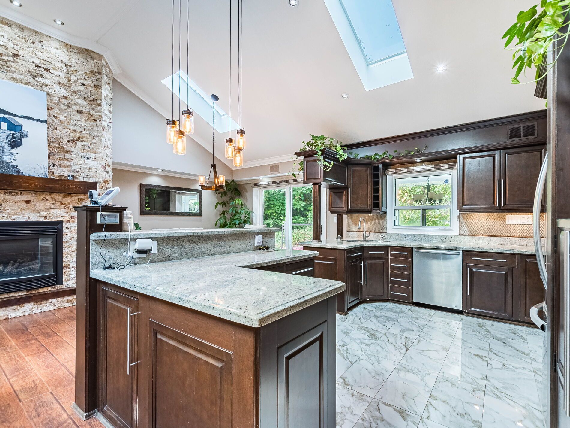 A beautiful home in the heart of terra cotta! Walk to the terra cotta inn, enjoy fishing and tubing in the credit river, hike several nearby trails, and embrace the ambience of this community. This raised bungalow has been finished from top to bottom with extensive detail. High-end kitchen featuring stainless steel b/i appliances overlooks the open concept main floor with floor to ceiling fireplace as a focal point! Fireplace surrounded by stone, pot lights, and ambient lighting create a cozy and inviting atmosphere. The upgraded main bathroom and recently replaced roof add to the home's appeal. Crown molding throughout the house adds a touch of sophistication. The lower level features two spacious bedrooms, a recreational room, a stylish bar, a laundry room, and ample storage space. Large windows and pot lights provide plenty of light in the lower level.