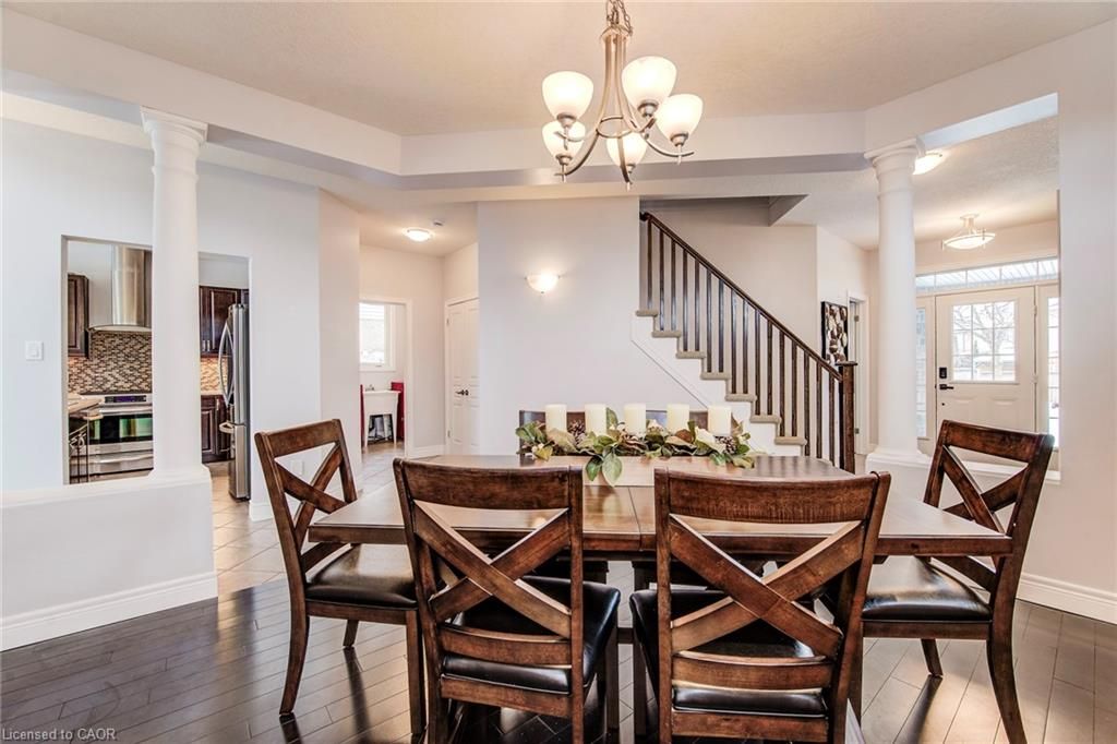 Over 3500sf in this beauty of a family home. Welcome to 14 la salle street, a true show-stopper nestled on a quiet street in the charming community of breslau. This beautifully maintained two-storey home offers 3+1 bedrooms and 3. 5 bathrooms, blending style, comfort, and functionality throughout. The bright main floor is filled with natural light and features a 2-piece bathroom, a formal dining area, and an inviting open-concept living room and kitchen-perfect for both everyday living and entertaining. The living room impresses with vaulted ceilings and a cozy gas fireplace as its focal point. The stunning kitchen includes a dedicated dining area, breakfast bar, tiled backsplash, and beautiful stainless steel appliances. A main-floor laundry room with direct access to the garage adds everyday convenience. Upstairs, you'll find three spacious bedrooms, including an oversized primary suite complete with a private den-ideal for a home office-his and hers walk-in closets, and a stylish 4-piece ensuite. The upper level also features a shared 4-piece bathroom and overlooks the living room below, enhancing the home's open and airy feel. The fully finished basement offers an exceptional extension of living space with a large open-concept layout, bar, a 3-piece bathroom, ample storage, and a fourth bedroom currently used as a home gym. Step outside to your private backyard oasis, featuring a large deck perfect for entertaining, a built-in hot tub with privacy fencing, a gazebo, and a spacious fully fenced yard. Additional highlights include a double-car attached garage and a double-wide driveway accommodating parking for up to four vehicles. Ideally located just minutes from schools, shopping, restaurants, highway 8, and the region of waterloo international airport, with convenient access to guelph, kitchener-waterloo, cambridge, new hamburg, and fergus, this exceptional home offers the perfect balance of peaceful living and connectivity.
