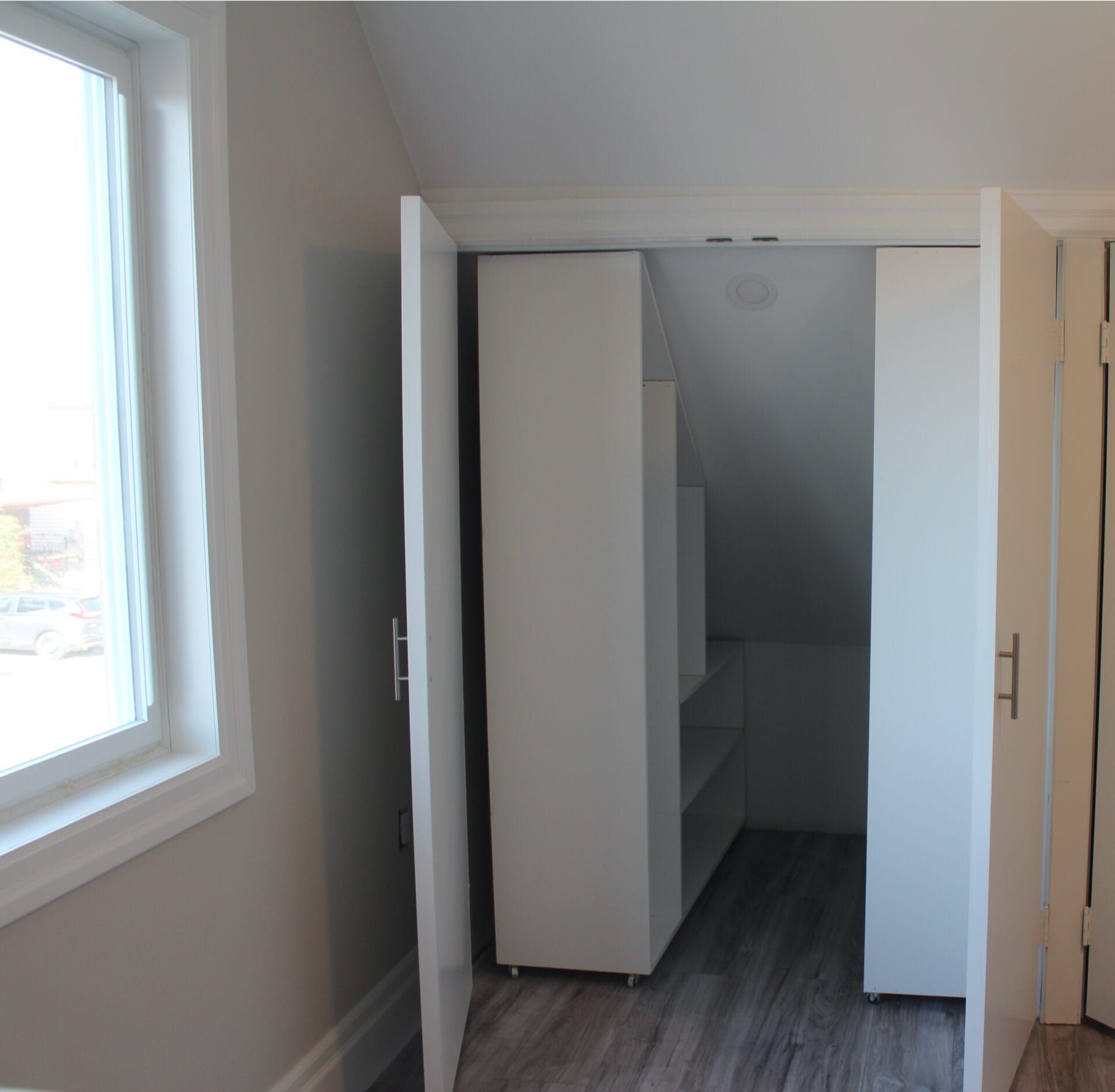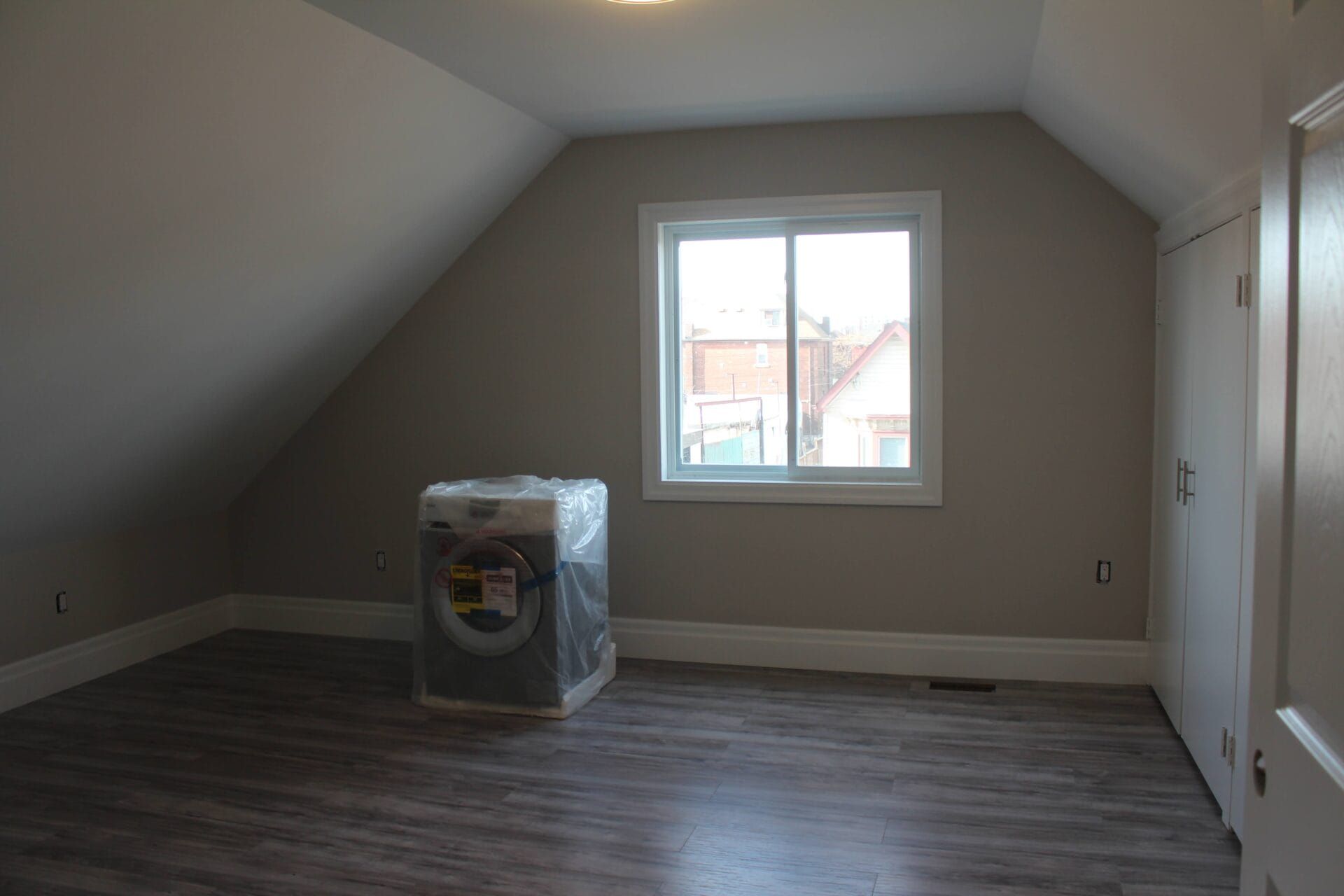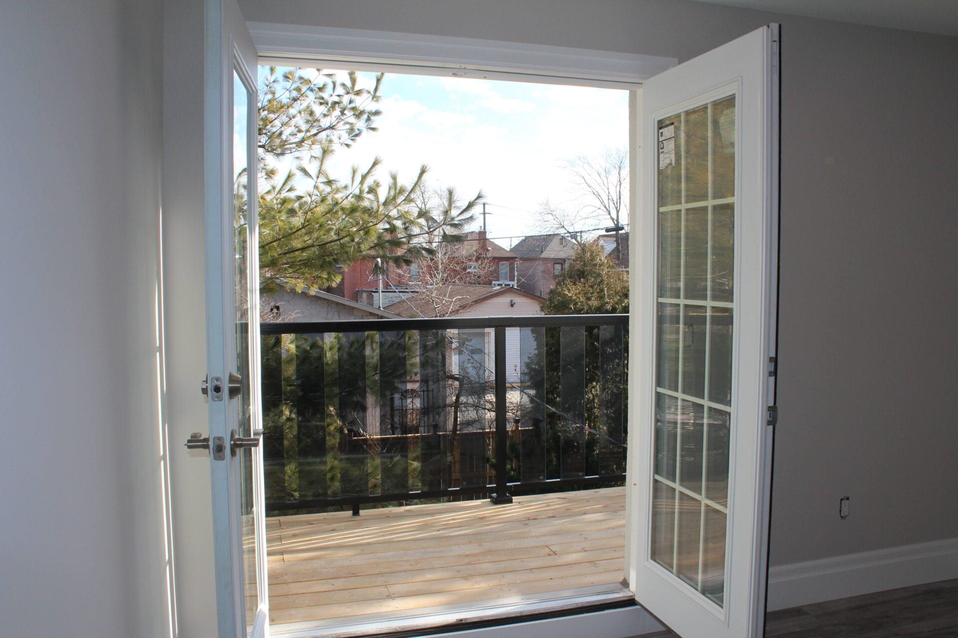 Bright, modern 870 sqft home + 50sqft mudroom, renovated jan 2021. Secure entry with two doors. Spacious 2nd floor apartment includes:-a bright 3-piece bath with skylight and touch-lit mirror, rain-mixer shower and glass partition door-l-shaped kitchen with big window, granite counters, stainless steel range, hood, fridge, and large pantry-in-suite laundry with mosaic tiles and storage above washer/dryer combo- separate living room can accommodate a home office, with sliding window and double french doors to a balcony with beautiful view- cottage-style bedroom with three double-door closets with two custom pull-out shelves each, providing ample storage additional features include air conditioning, abundant storage, modern interior, luxury german laminate flooring, high bilevel baseboards and window and door casings, and durable scuff-resistant paint in the staircase and bathroom. Eco-friendly upgrades include 6-8" spray foam insulation on exterior walls and roof, led lights, new plumbing and electrical, bathroom fan timer, dimmable lights in bedroom and living room, and energy-efficient windows and doors. Located in the friendly landsdale community with easy access to downtown hamilton. Steps from cannon street bike lanes and sobi bike share docks, and only a 5 min drive, 10 min bike, or 30 min walk to first ontario centre, go stations, and james street north. Ideal for health professionals, minutes from hamilton general hospital. *for additional property details click the brochure icon below*
