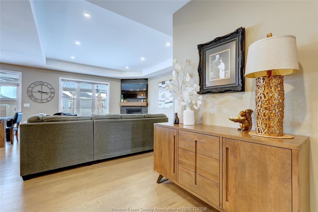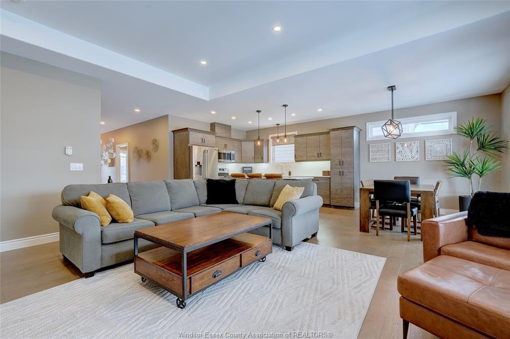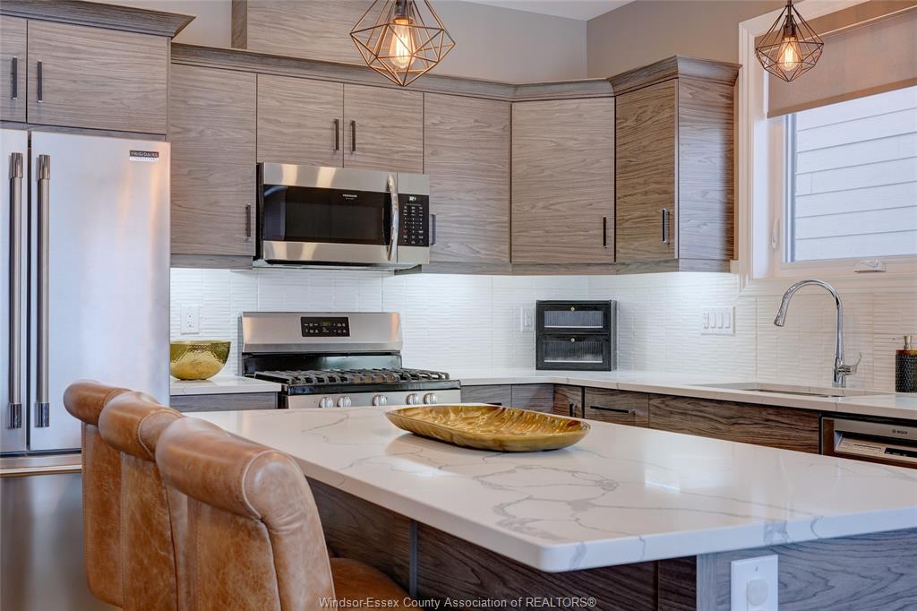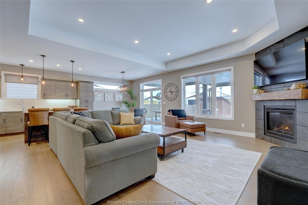 Welcome to 14 lukas in the heart of kingsville. This 2+1 bedroom and 3 bath home is waiting for its new family. Corner lot, fully fenced, double wide driveway with beautiful landscapes and outdoor entertaining. Main floor features an open concept kitchen, dining and living room complete with a gas fireplace. Quartz countertops with euro-style cabinetry and a workable island. 3 pc. Main bathroom, laundry room, bedroom and primary bedroom with walk-in closet and 5 pc. Ensuite. Lower level features a living room with a bar, electric fireplace and room for a games/pool table. 4 pc. Bathroom, bedroom, utility room and storage/workshop. Tile, engineered hardwood floor, carpet and vinyl laminate flooring throughout. Lawn sprinkler system with wifi capability, gas lines installed for bbq and fire table in the covered patio area. Worry free back-up generator connection installed, just plug in your generator. Located within walking distance to grocery stores, kingsville's dynamic culinary experience, winery, breweries, parks and schools. Come and have a look at your new home.